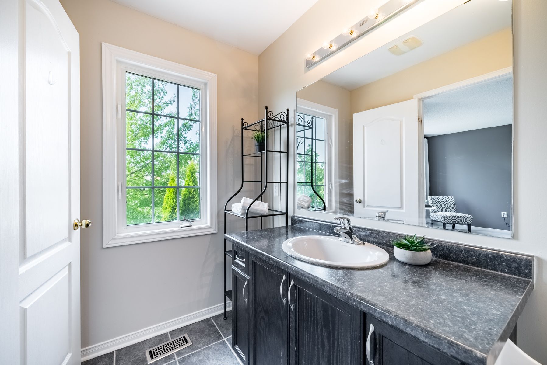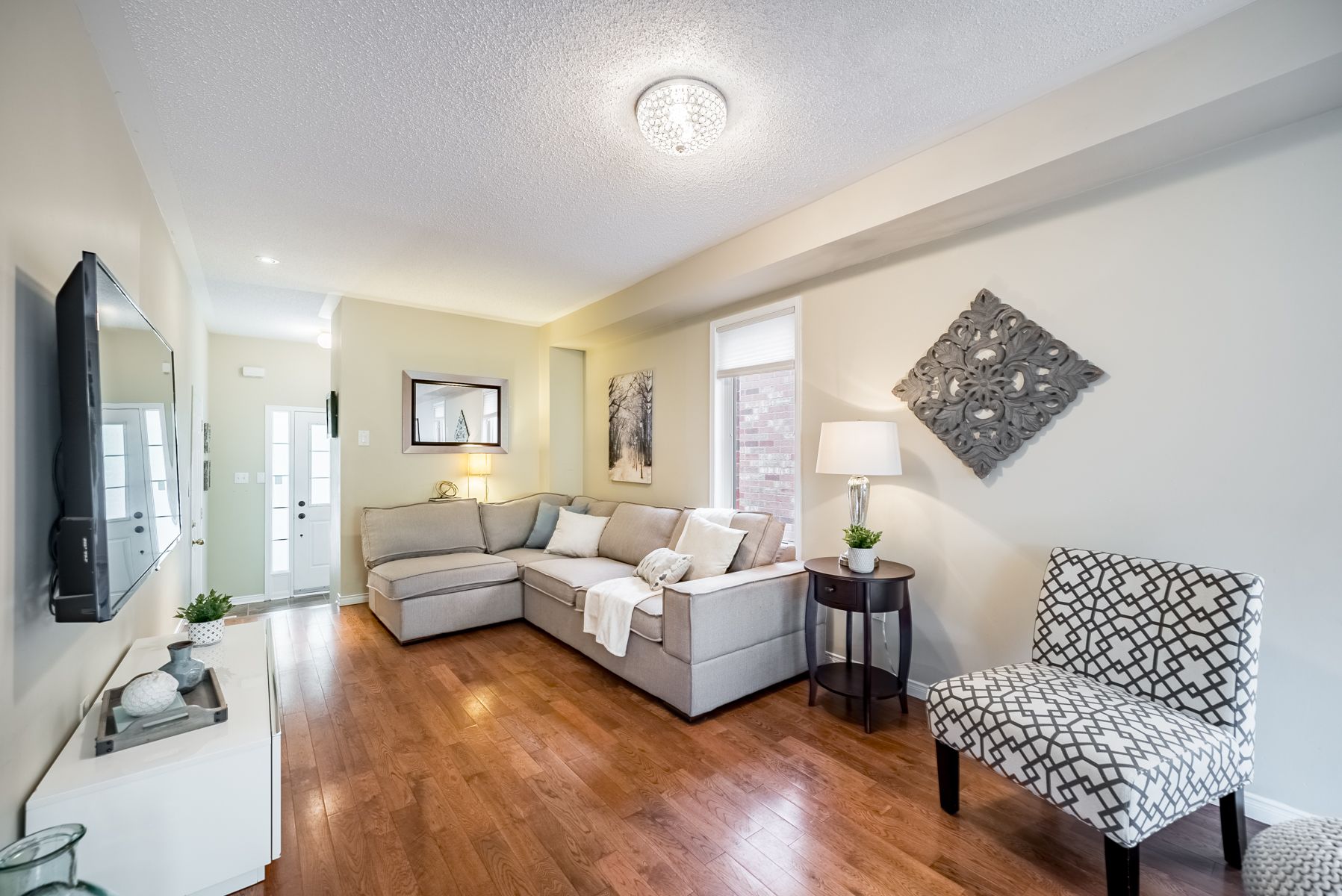 Hardwood Floor Large Window Access To Garage