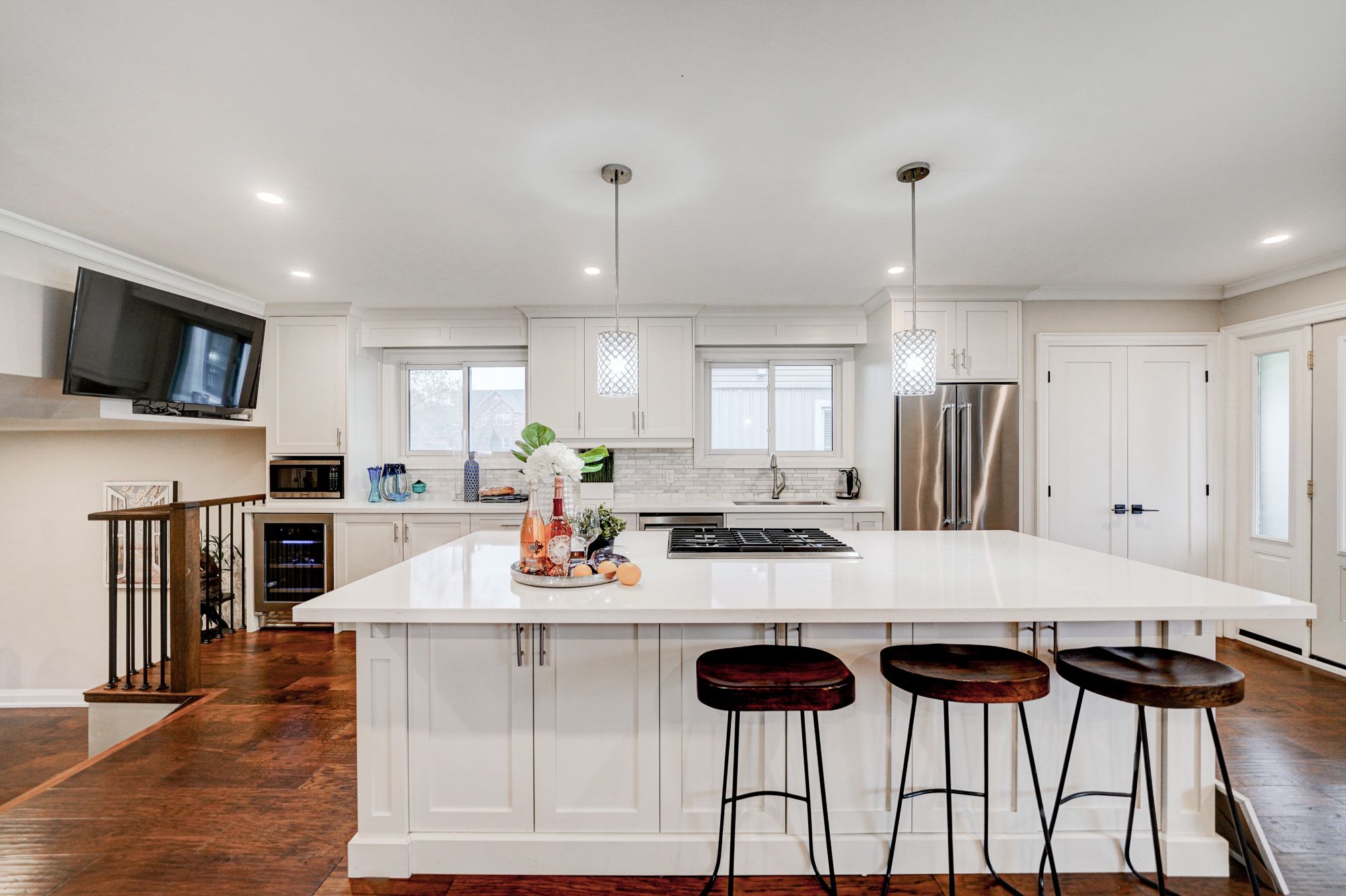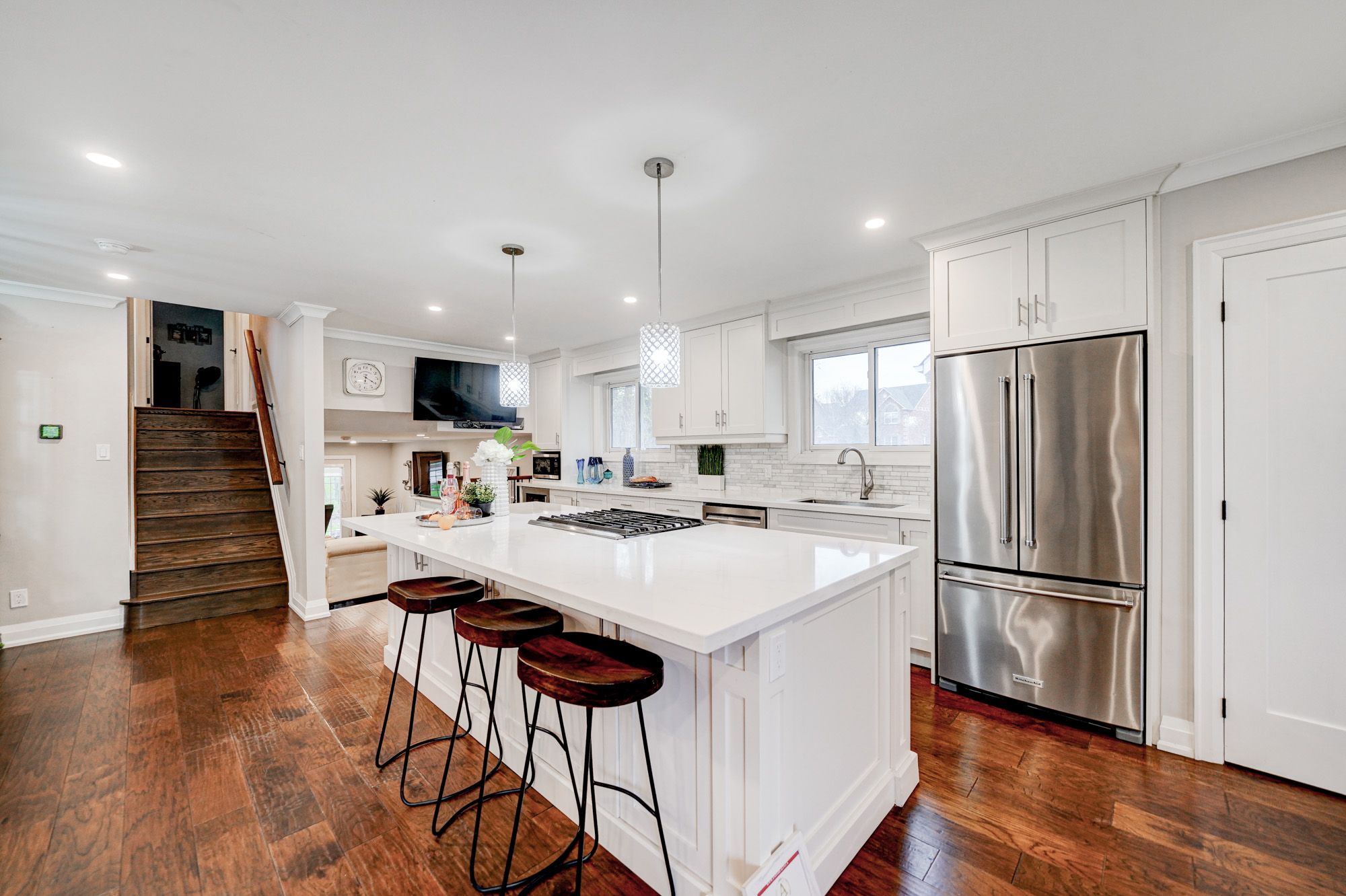 Gorgeous Open Concept 4 Bed 2 Bath Premium Lot Custom Backsplit Home In The Heart Of Stouffville. Hardwood Fl Thru-Out Main Floor, Ground Floor & Upper Floor. Smooth Ceiling On Main Floor. Upgraded Kitchen W Centre Island, Quartz Countertop, Ceramic Backsplash & Stainless Steel Appliances. Upgraded All Light Fixtures. Finished Basement W Laminate Floor, Pot Lights, Large Open Concept Recreational Room & Large Laundry Room. Close To Parks, Schools, Shopping Centers, Golf Club, Go Train & Public Transit. A Unique Home Close To All Amenities. Must See!Roof (2022). Furnace (2023). Window (2018). High Efficient Ac. Gas Heater In Garage.