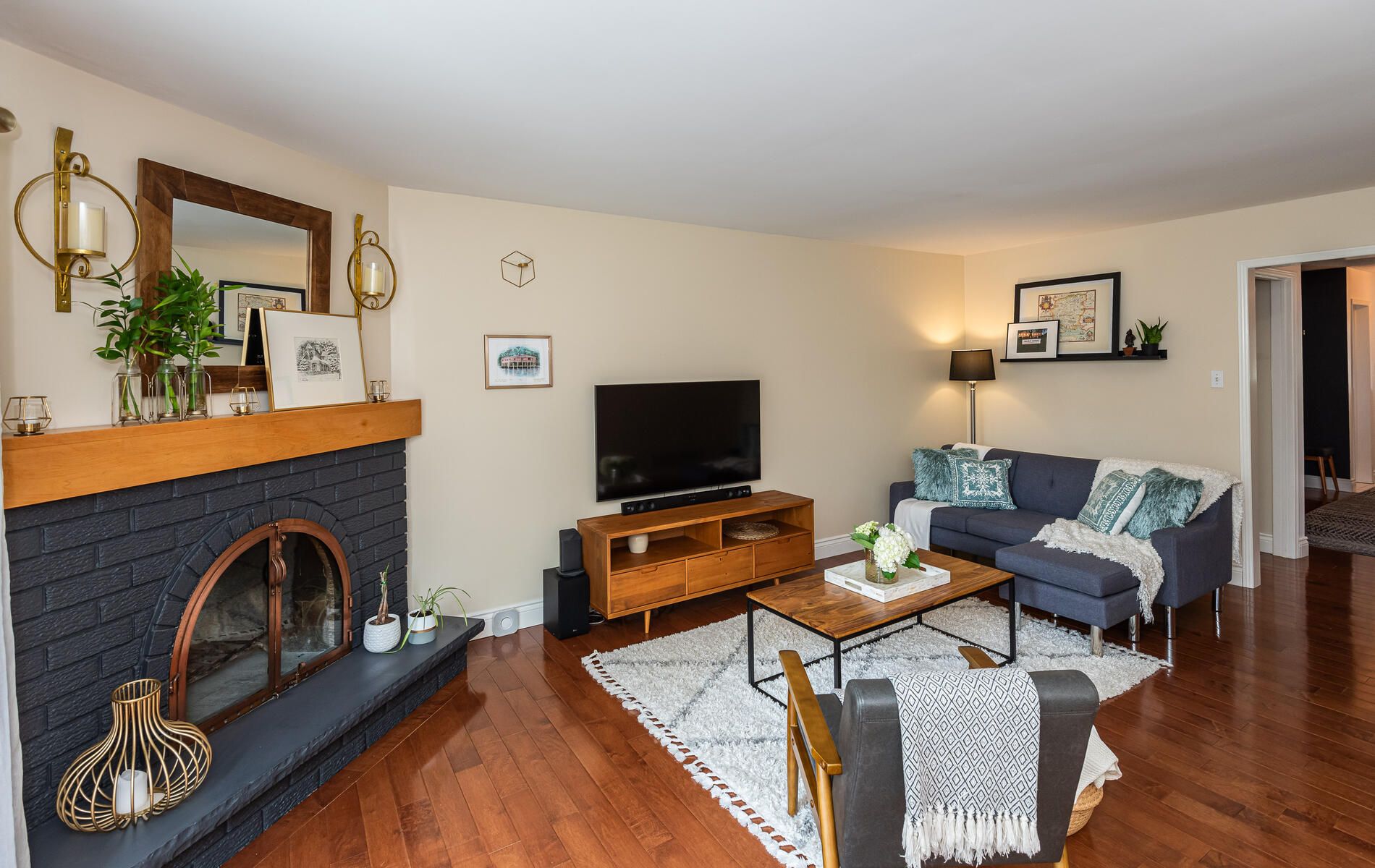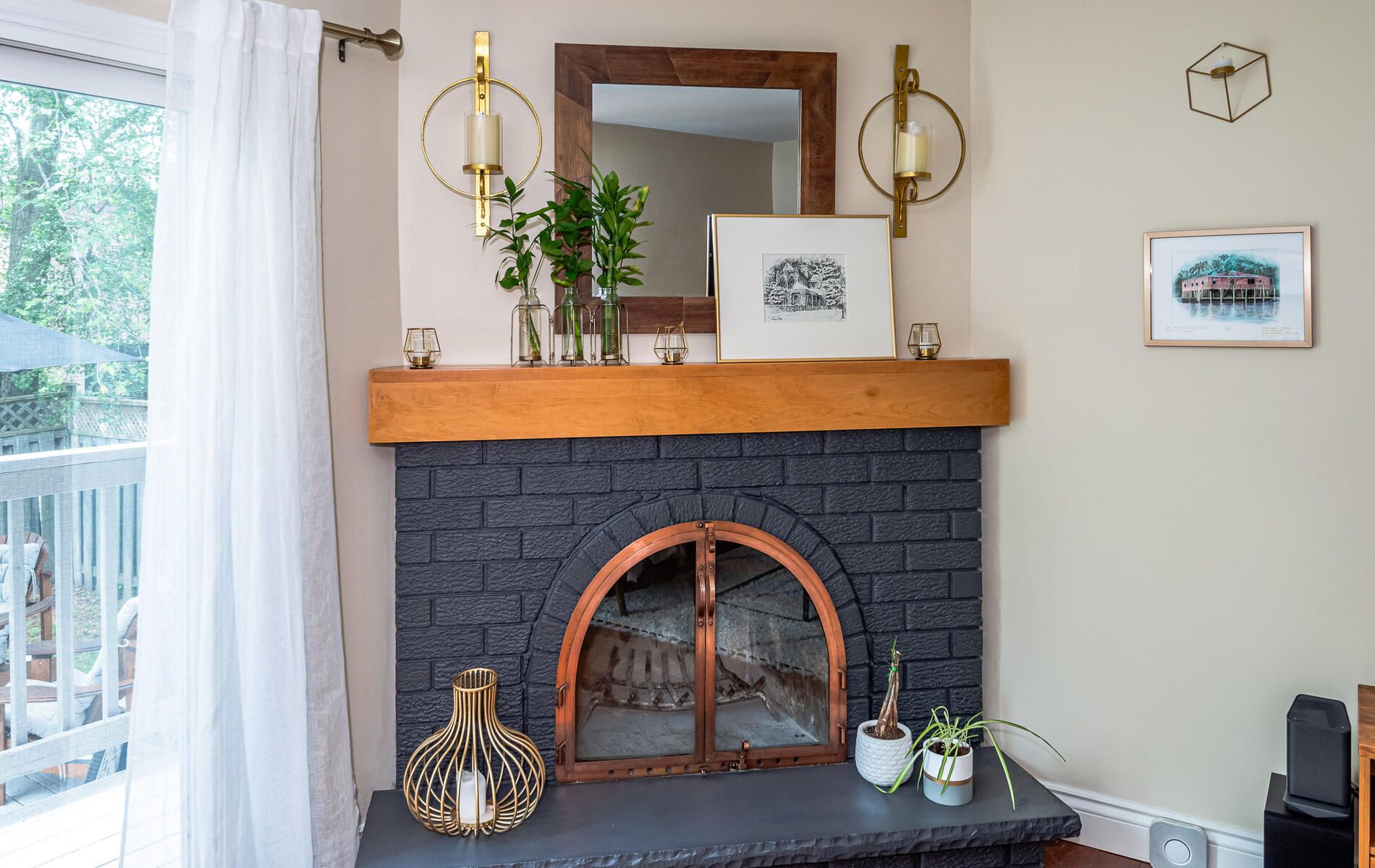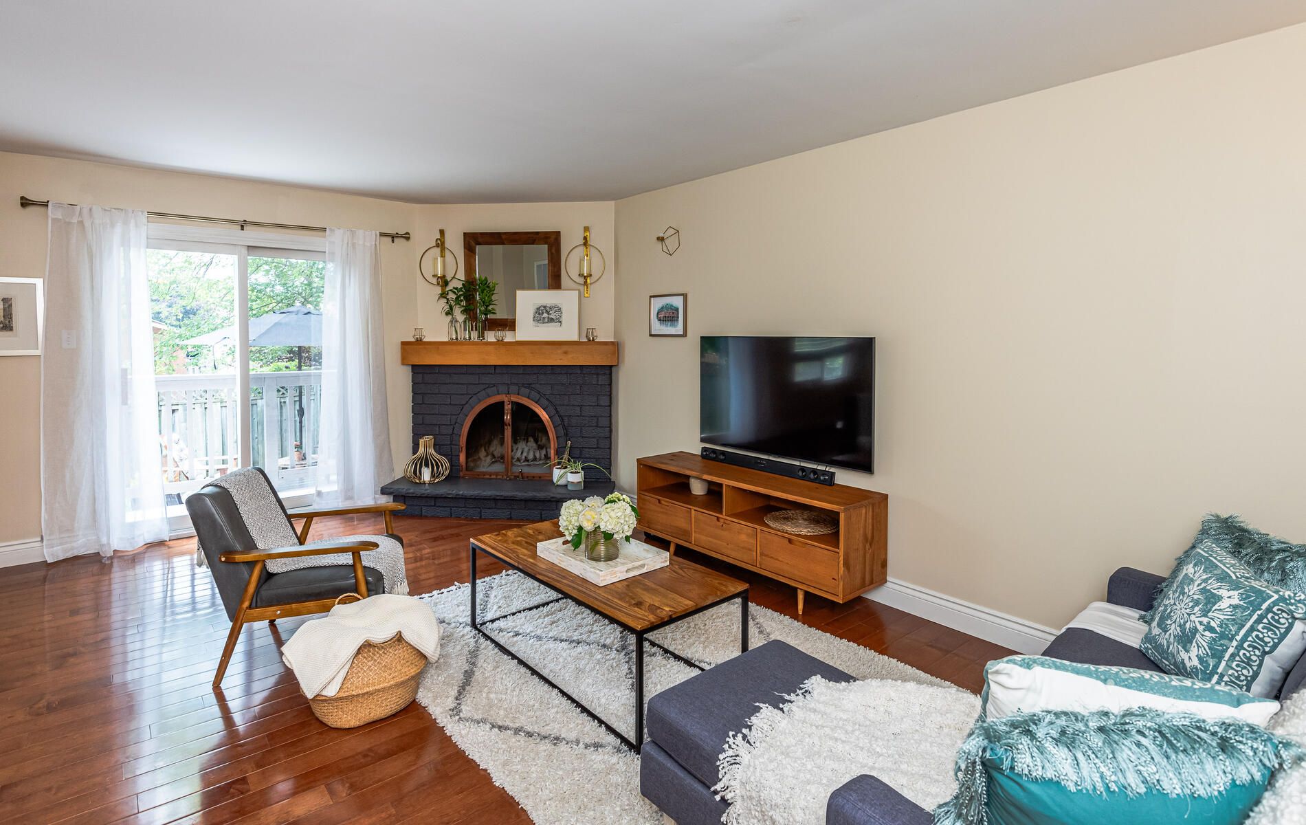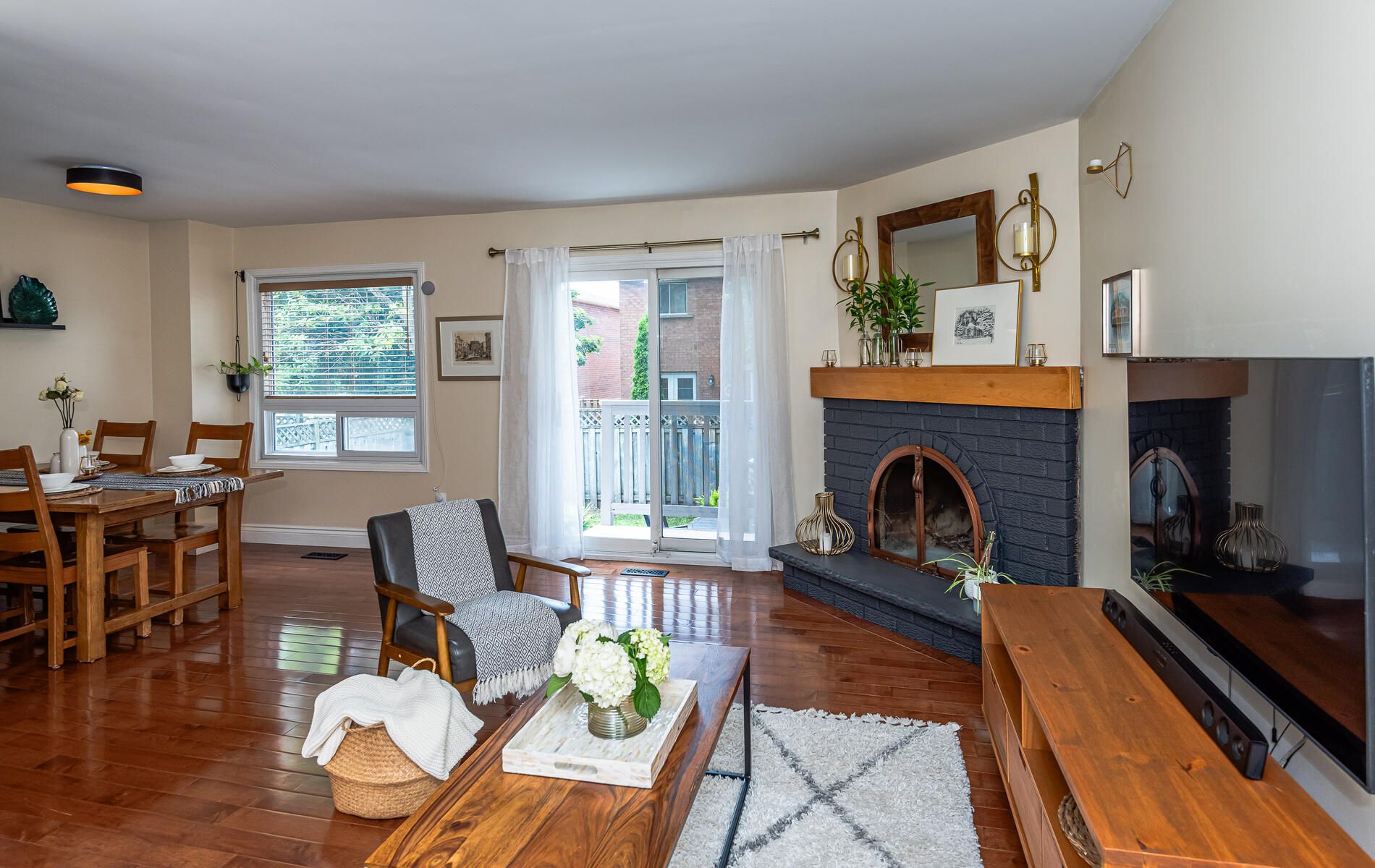 Hardwood Floor Fireplace O/Looks Backyard