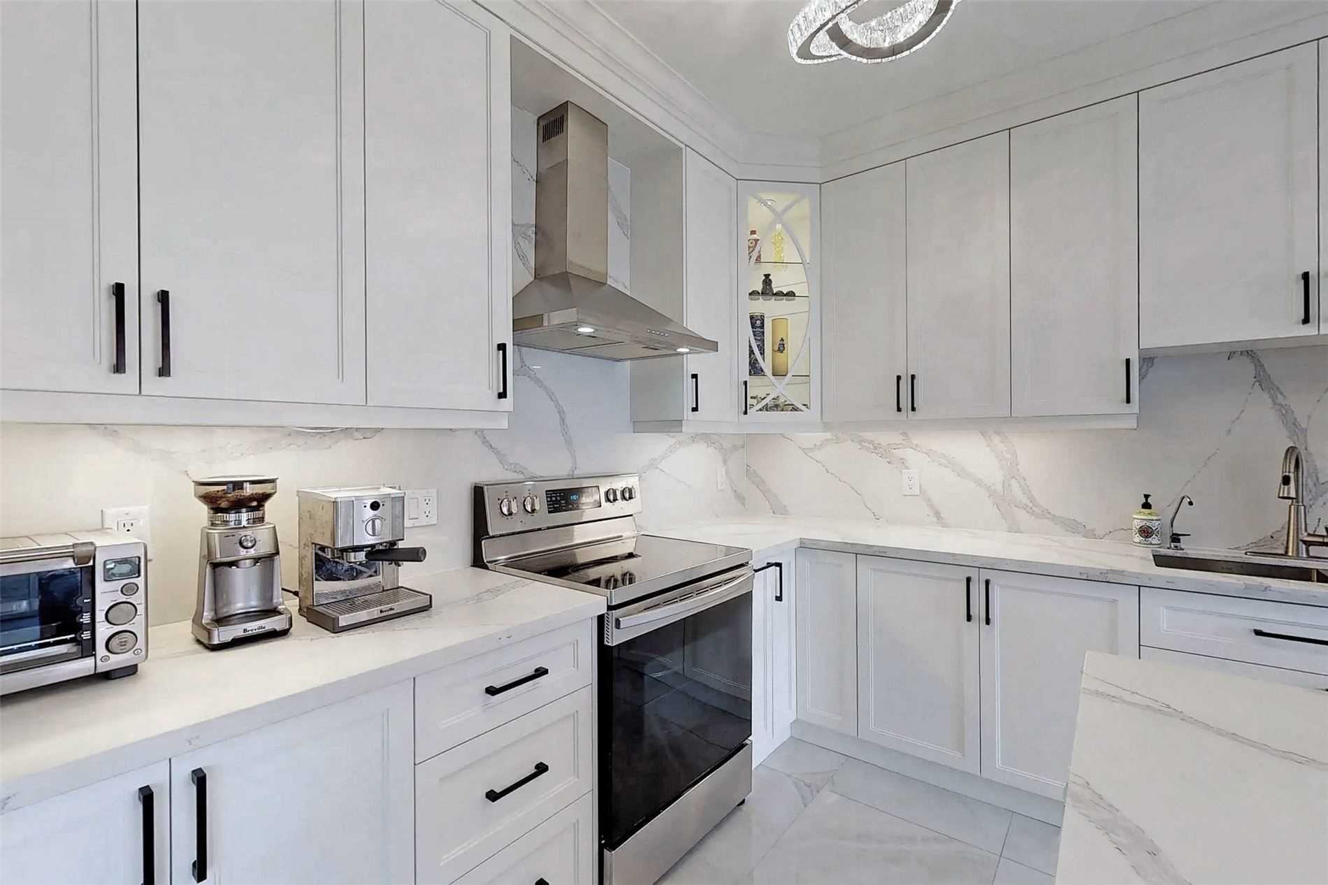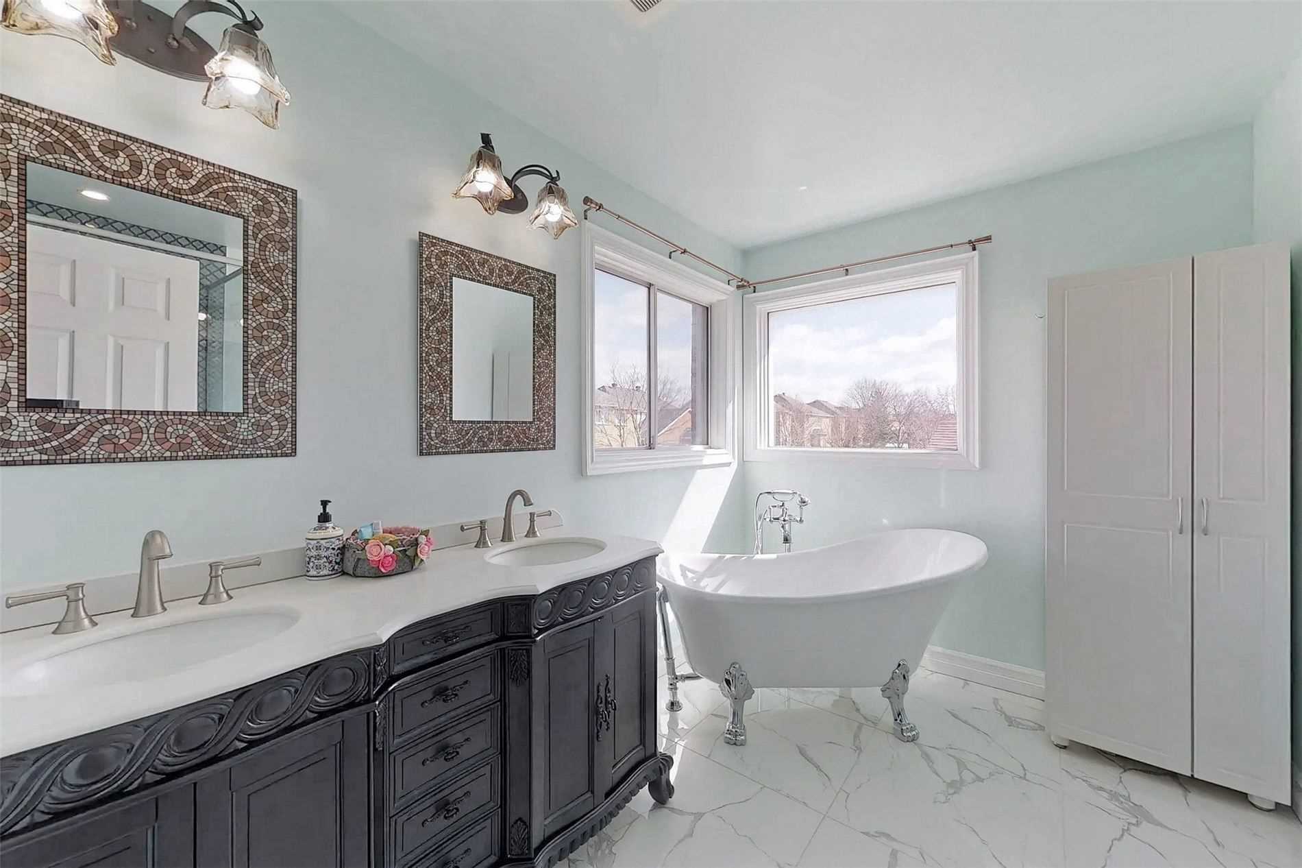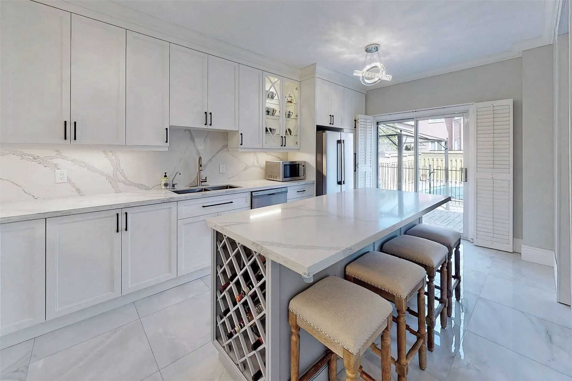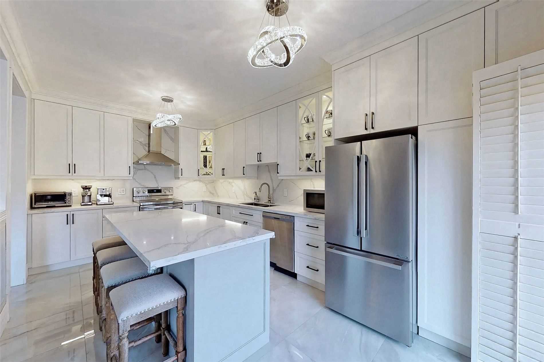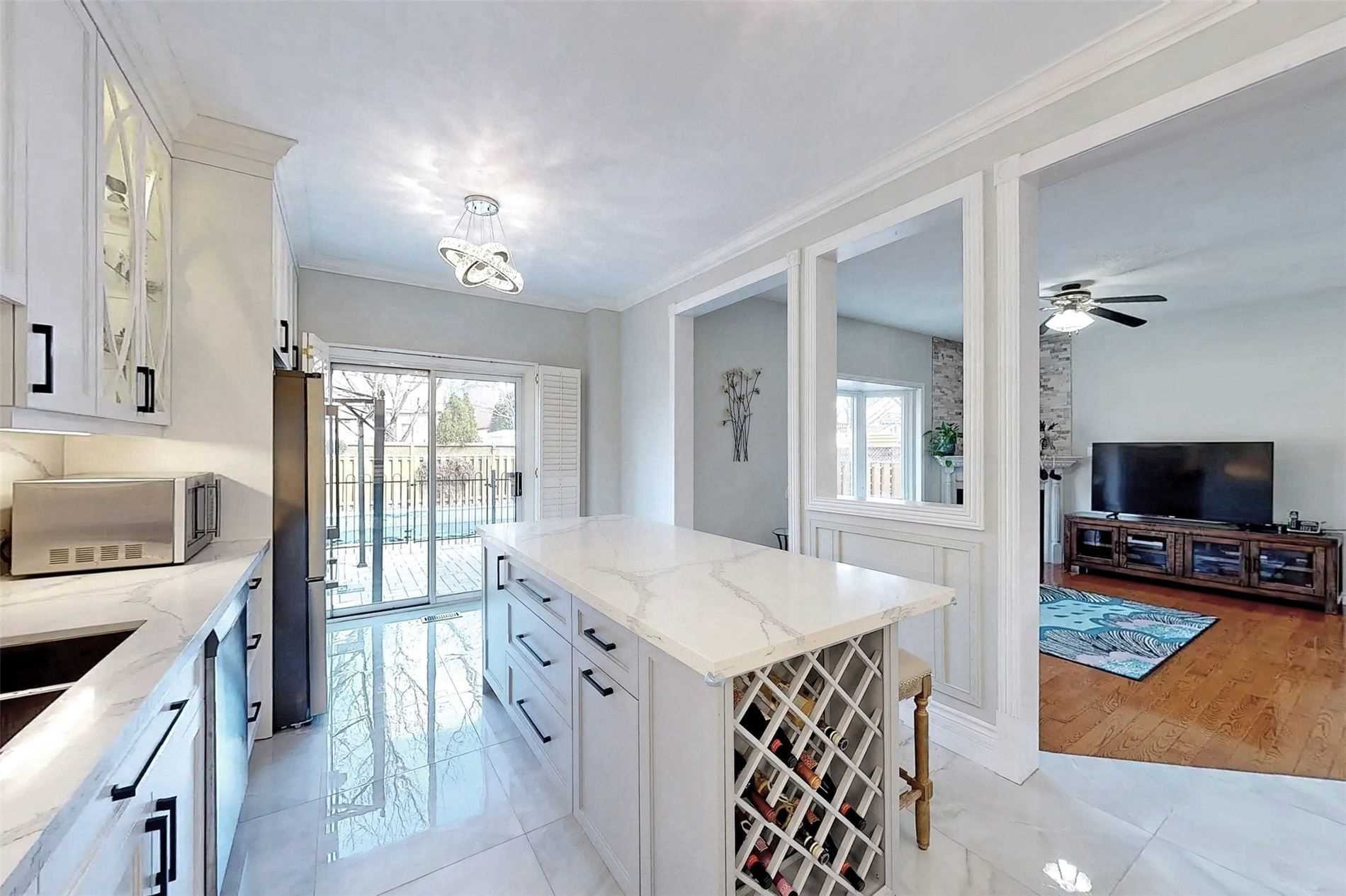 This Amazing 4 Bed 2 Garage Detached Brick Home. 2232Sf + Finished Basement. Spacious & Bright. 100K Recently Updated. Great Layout. Generous Sized Rms. Open To Below Foyer. 9' Ceiling. Gas Fireplace. 8 Parking Spots. New Open Concept Modern Kitchen, Renovated Prime Bathroom & Powder Rm, Updated Staircase, New Porcelain Tiles, 2nd Fr Hardwood. Professional Finished Basement. Direct Garage Access. Cold Rm. Steps To Byers Pond Park, Amenities, Schools & Transit.