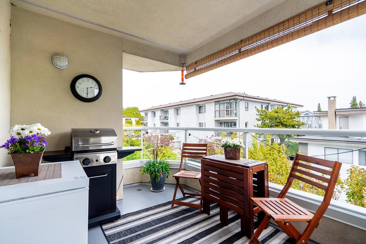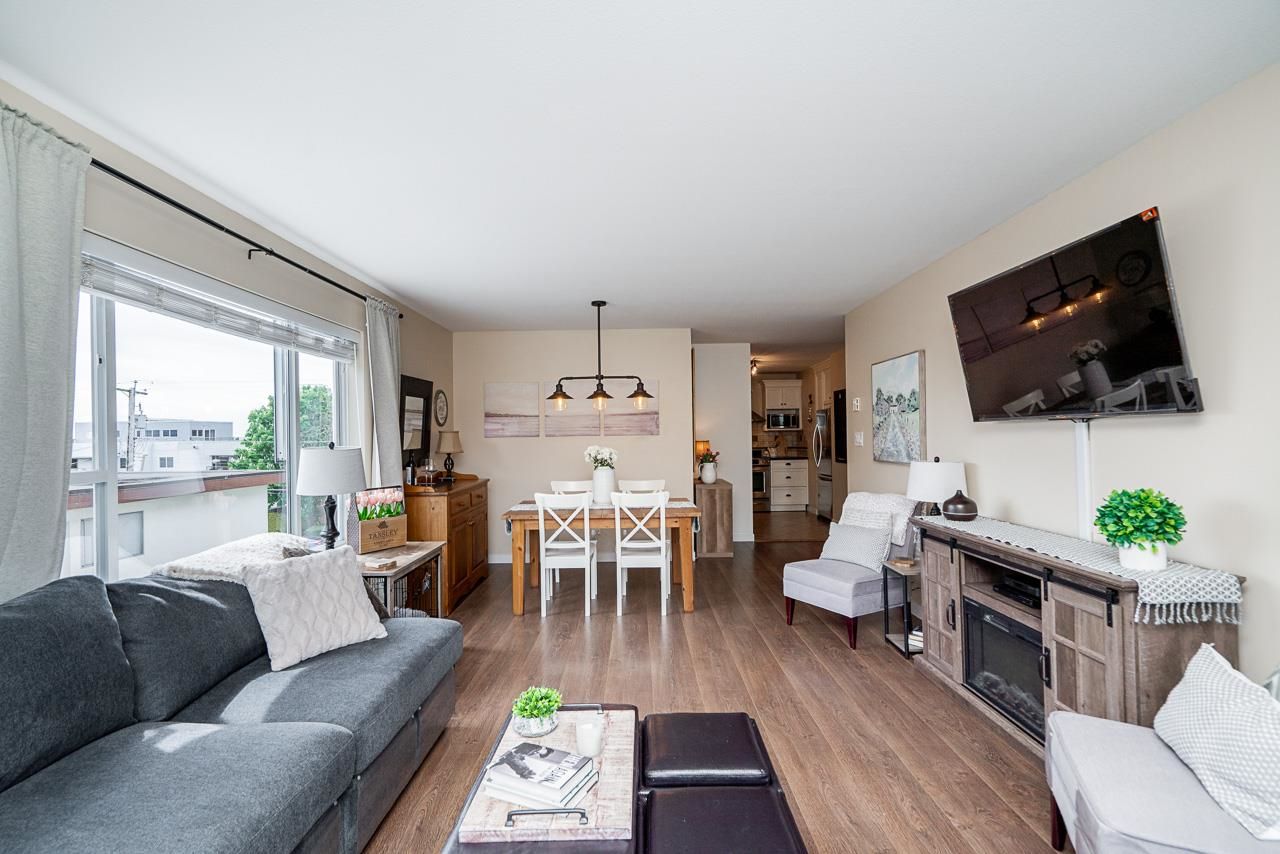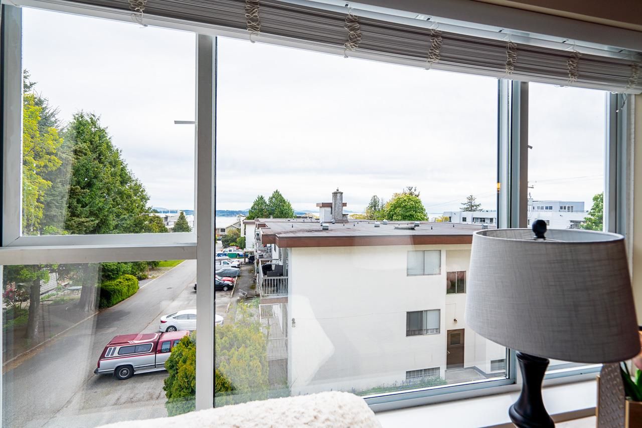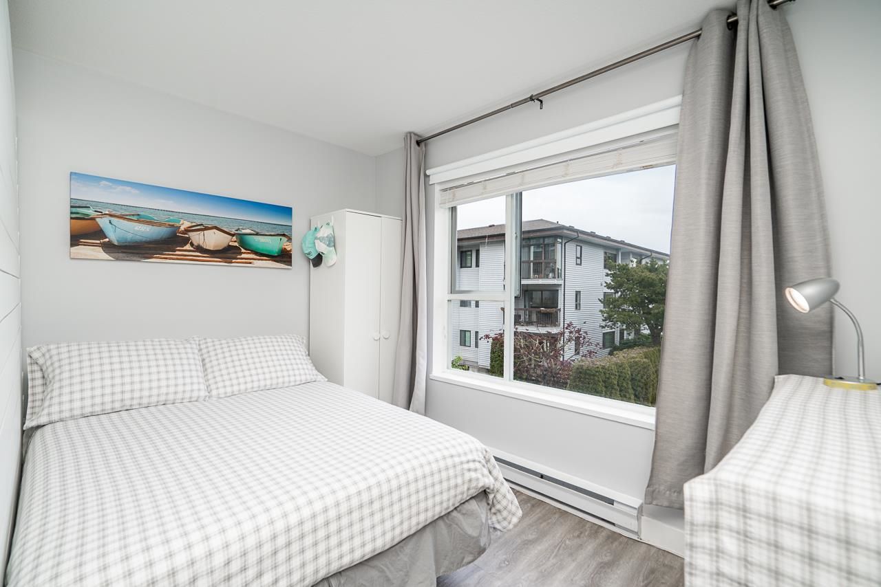 Welcome to Franklin Place- Prime location in the Heart of White Rock! This 2 bedroom 2 full bathroom condo is located in uptown White Rock where the beach is a short walk away. This south east corner unit boasts an excellent open floor plan with a view of the water from the living room and balcony. Its spacious master has been repurposed to give extra closet space and an office to really maximize your square footage. Updated floors, paint and recently renovated bathrooms as well as In suite laundry and tons of closet space. This awesome spot is no longer age restricted and allows for 1 pet (cat/dog, 18” at shoulder or 25lbs) and is walking distance to shops, restaurants, & White Rock Beach. Comes with 1 parking stall and 1 locker.