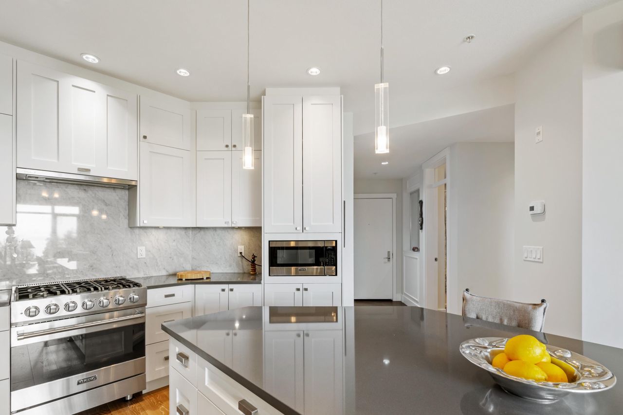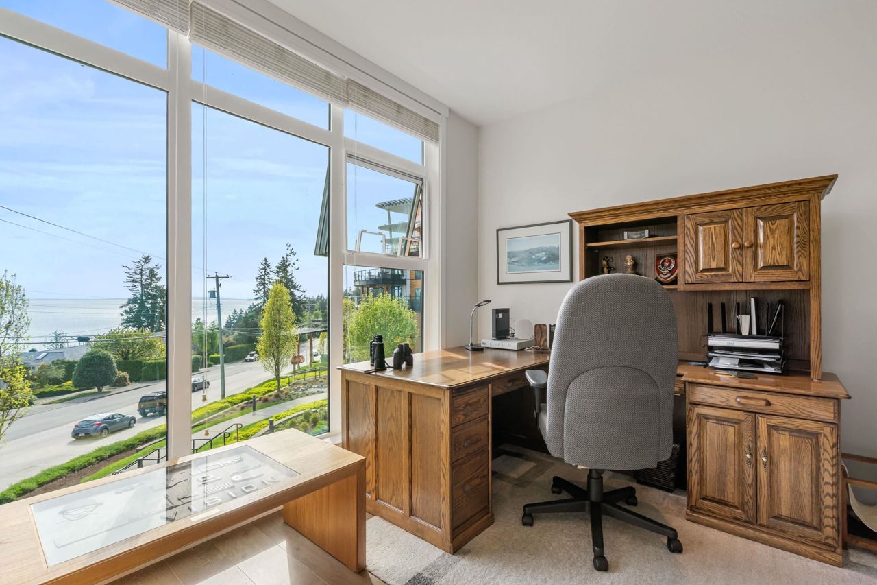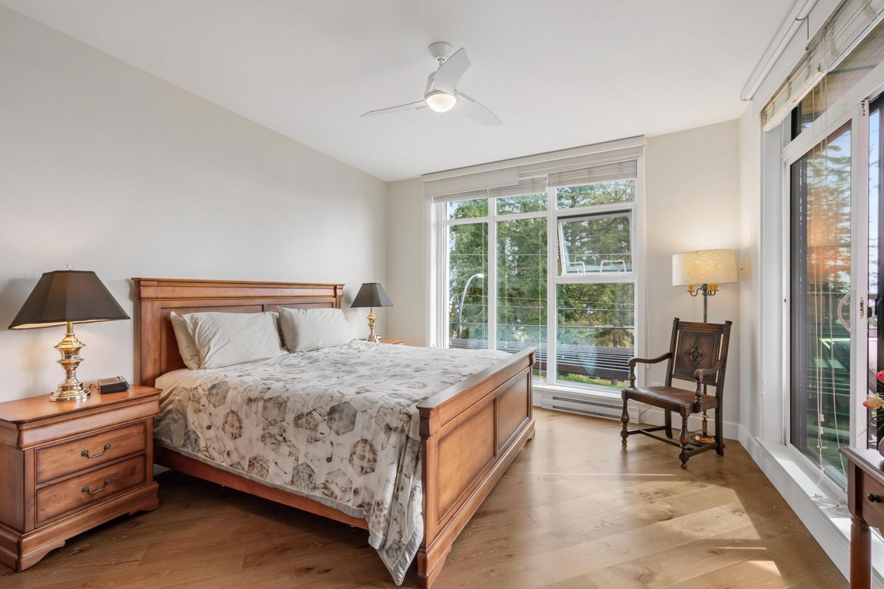 Welcome to The Royce! Nestled above the Semiahmoo Bay, your ocean view home awaits you! Beautifully landscaped gardens and tranquil setting will be your first intro to this elegantly designed building by Ackermann& Assoc. Unique to the area is the spaciousness of this home with over 2300 sq ft of luxurious living, 3 bdrm/Den (or 4th bdrm). Features include gourmet kitchen with high end S/S appliances, gas range, touch hood fan and wine fridge.eng wood floors throughout, air-conditioning, oversized quartz island, 2 large outdoor patios, 2 parking and 2 storage lockers that make this space feel more like a house than a condo.This home is vacant and ready for you. Walking distance to Uptown White Rock or down to the famous White Rock beach your new lifestyle awaits. pets allowed