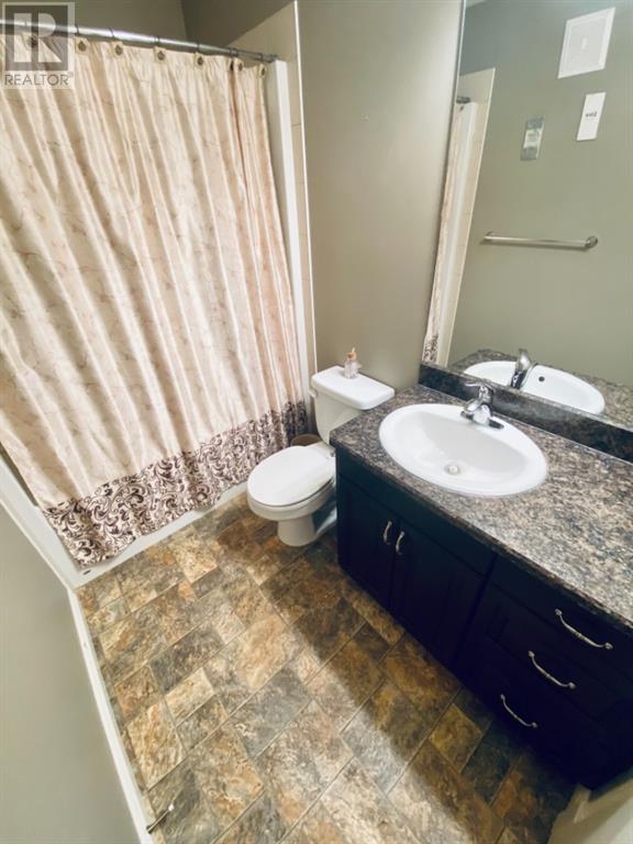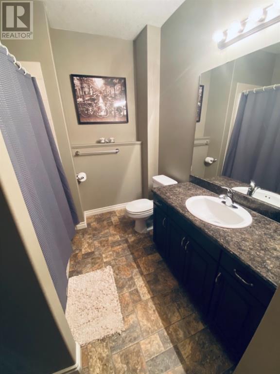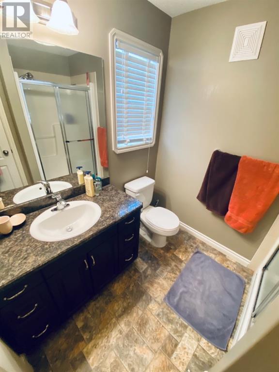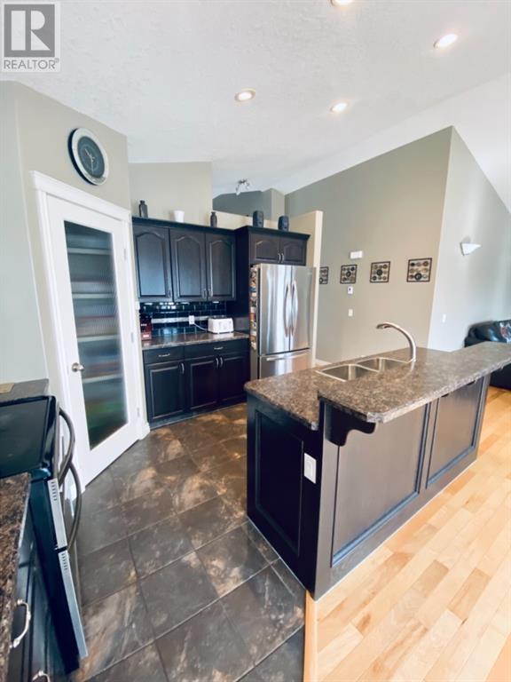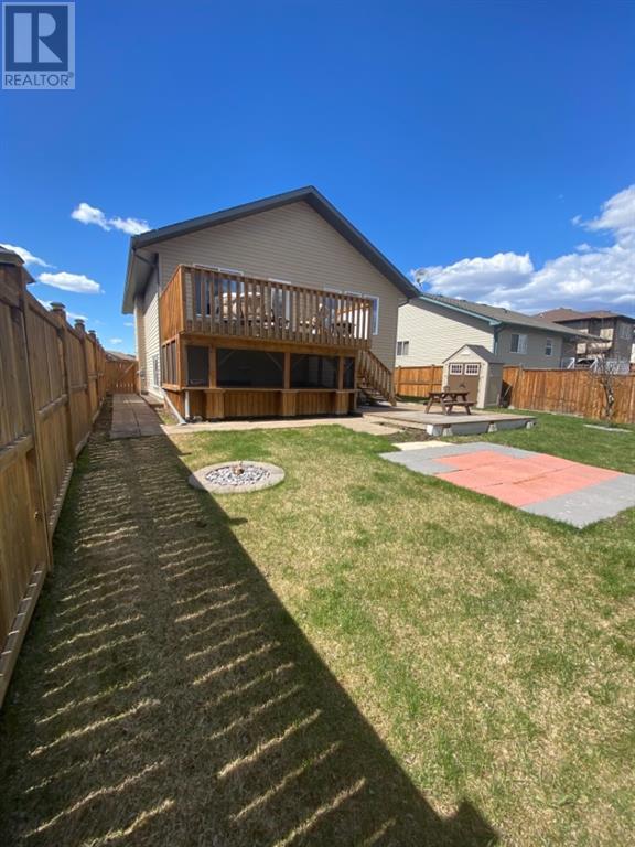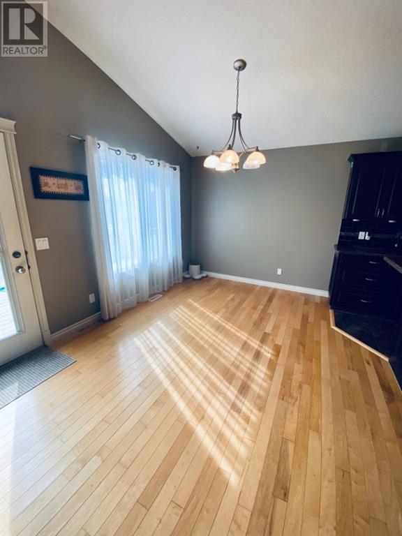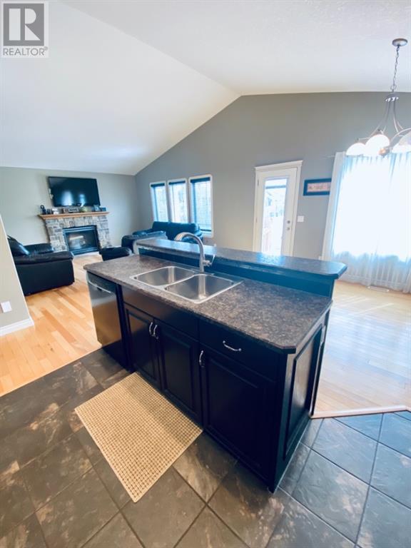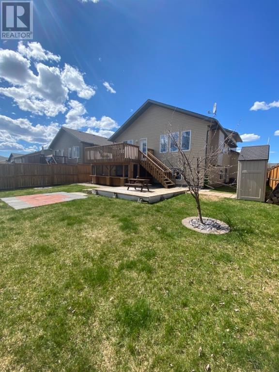 Beautiful 1424sqft modified bi level located close to schools, ball diamonds and more. The home boasts an amazing large entry with high vaulted ceilings. On the upper level secluded from the rest of the home, there is a huge master bedroom, 3pc ensuite and large walk in closet. On the main floor there are two bedrooms, and a 4 pc bathroom. The living areas boasts hardwood flooring and is open and bright, and with the high ceilings it will feel even more spacious. The kitchen has dark soft close cabinetry, a pantry, an eat in kitchen island, and the living room has a gas fireplace to enjoy. The garden doors off the dining room lead to the large south facing backyard, that has no neighbors directly behind. The two tiered deck gives you loads of privacy for you to host family gatherings, and the added bonus of this great backyard is the screened in area underneath the deck that allows you to utilize when its rainy or the mosquitoes are out. Downstairs there is a good sized bedroom, another 4 pc bathroom, laundry room, newer hot water tank and infloor heat The gorgeous rec room has all the space you will need for activities, and the pool table stays with the property. The home has air conditioning which is a must, and an attached 24x24 heated garage, with a new heater installed in 2023. This home is a must see!! (id:22211)