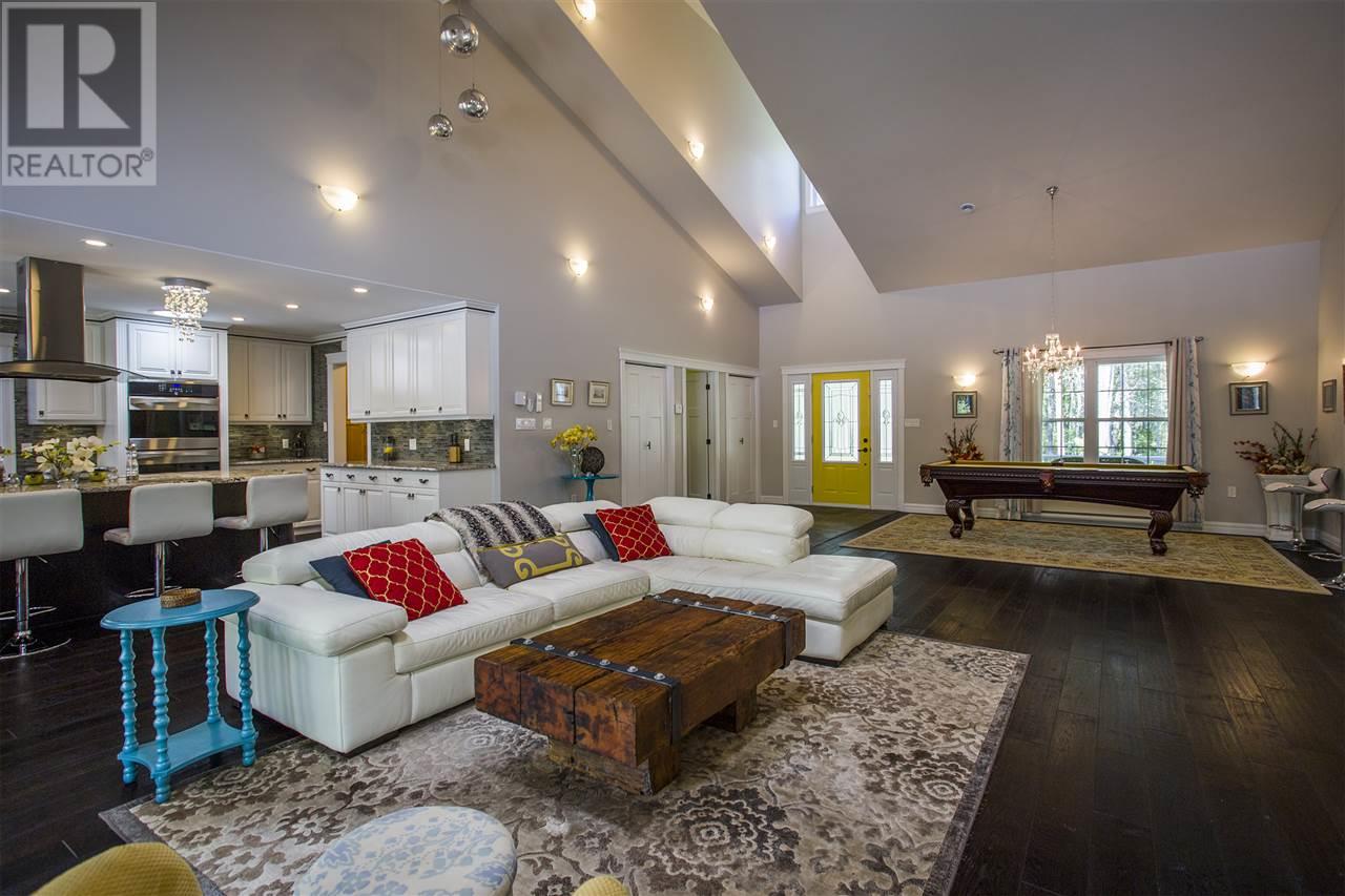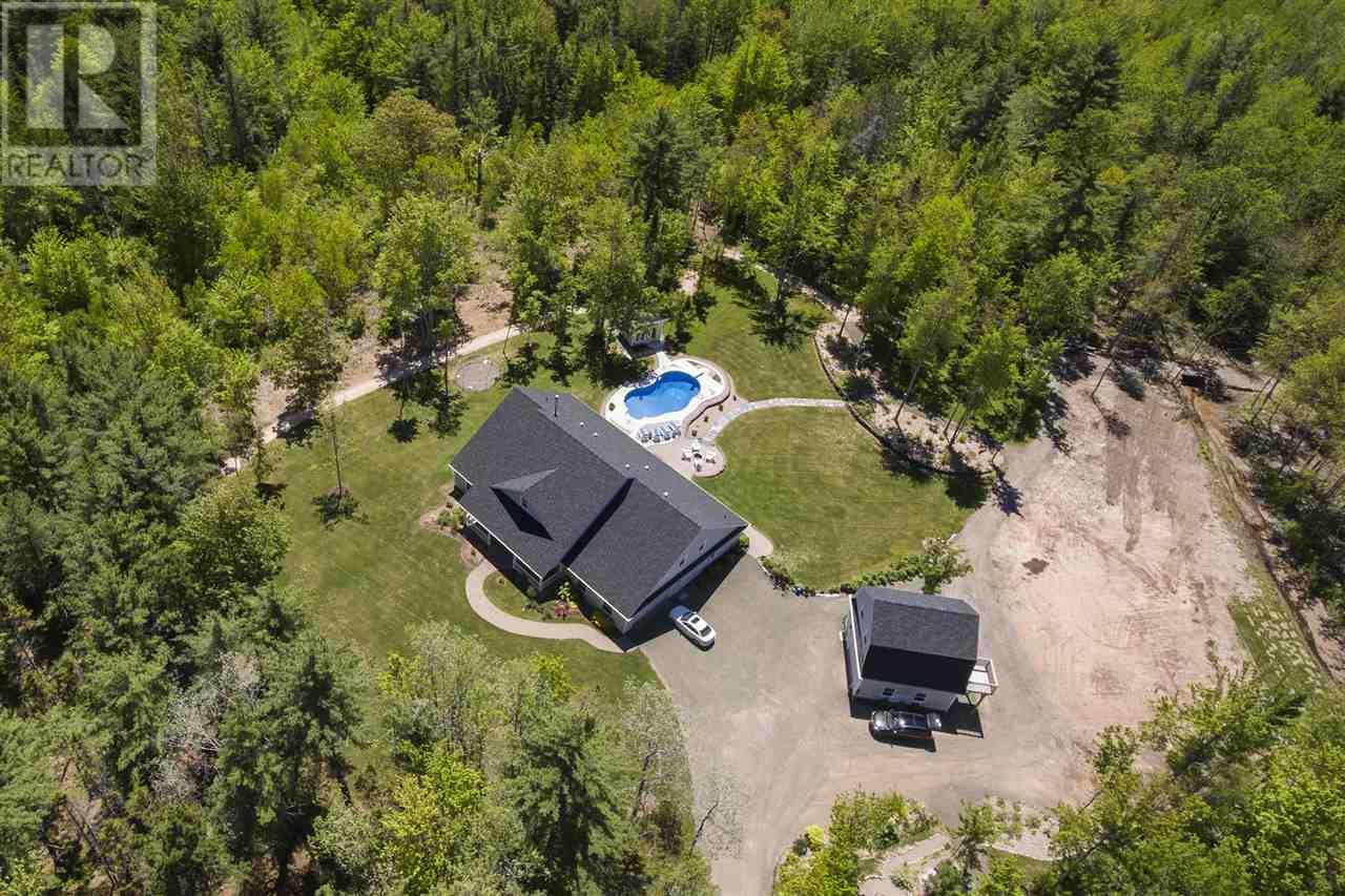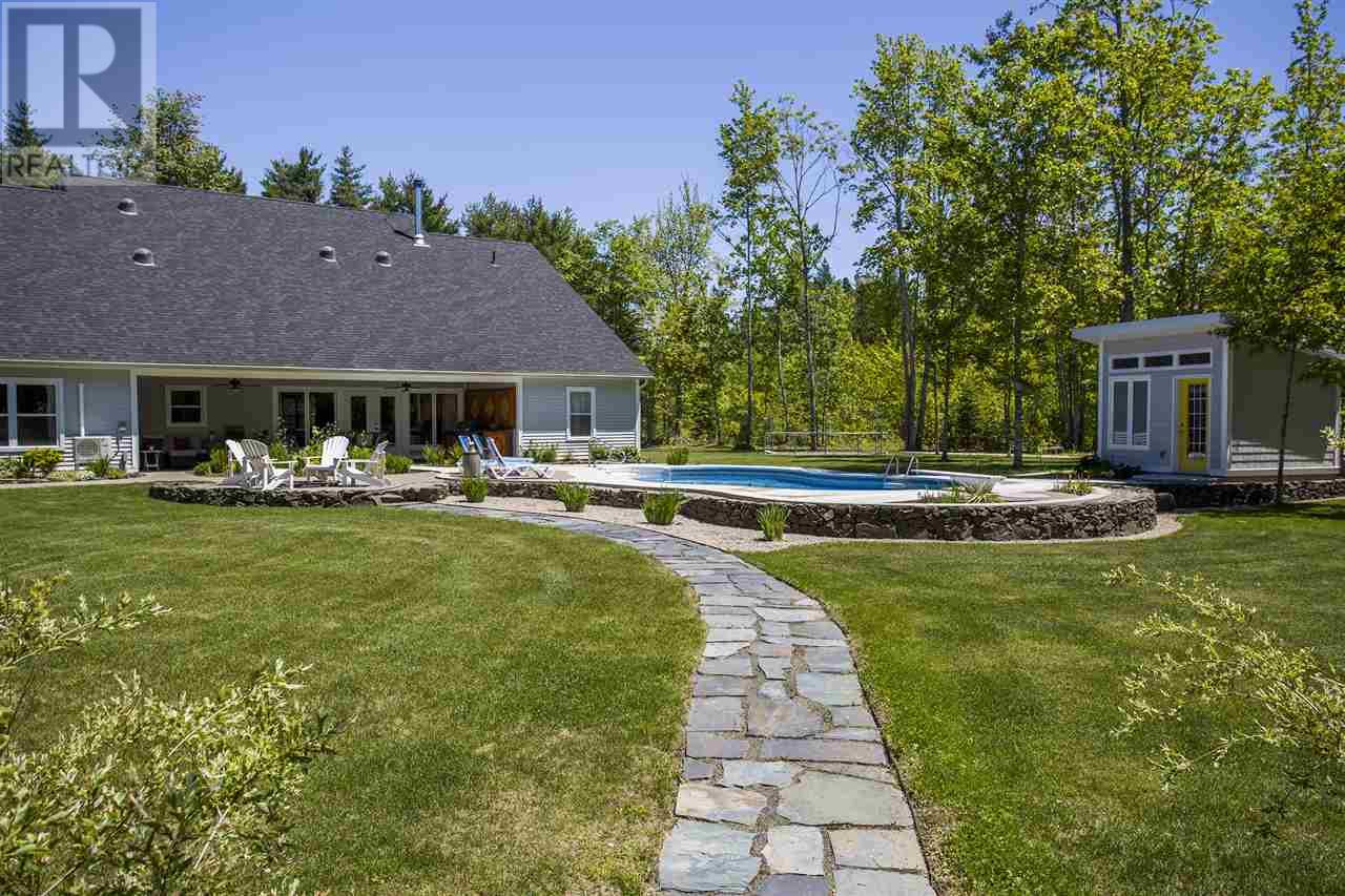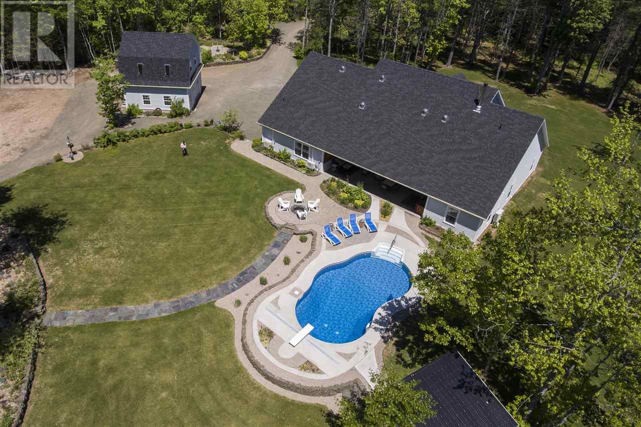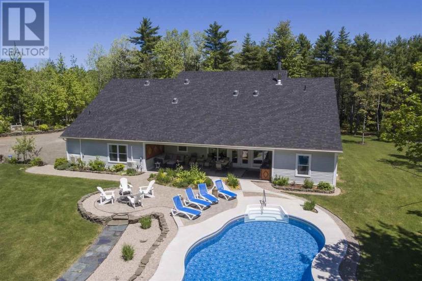 Custom-built executive bungalow, built in 2013 nestled on an idyllic 6 acre lot on the Valley floor, just moments to all amenities including CFB Greenwood. No expense spared in construction: high-end features and finishes everywhere. Slate, antique oak & bamboo flooring. Open-concept layout with vaulted ceilings, sun tubes, crown mouldings & large windows. Super-efficient; easily with 3 heat pumps & central wood stove. Deluxe custom chefs kitchen with birch+oak cabinets, granite counters, walk-in pantry, high-end appliances. Main floor master with XL tiled ensuite & double closets. Exterior features mature landscaping with abundant shade trees and much attention to detail: stone walls, interlocking brick patio, covered outdoor kitchen, fire pit, hand-turned deck posts. Lovely trail network around property for nature walks in your own backyard. Heated in-ground saltwater pool with wired 12x10 pool house. Attached double and detached 24x24 garage with 2nd story (ready for getaway lounge!), both wired. Offerings like this are rare! Serious buyers only, please. HD VIDEO AVAILABLE: Google 915 Bradley Street, Wilmot (id:22211)
