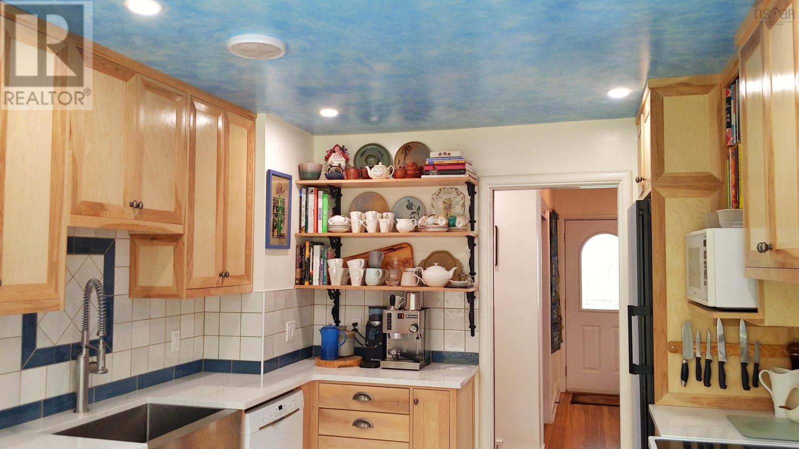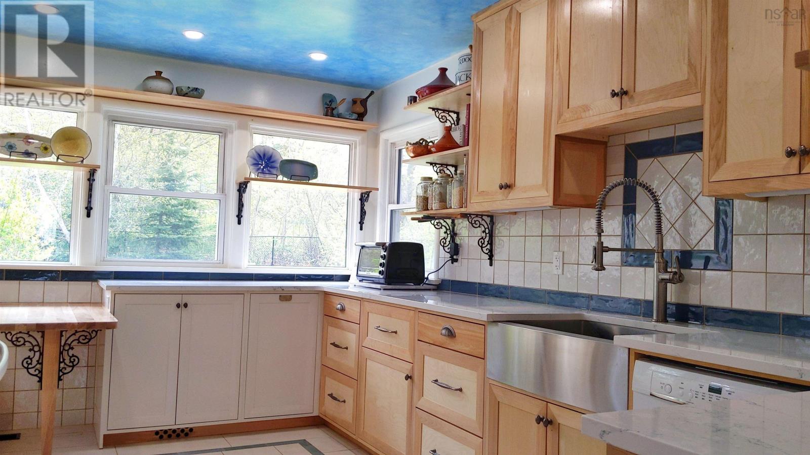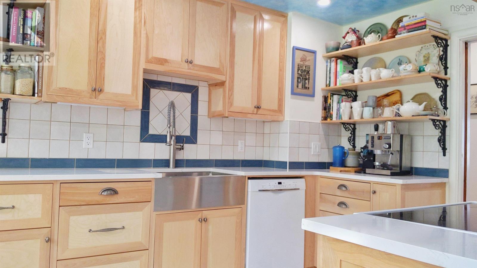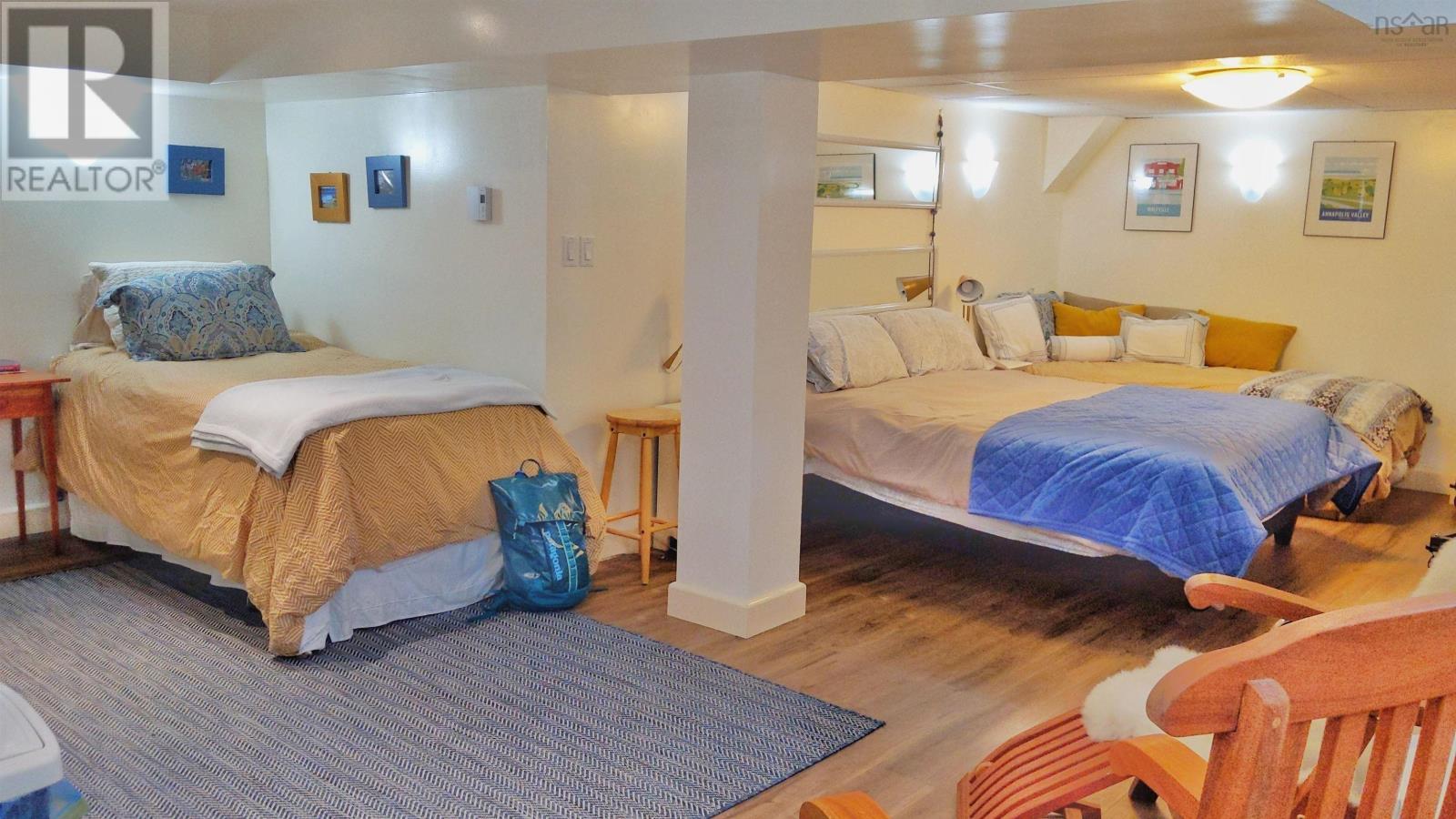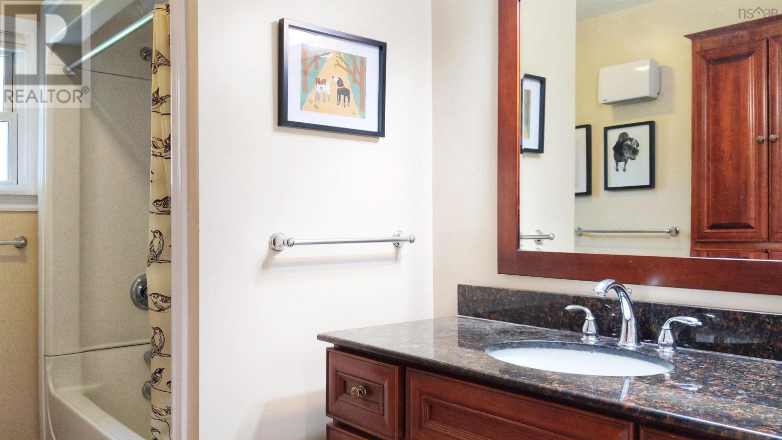 Welcome to your dream home in Wolfville, a charming town with everything you need within walking distance. This lovely 2500 sq.ft. bungalow has been tastefully renovated with modern features and high-quality materials. You will love the spacious, open, and bright living area with hardwood floors, vaulted ceilings, a cozy soapstone wood stove, and a built-in window seat. A perfect family home for entertaining guests or relaxing with family. The custom kitchen boasts quartz countertops, ample storage, and plenty of natural light. The main floor offers three nice sized bedrooms, primary with its own half bath. The lower level features a huge suite with new ensuite and egress window, ideal for guests or income potential. The new oversized heated garage and mudroom add convenience and storage space. Enjoy the comfort of ducted heat pump throughout the year. The private fenced oasis is a gardener's delight, with honey crisp apples, blueberries, and beautiful landscaping. Relax or entertain on the expansive deck and enjoy the day. This stunning bungalow is a rare find in Wolfville. Contact us today for a brochure with more details on the upgrades! (id:22211)