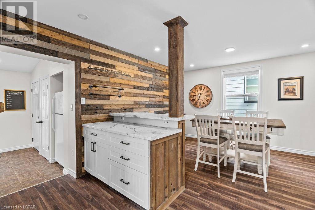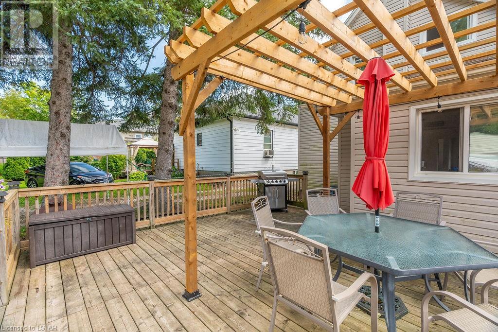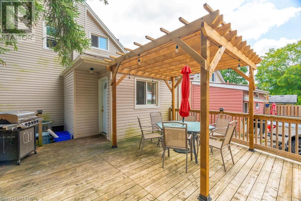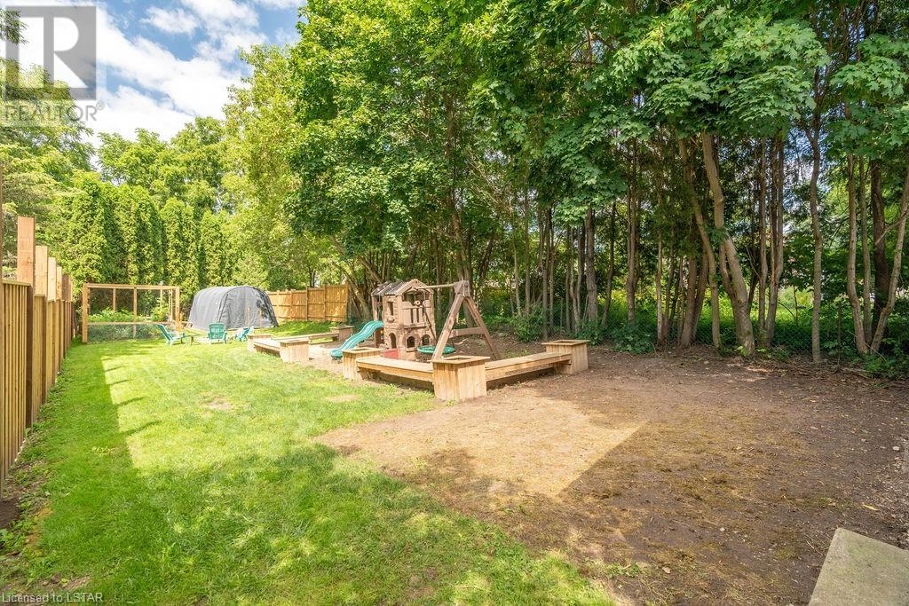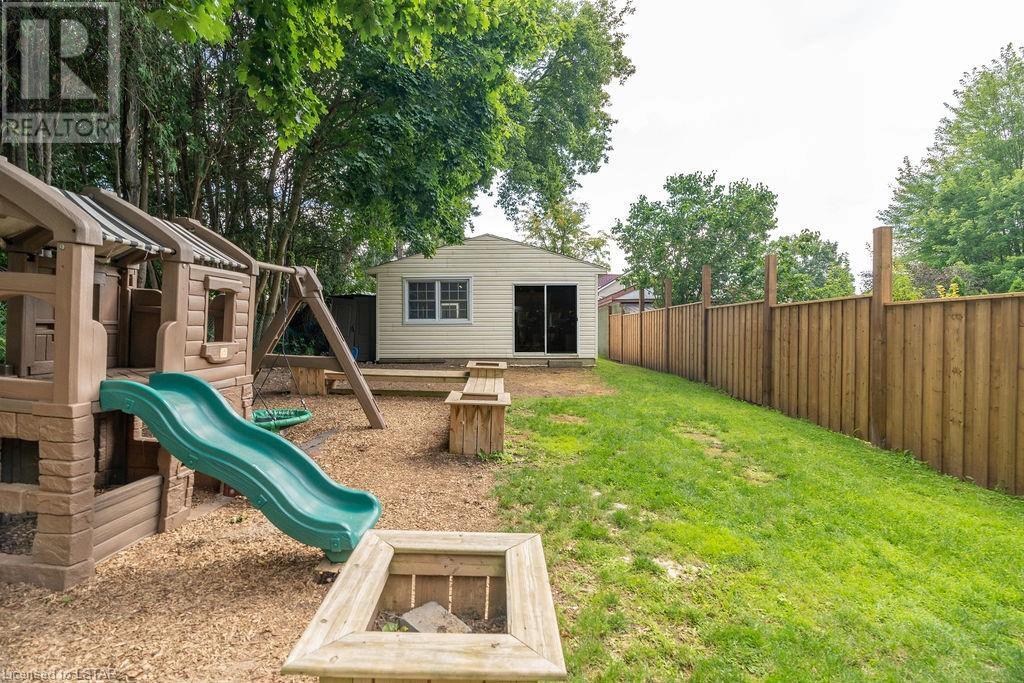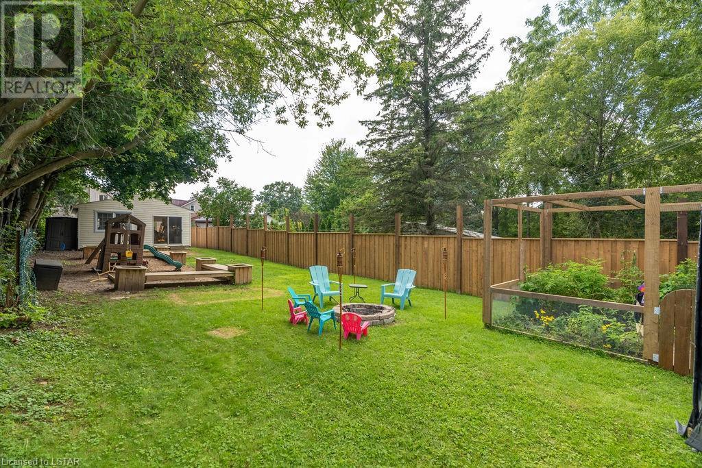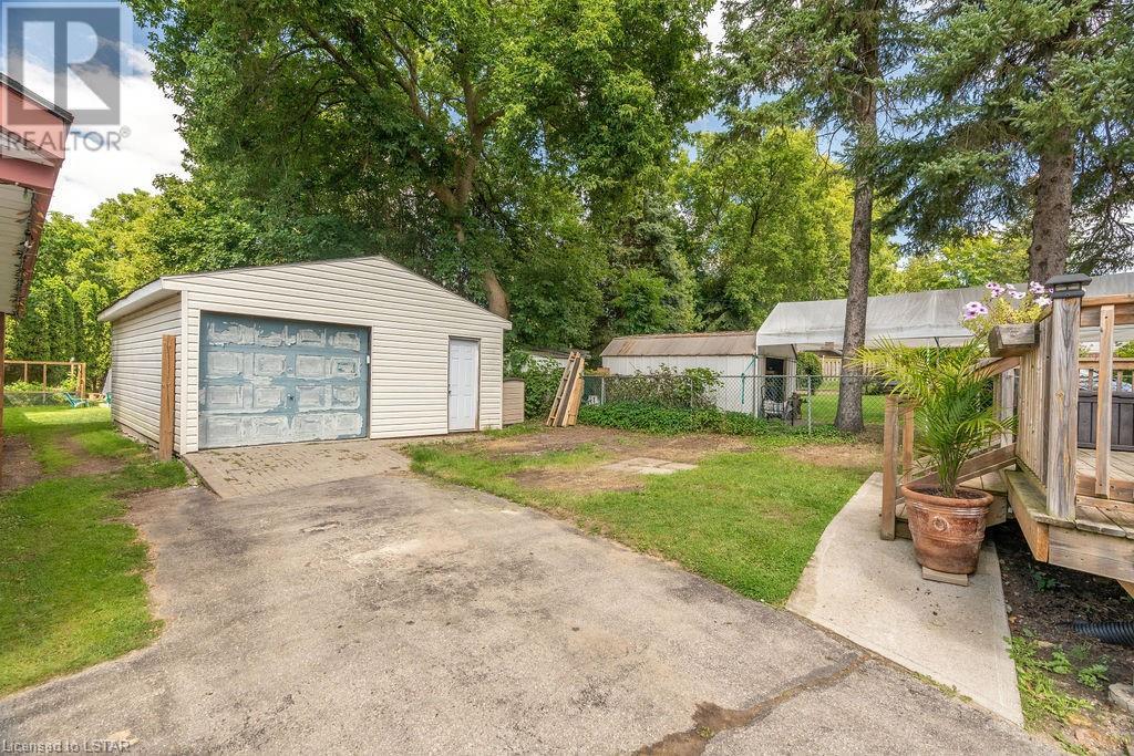 Welcome to 167 Hunter Street! This move-in ready gem is the perfect starter home for your small family. Step into the private, fully fenced backyard and you'll find mature trees providing ample shade, making it an ideal spot to relax, whether you’re gardening, or hanging out under the pergola on the back deck. The detached double garage, complete with a single garage door, and sliding glass door and windows at the back add to an ideal summer BBQ entertaining space, offering a seamless indoor-outdoor experience. The expansive 200+ foot lot depth boasts an incredible playground for the kids and an enclosed veggie garden for those with a green thumb! Inside, the house has been freshly painted from top to bottom, with most of the baseboard and trim being brand new. The living room features a large bay window at the front creating a bright and inviting space. The dining room features a new bar area, a fun spot to host friends and family, and the kitchen offers tons of cupboard and counter space. A convenient 2-piece powder room completes the main floor. Upstairs, you'll find 3 bedrooms and a large 4-piece bathroom that can accommodate the whole family's needs. The basement is versatile, with a rec room that's perfect for family movie nights and ample playroom space for the kids. Additionally, there's a bonus room that can be used for crafting or as a home office. The storage and laundry room complete the basement, with a 3-year-old washer-dryer setup and plenty of storage throughout. Location-wise, you'll be within walking distance of numerous amenities, downtown Woodstock, and two elementary schools. The Standard Tube Trail and nearby hiking trails leading to the dam offer great outdoor activities like hiking and fishing. Plus, the proximity to Hwy 2 ensures easy access to London and Ingersoll, as well as other town and city centres, just 30-40 minutes away. Don't miss the chance to make this fantastic family starter home yours. (id:22211)