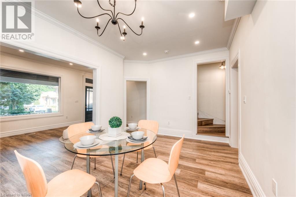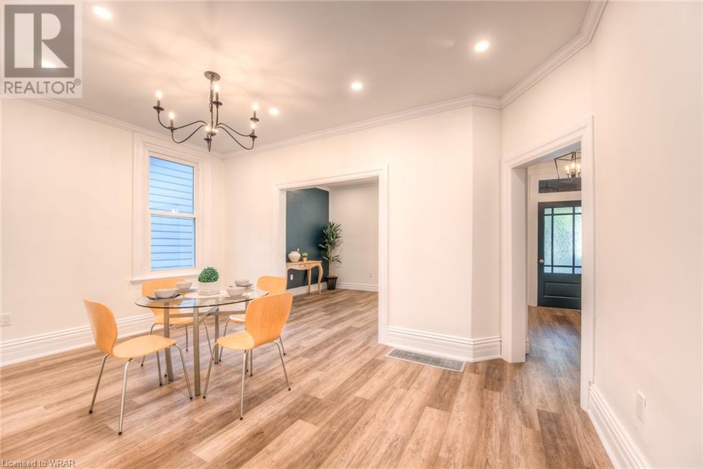 Welcome to your new home in the heart of Woodstock. Nestled in a peaceful neighbourhood, this semi-detached gem offers the perfect blend of modern amenities and classic charm. This recently updated home boasts a beautiful kitchen with quartz countertop and stainless steel appliances. The living room offers plenty of space to relax and enjoy the view out of the oversized front window. The luxury dining room is conveniently located right off the kitchen and is perfect for entertaining. The new flooring and high ceilings throughout the home will leave you stunned! The upstairs has a gorgeous shared full sized bathroom, and three good sized bedrooms. With a charming covered front porch and a huge backyard, this home is a must-see! This property is ideal for first-time homebuyers and families alike. Book your showing today and don't miss this opportunity! (id:22211)