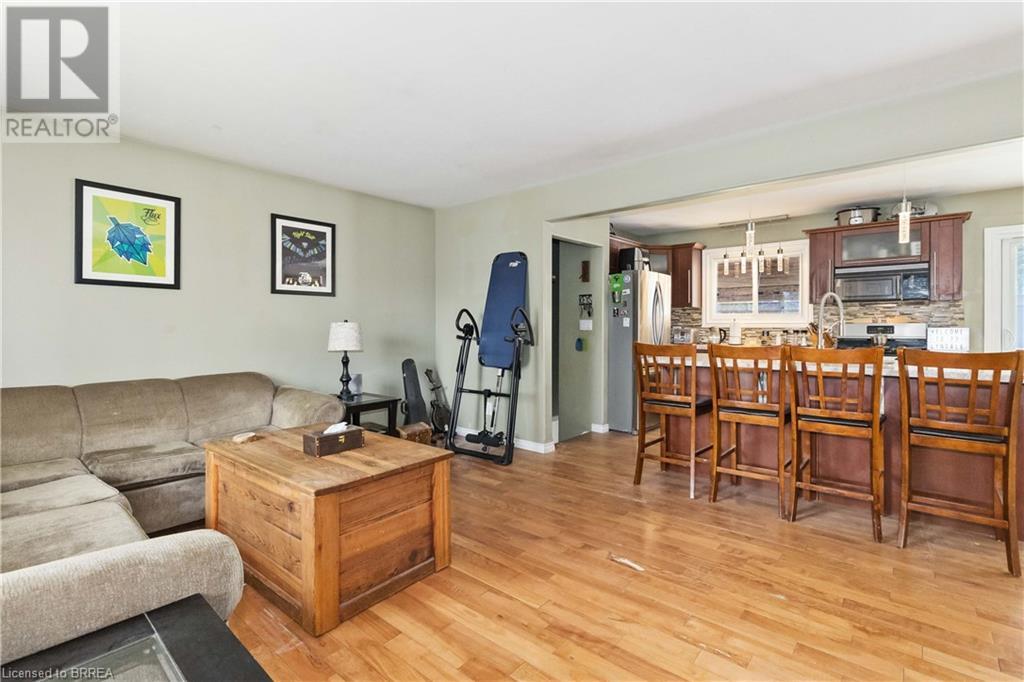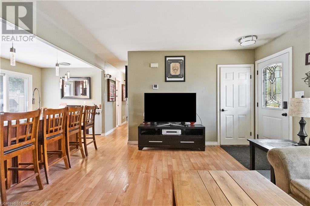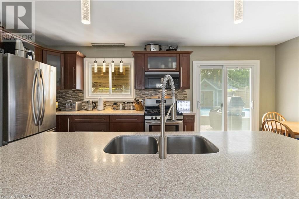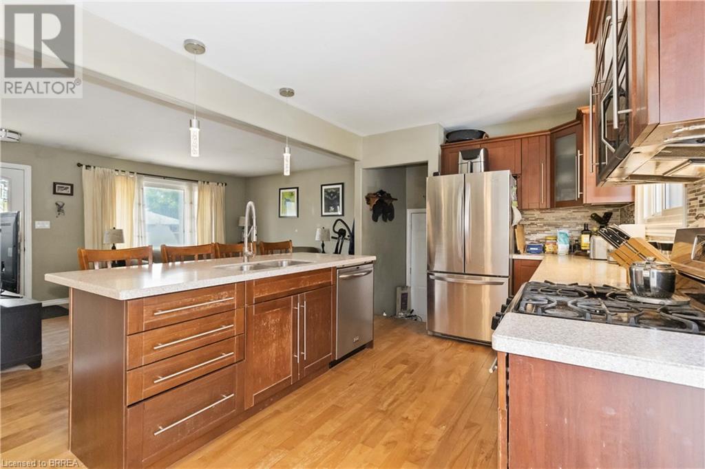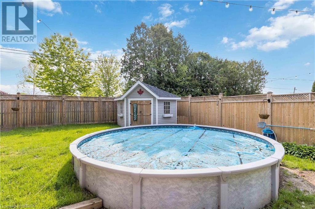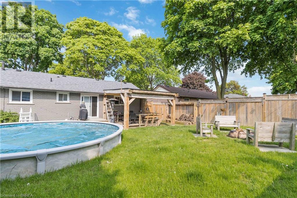 The wait is over! Perfect for the growing family, this charming 3 bedroom bungalow is located in a quiet North-end location and backs onto green-space!! Mature trees provide great curb appeal and character to the property. Many updates have been done both inside and out that make this home so desirable. As you step through the front door, you will immediately appreciate the open concept layout, loads of natural light, and beautiful hardwood flooring. The large living room offers plenty of space for entertaining or spending time with the family. The stunning kitchen features granite countertops and stainless steel appliances, and conveniently flows through to the adjacent dining room with walkout to your private backyard. Conveniently located on the main floor are 3 large bedrooms and an updated 4pc bath. The basement has a bathroom rough-in, large rec room, and plenty of space for storage. You're sure to appreciate the backyard! The rustic covered patio makes hosting summer events and gatherings truly special! The fire-pit, large shed, and above ground swimming pool add to the many features this home has to offer. If you're a commuter, look no further! You're close to hwy 401 access and all major amenities. Schools, shopping, and restaurants are just minutes away. View this one in person to truly appreciate everything it has to offer! (id:22211)