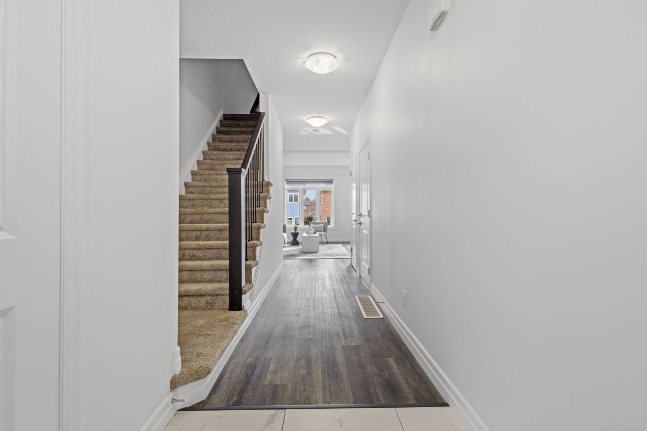 Discover this immaculate freehold TownHome ( 3 bed 2.5 bath) in Woodstock's newest and most desirable area. Located on the north end of town, it offers convenience with parks, highways, shopping, and more just moments away. This townhome features an open-concept main floor with a spacious entryway, a kitchen and living space that flow seamlessly together, and patio access to the deck. The main floor also offers direct garage access and a half bath. Upstairs, you'll find a large master bedroom with an ensuite and walk-in closet, two additional bedrooms, a full 4-piece bath, and second-floor laundry. The basement boasts impressive lookout windows, providing abundant natural light, along with a rough-in and a cold room. Don't miss out on this exceptional home.Close to 401 And Transit, Schools, Parks, Lake, Place Of Worship, And Many More Amenities