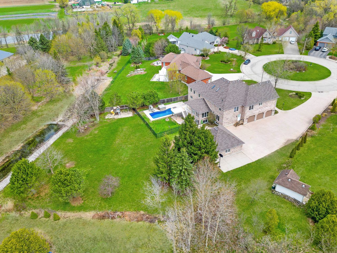 WELCOME TO 15 COUNTRY SPRING WALK! A sprawling 7500+ sf custom-built home, tucked away in the heart of Conestogo. This home is situated on just under an acre Offering 6+1 beds, a fully-finished w/out basement, & an in-ground pool. With excellent curb appeal & a serene pond as a backdrop, this stunning home is a true escape from the world. The main floor has 20-ft ceilings in the grand foyer. Travertine flooring starts at the entrance & leads through to the study. The true heart of the home is the great room, which boasts a beautiful brick-encased gas F/P & vaulted beamed ceilings. - The backyard boasts an in-ground pool. Eat-in kitchen - form & function seamlessly come together in the bright & airy kitchen. The centre piece is the 9-ft island. Expertly crafted cabinetry & quartz countertops. Top-of-the-line s/s appliances, incl. a Frigidaire Professional® freezer & fridge & an XL pantry. Conestogo offers residents a quiet & idyllic setting.