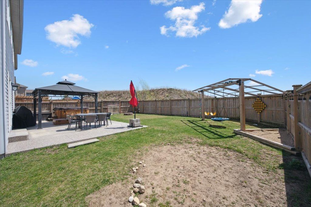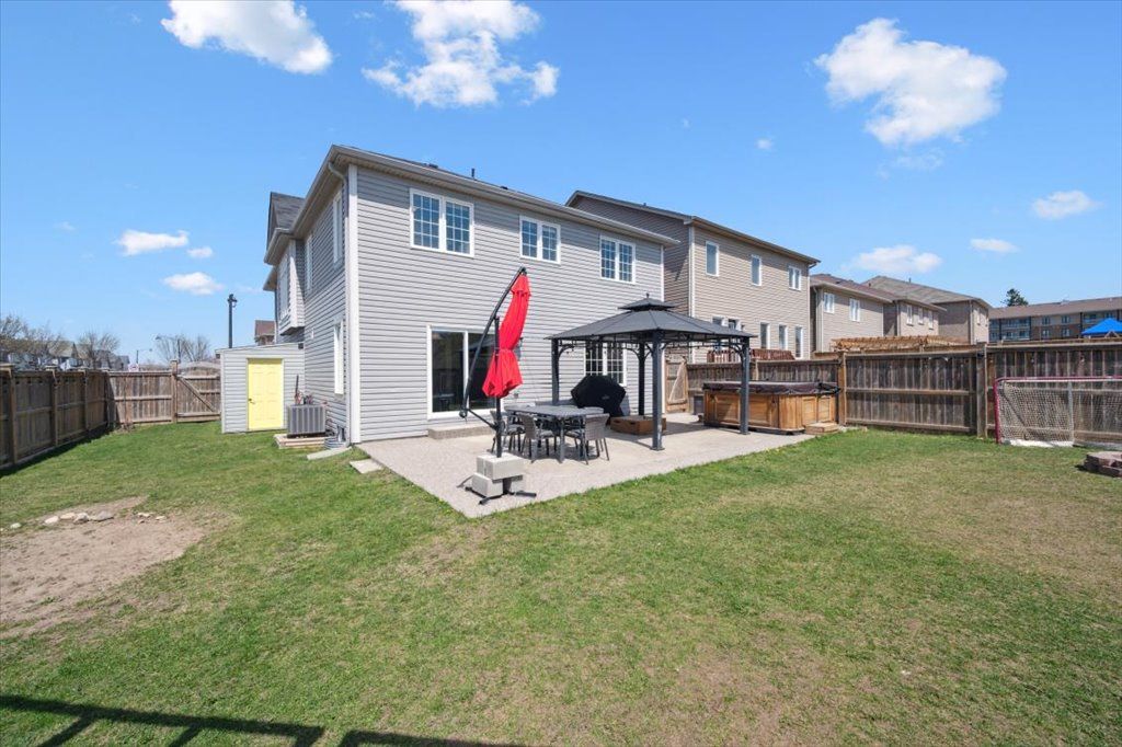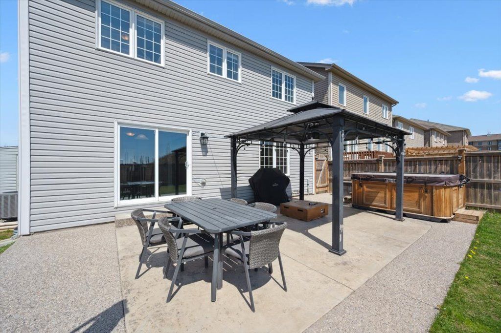 Welcome to this beautifully maintained, 2,248 square feet modern home nestled in a fantastic family-friendly Breslau neighbourhood. Just steps from St. Boniface Elementary and within walking distance to Breslau Public School, and just minutes to both Kitchener and Guelph, this location is ideal for growing families. Enjoy easy access to the community centre, nearby parks, and sports fields all just a block away.This home offers 4 spacious second-level bedrooms, as well as a sun-filled bonus room, and renovated upper-level bathrooms. The main floor features laundry, a bright open layout, and a sleek modern design throughout. The fully finished basement features a wet bar and built in storage and shelving, and an additional bedroom/office, adding additional versatile living space, bringing the total to over 3100 square feet of finished living area. Enjoy a well-equipped kitchen with new stainless steel appliances (range, fridge, OTR microwave, and dishwasher all purchased in July 2024). The backyard is perfect for entertaining with a large concrete patio, a swing set, gazebo, and natural gas BBQ hookup. A custom-built shed on a concrete pad adds convenient storage. A 2021 Arctic Spa saltwater hot tub can be included or excluded at the buyer's preference. Don't miss your chance to own this move-in-ready home in one of Breslau's most desirable neighbourhoods!