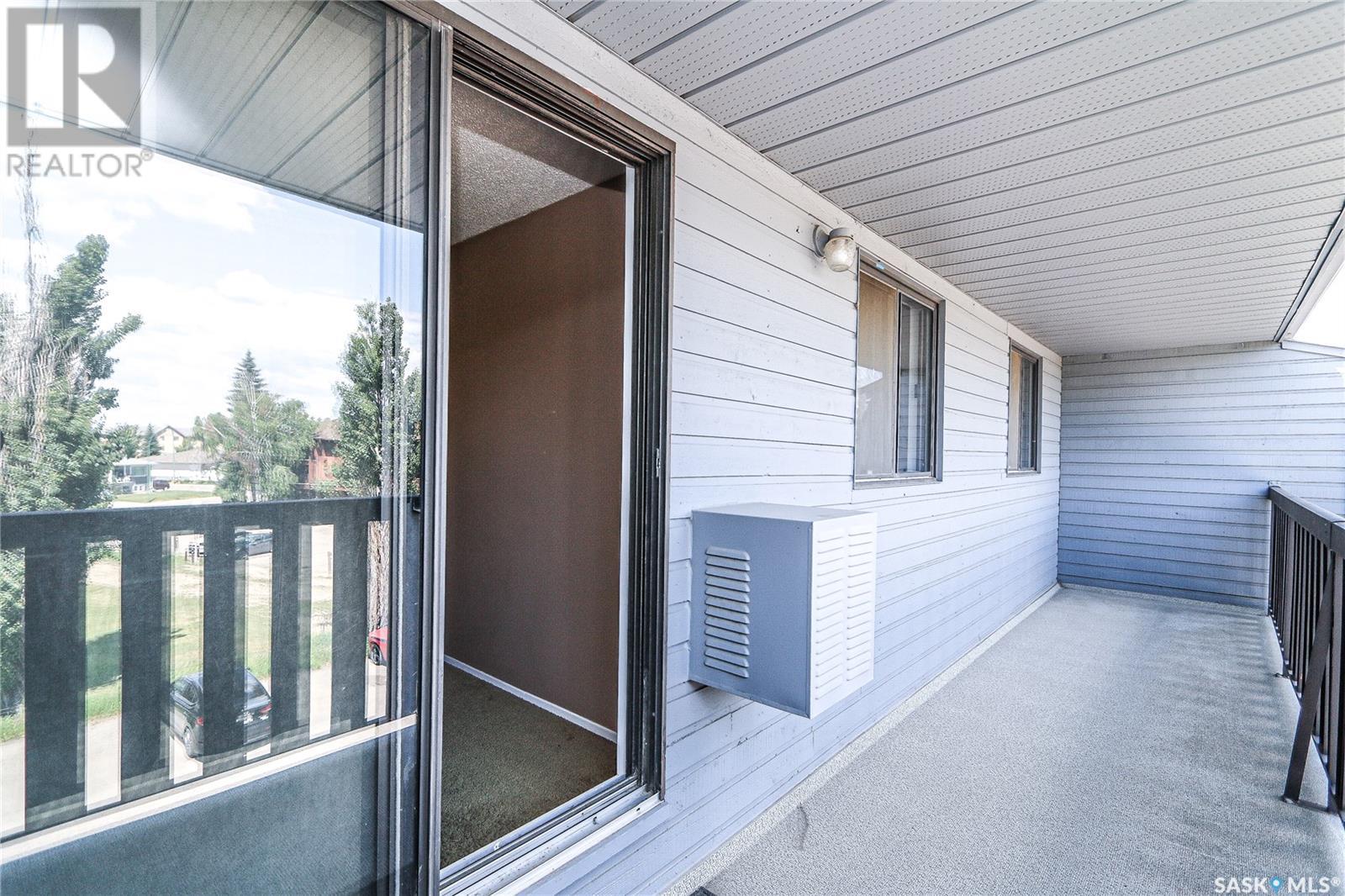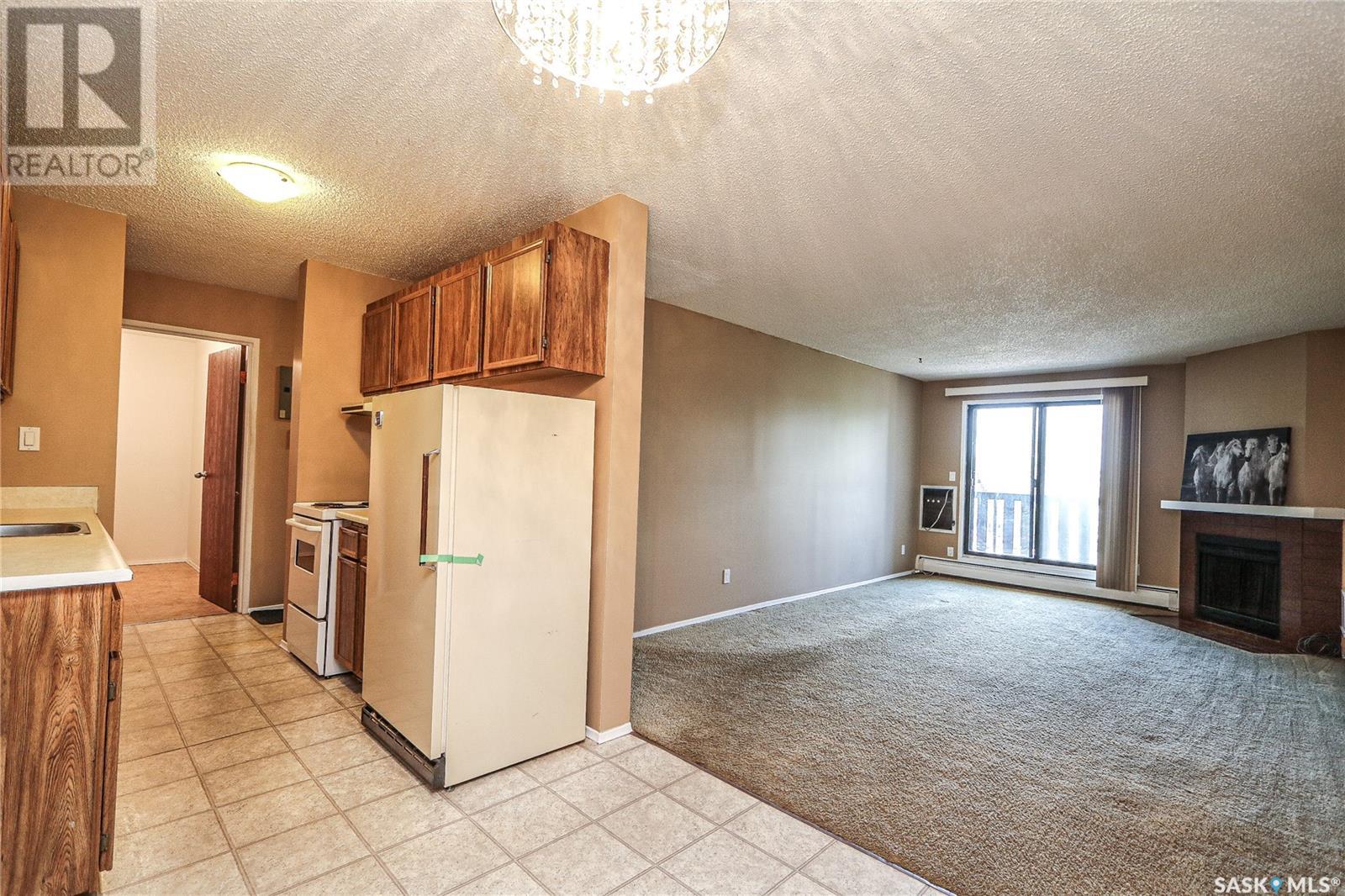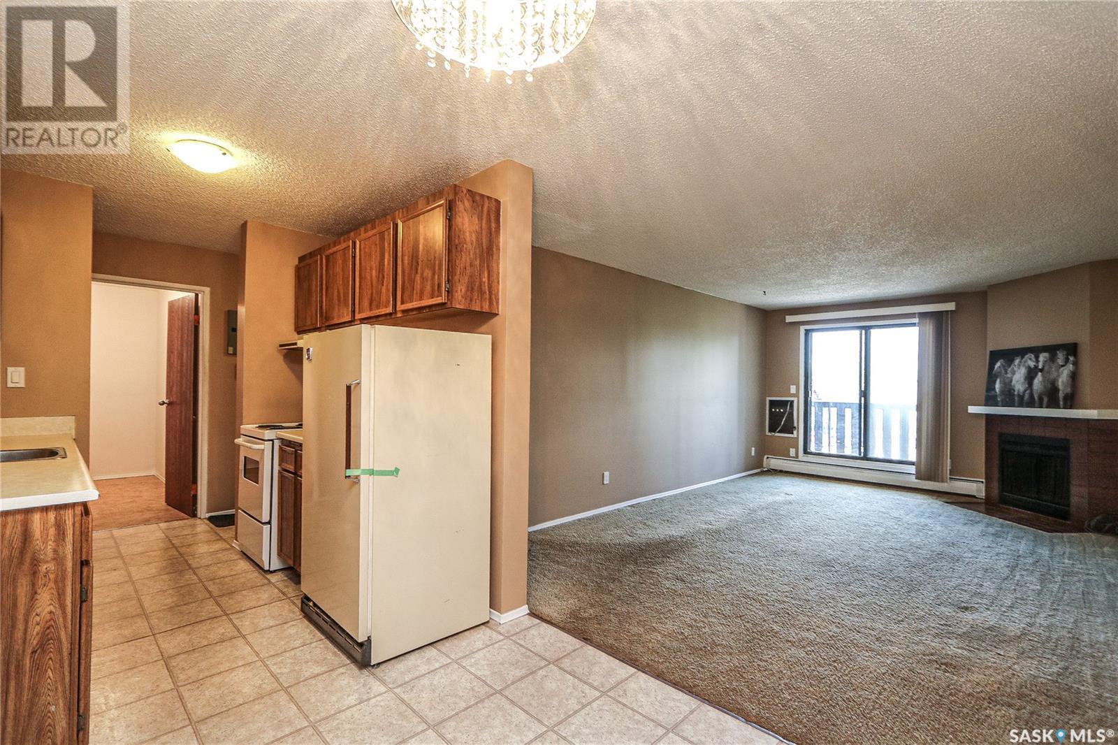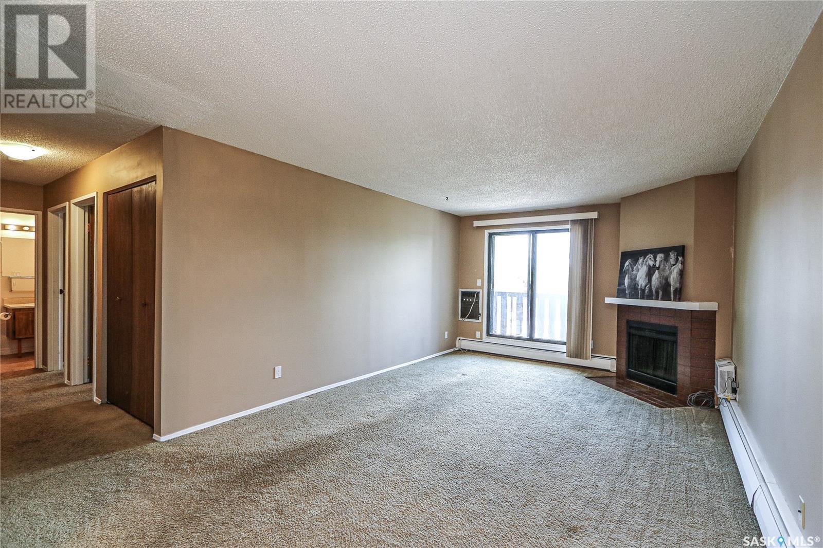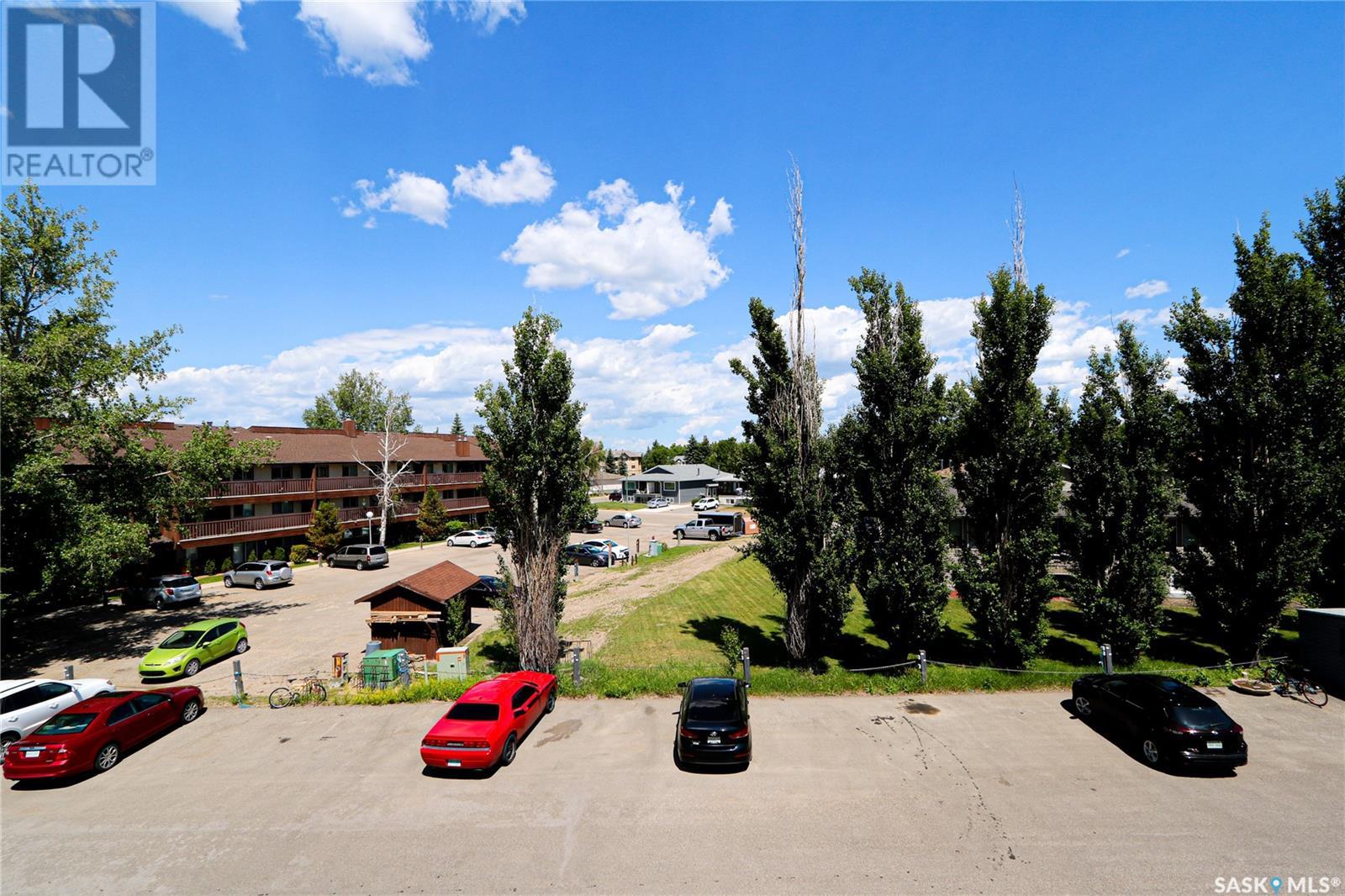 It's all about location. This 2 bedroom 3rd Floor condo with a massive north facing balcony will be the perfect place to hang this summer. If your not entertaining friends in your condo, slip on your shoes and walk 10 minutes to one of the following: Mr.Mike, Browns, Star Bucks, Mano's just to name a few. If you are student or have a child attending Parkland College, this location will get them within a 10 minute walk. Inside the condo you will find a smart floor plan that work really well. There is a large storage room that could potentially be turned into ensuite laundry. The kitchen functions well and with the dining space close by your company will feel part of your cooking experience. The living room features a wood burning fireplace and double patio doors to a large covered balcony. The bedrooms are both good in size with large closets. If you are looking for an affordable living arrangement, come and make this your home. (id:22211)