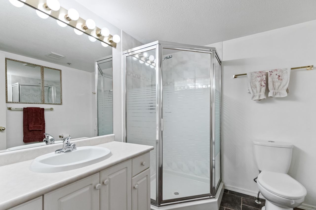 Welcome to this spacious, clean 2 FULL bedroom and 2 FULL bath condo in Stephanie Place. The bright kitchen has room for table & chairs. Living room features a gas fireplace plus a door to the covered balcony. The PRIMARY bedroom also has access to the balcony and great WALK IN CLOSET, plus its own lovely ENSUITE. Full size laundry room. GAS & HOT WATER are included in maintenance fees. Dishwasher, Microwave with fan & Washer replaced in last couple of years. The condo is in a great location close to UFV, Abbotsford Regional Hospital and Cancer Clinic, Abbotsford Events Centre, shopping and restaurants. Walking distance to the Salton Pedestrian/ Cycle Bridge over Highway 1. NO AGE RESTRICTIONS. PETS ARE NOT PERMITTED.