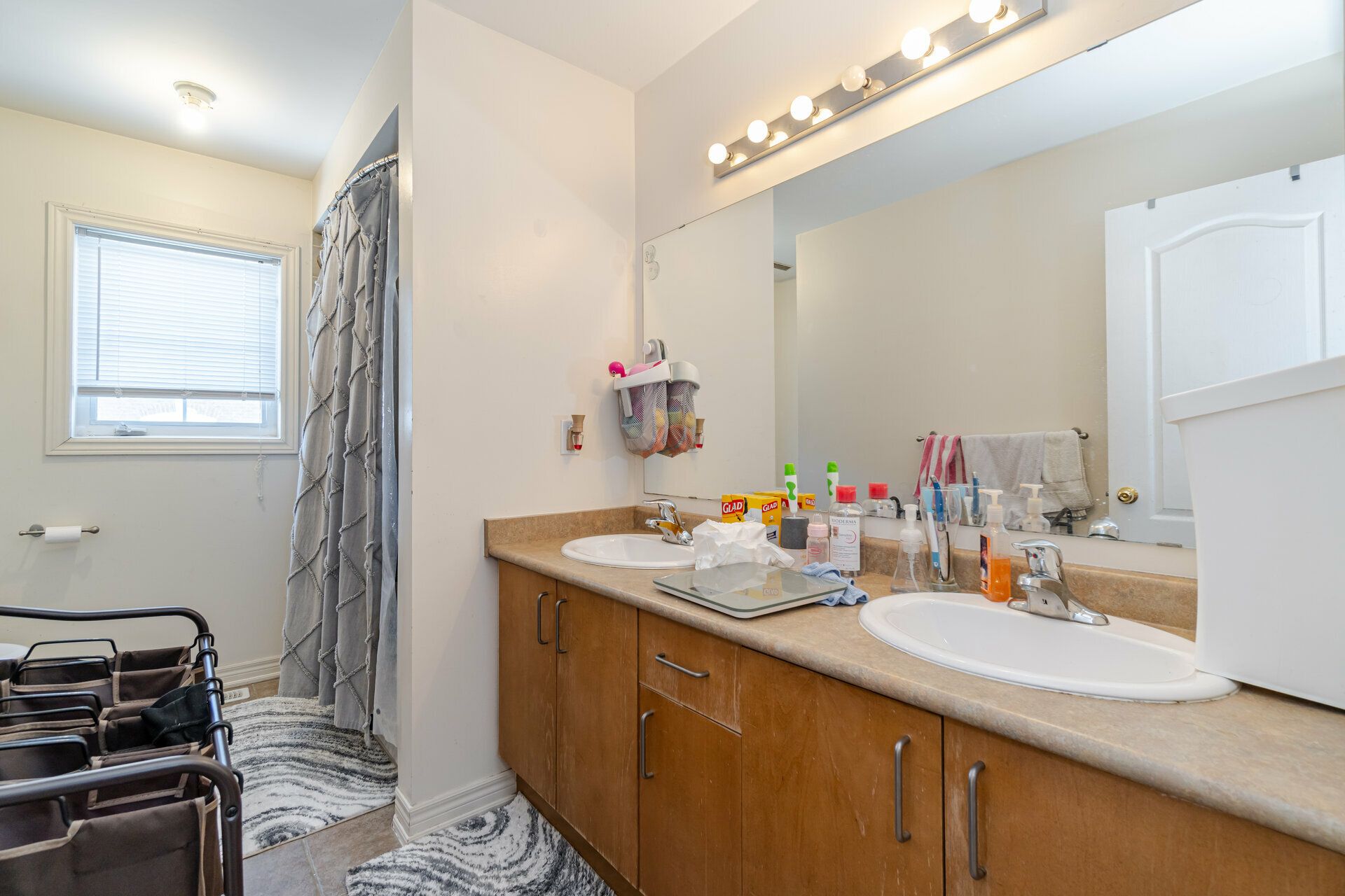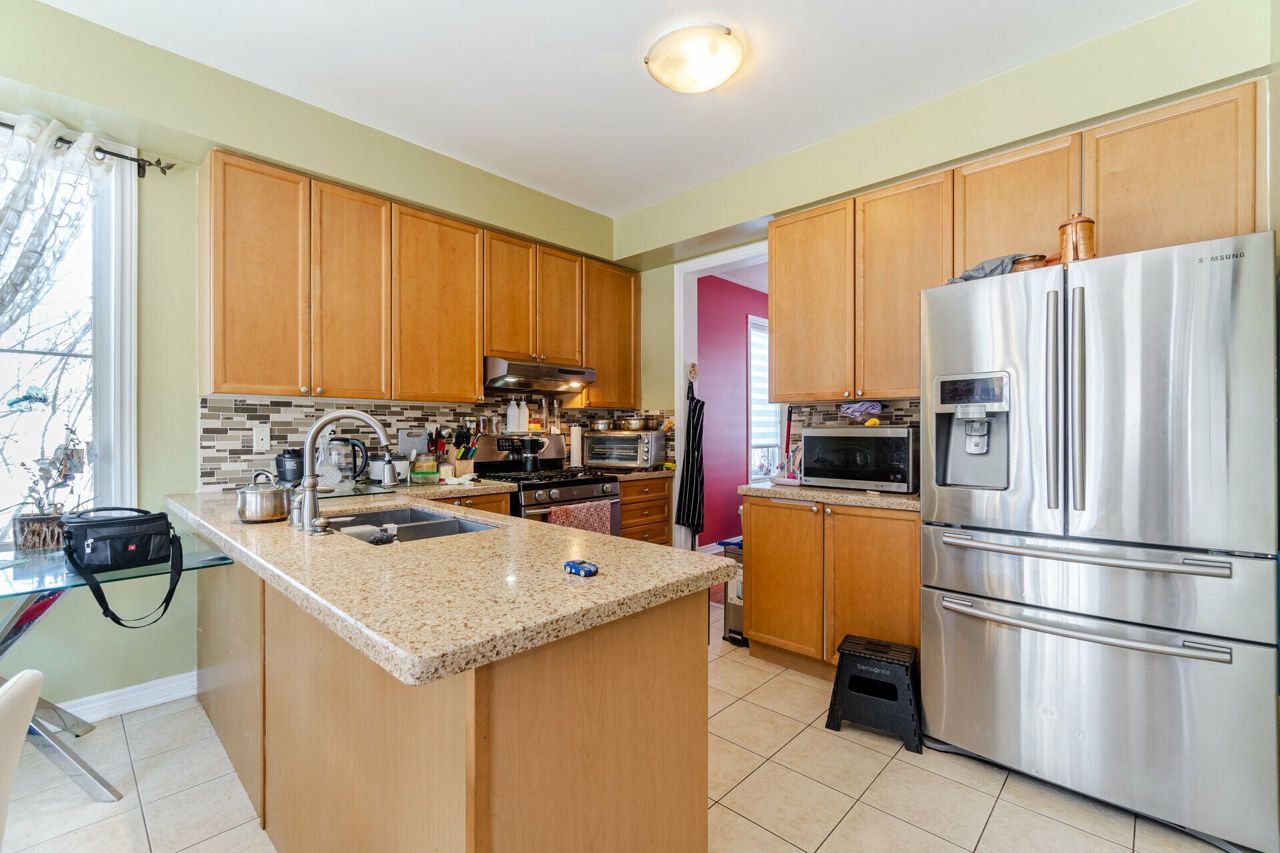 Quite family friendly neighborhood, fabulous curb appeal on this bright home with 4 plus 3 nicely sized bedrooms, primary bedroom has soaker tub and separate glass shower with his and her sinks, functional layout, oak staircase, 1 gas fireplaces, laundry room is on 2nd floor, Entrance from garage to home, Legal/Separate entrance finished basement with recreation room and 3 more rooms, Full garage door, This property is fully fenced in with a large deck great for backyard entertaining, Backyard Widens to 73 feet2 S/S Stove, 2 S/S Fridge, 2 S/S Hood Fan Separate Washer/Dryer in basement. Separate entrance. N-11 Available. 5% Dep. Legal BasmApp registered with the city as a 2nd Dwelling