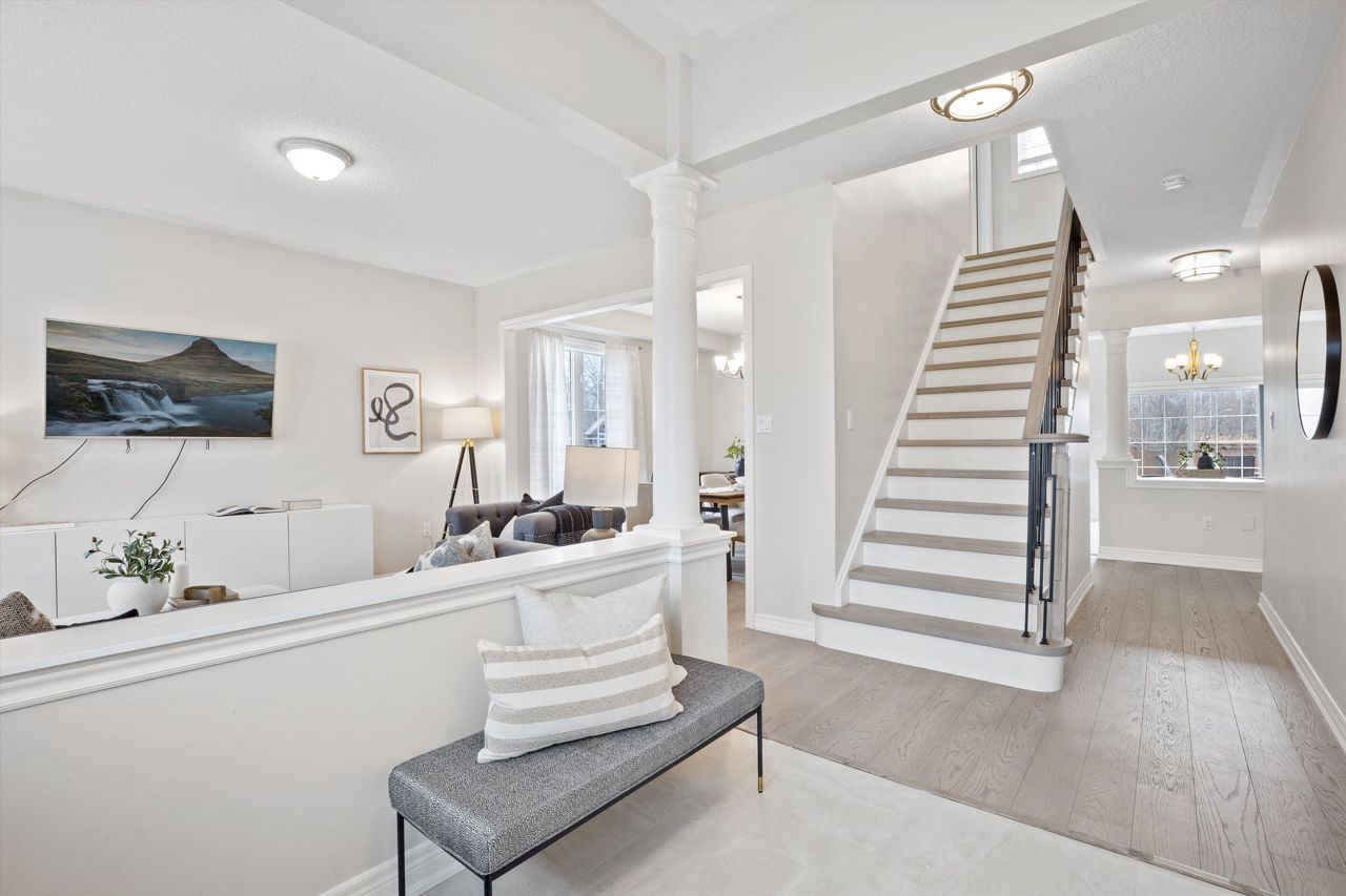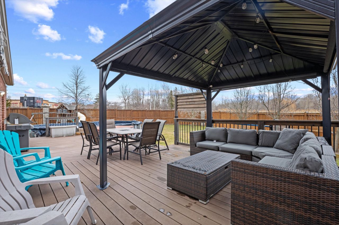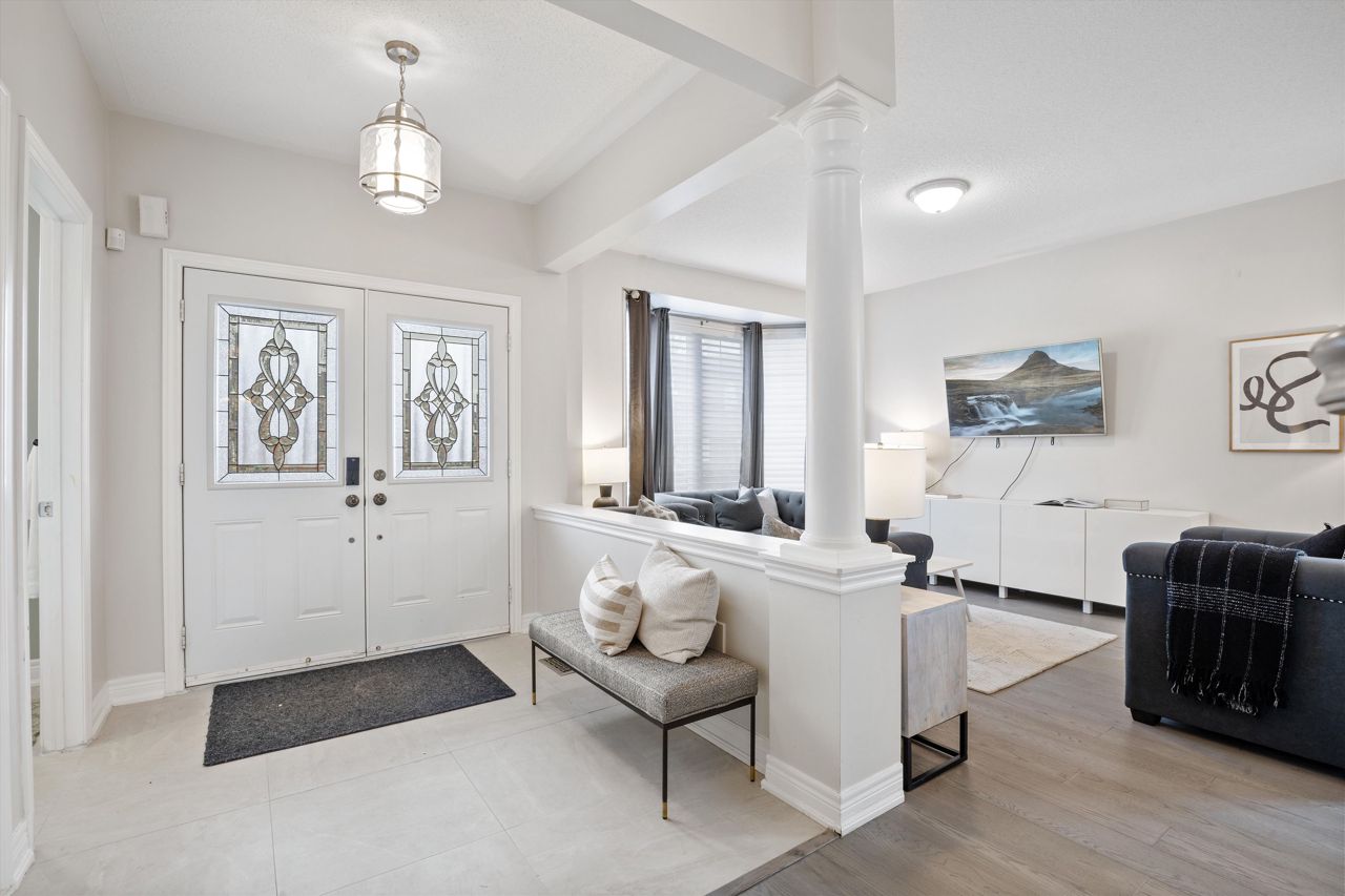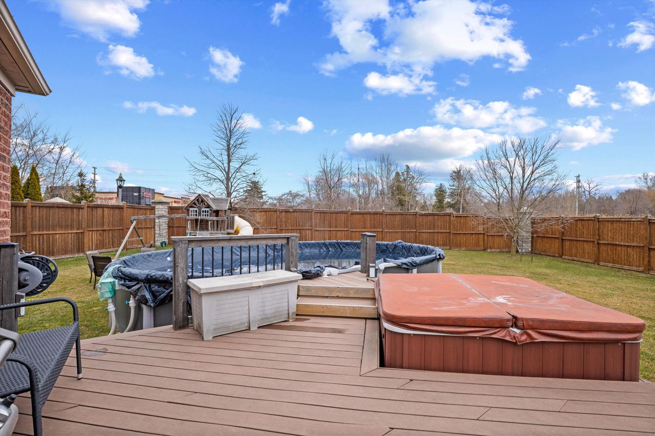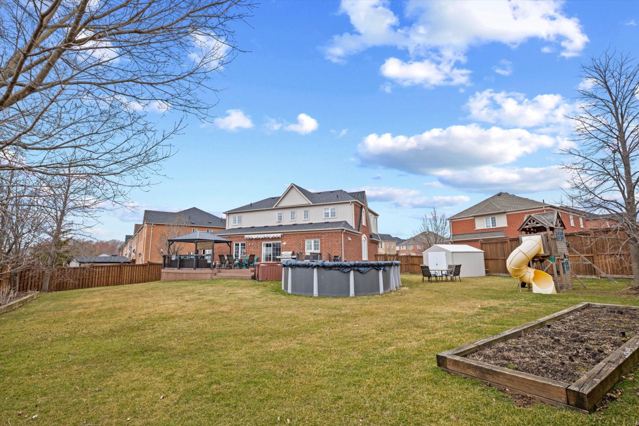 Welcome to 46 Peacock Crescent, nestled on a quiet crescent in Ajaxs sought-after Nottingham community. This 4+2 bed, 5-bath home blends comfort and function across 3,169+ sq ft above grade with a fully finished in-law suite below. With new flooring, staircase, spindles, quartz counters, upgraded cabinetry, fresh paint, and modern tile throughout, the home has been tastefully updated and move-in ready.Step into a grand foyer with walk-in closet, formal living/dining areas with hardwood floors, and a sun-filled family room featuring a gas fireplace. The updated kitchen boasts quartz counters, SS appliances, extended cabinetry, and a walkout to the entertainers backyardfully fenced with a deck, pergola, hot tub, above-ground pool, irrigation system, and two large sheds.Upstairs, the spacious primary offers a 5-pc ensuite and W/I closet. Three additional bedrooms include hardwood floors, generous closets, and ensuite/shared bath access. Main floor laundry with garage access, plus bonus laundry in the basement.The finished basement offers flexibility for extended family, featuring two bedrooms, a full bath, full kitchen with quartz counters, SS appliances, soft-close cabinets, and a large rec space with pot lights. Ideal for guests, multigenerational living, or future rental income.
