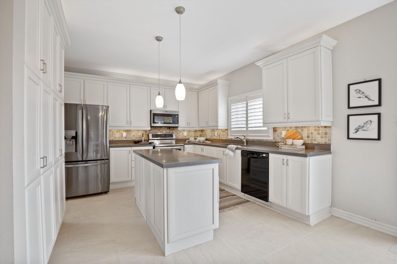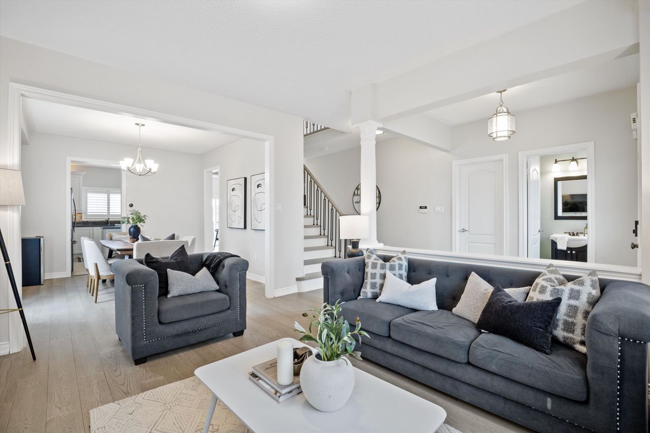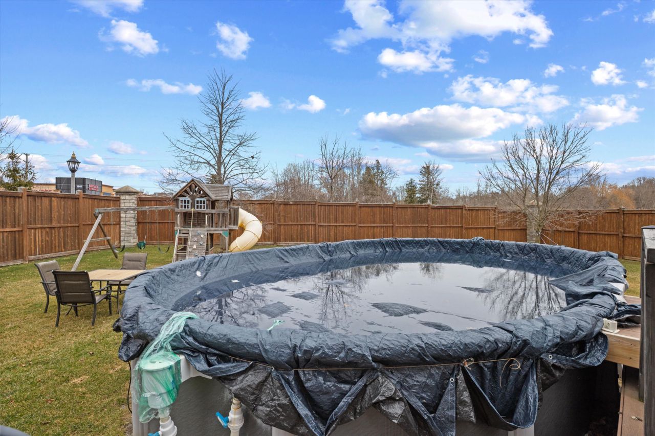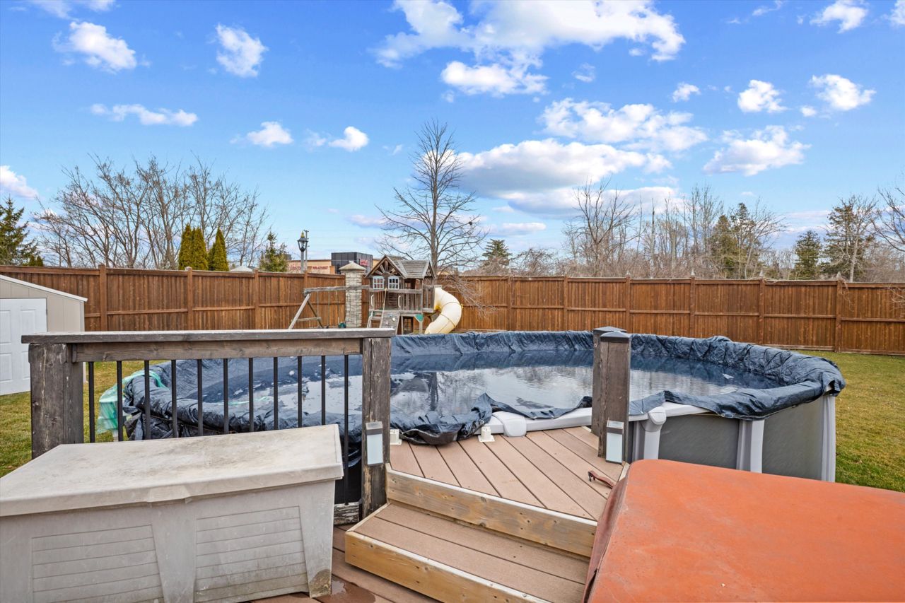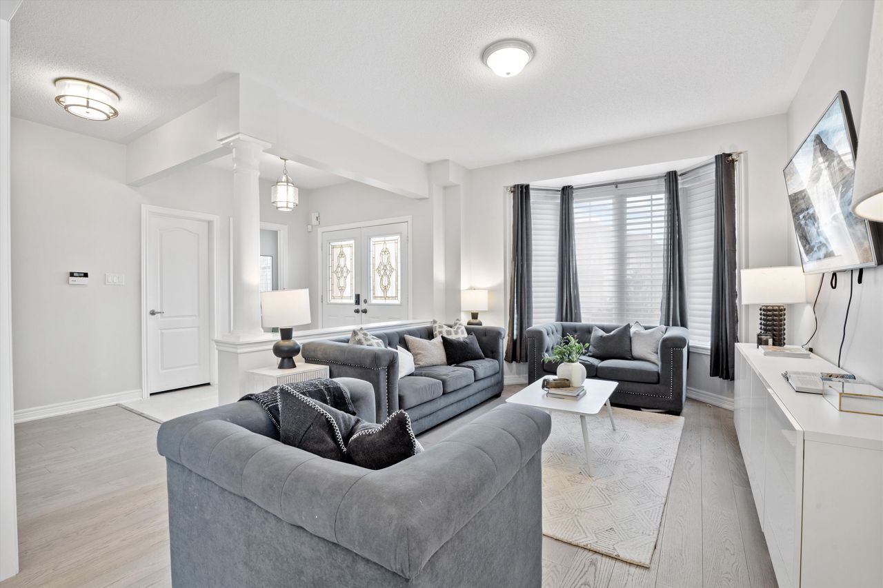 Welcome to 46 Peacock Crescent, nestled on a quiet crescent in Ajaxs sought-after Nottingham community. This 4+2 bed, 5-bath home blends comfort and function across 3,169+ sq ft above grade with a fully finished in-law suite below. With new flooring, staircase, spindles, quartz counters, upgraded cabinetry, fresh paint, and modern tile throughout, the home has been tastefully updated and move-in ready.Step into a grand foyer with walk-in closet, formal living/dining areas with hardwood floors, and a sun-filled family room featuring a gas fireplace. The updated kitchen boasts quartz counters, SS appliances, extended cabinetry, and a walkout to the entertainers backyardfully fenced with a deck, pergola, hot tub, above-ground pool, irrigation system, and two large sheds.Upstairs, the spacious primary offers a 5-pc ensuite and W/I closet. Three additional bedrooms include hardwood floors, generous closets, and ensuite/shared bath access. Main floor laundry with garage access, plus bonus laundry in the basement.The finished basement offers flexibility for extended family, featuring two bedrooms, a full bath, full kitchen with quartz counters, SS appliances, soft-close cabinets, and a large rec space with pot lights. Ideal for guests, multigenerational living, or future rental income.