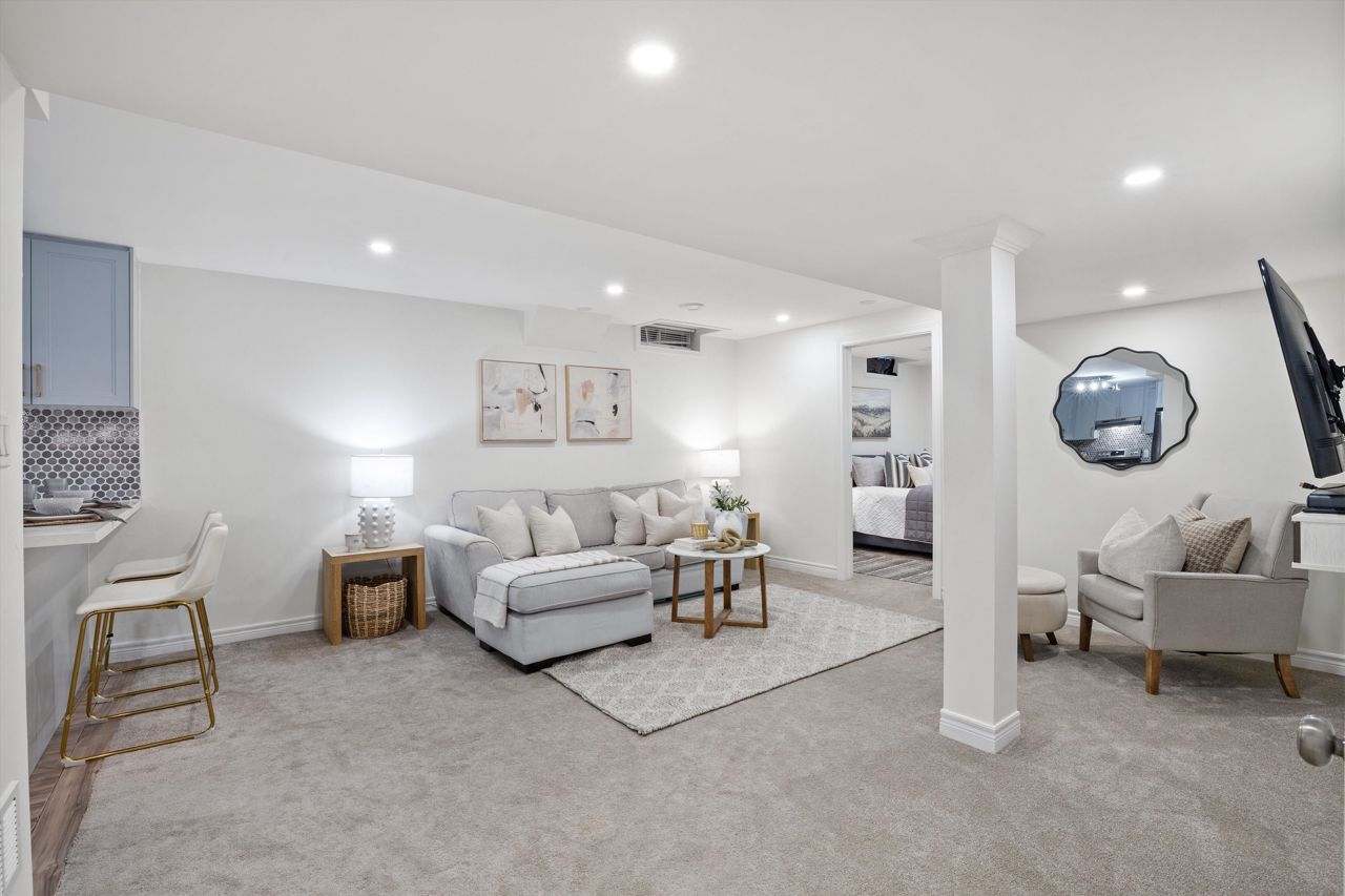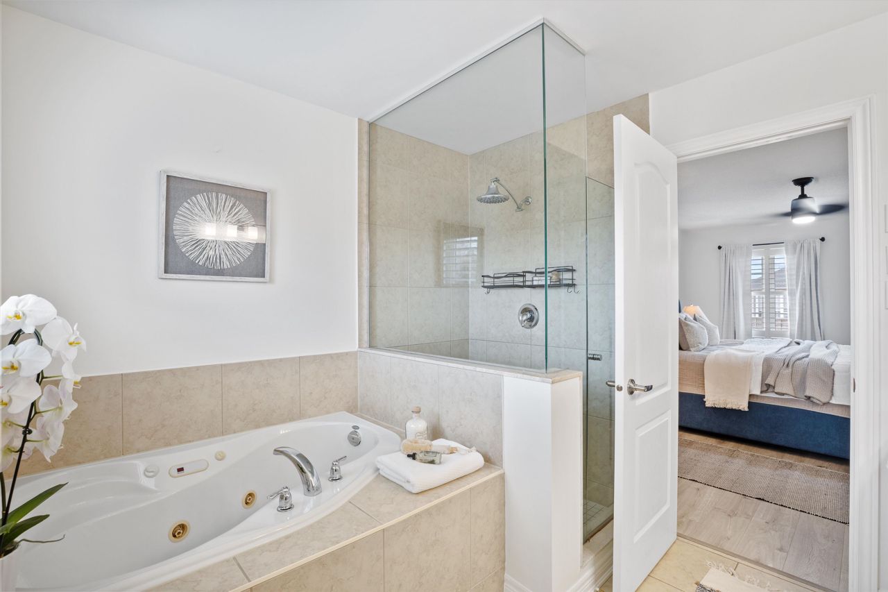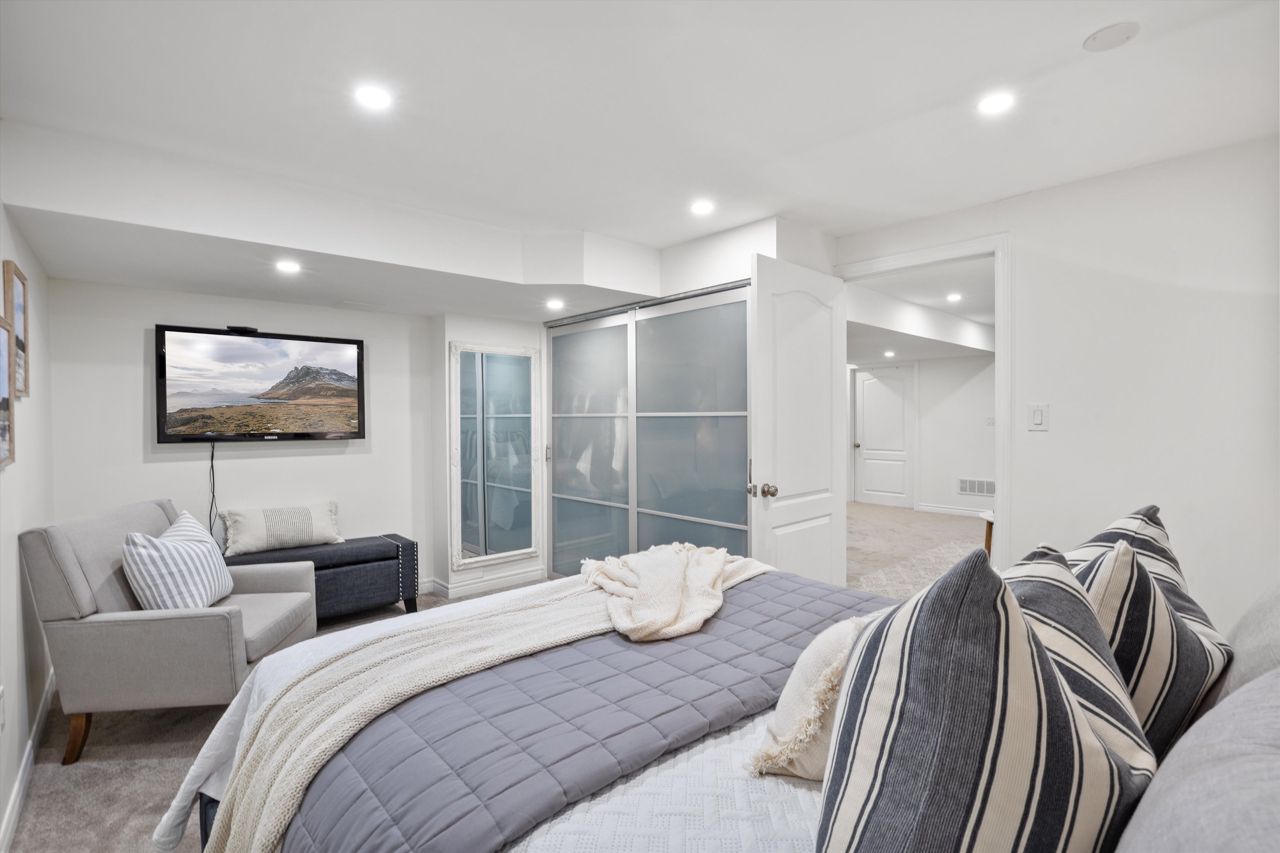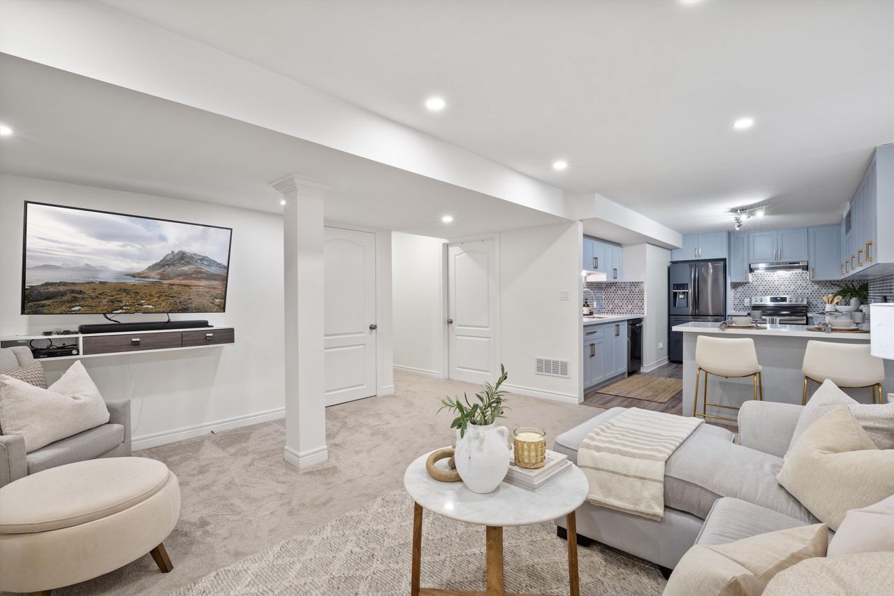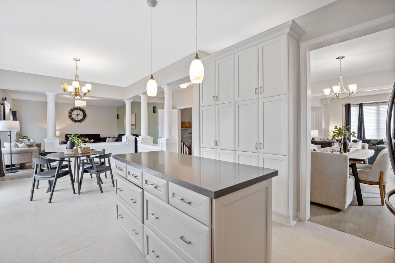 Welcome to 46 Peacock Crescent, nestled on a quiet crescent in Ajaxs sought-after Nottingham community. This 4+2 bed, 5-bath home blends comfort and function across 3,169+ sq ft above grade with a fully finished in-law suite below. With new flooring, staircase, spindles, quartz counters, upgraded cabinetry, fresh paint, and modern tile throughout, the home has been tastefully updated and move-in ready.Step into a grand foyer with walk-in closet, formal living/dining areas with hardwood floors, and a sun-filled family room featuring a gas fireplace. The updated kitchen boasts quartz counters, SS appliances, extended cabinetry, and a walkout to the entertainers backyardfully fenced with a deck, pergola, hot tub, above-ground pool, irrigation system, and two large sheds.Upstairs, the spacious primary offers a 5-pc ensuite and W/I closet. Three additional bedrooms include hardwood floors, generous closets, and ensuite/shared bath access. Main floor laundry with garage access, plus bonus laundry in the basement.The finished basement offers flexibility for extended family, featuring two bedrooms, a full bath, full kitchen with quartz counters, SS appliances, soft-close cabinets, and a large rec space with pot lights. Ideal for guests, multigenerational living, or future rental income.
