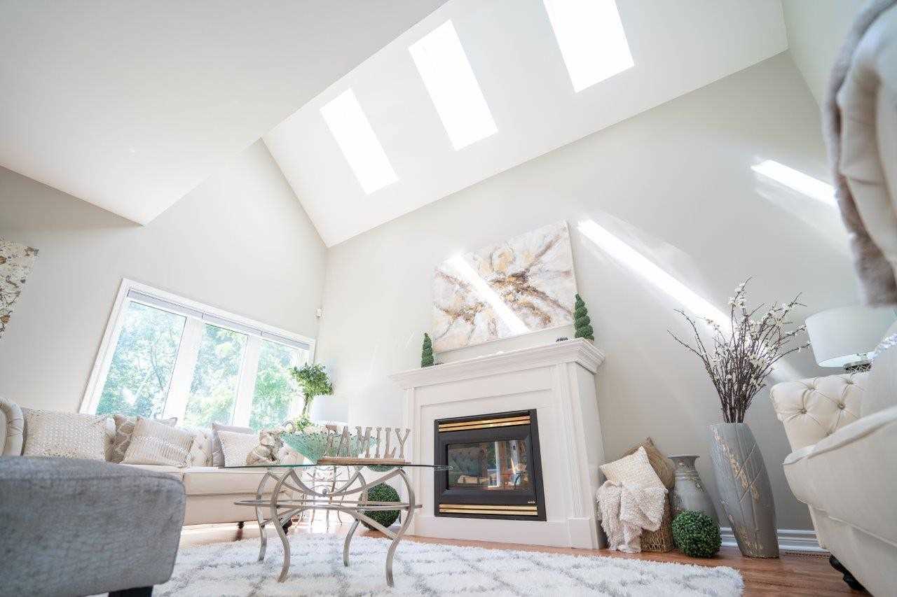 Hardwood Floor Gas Fireplace Skylight