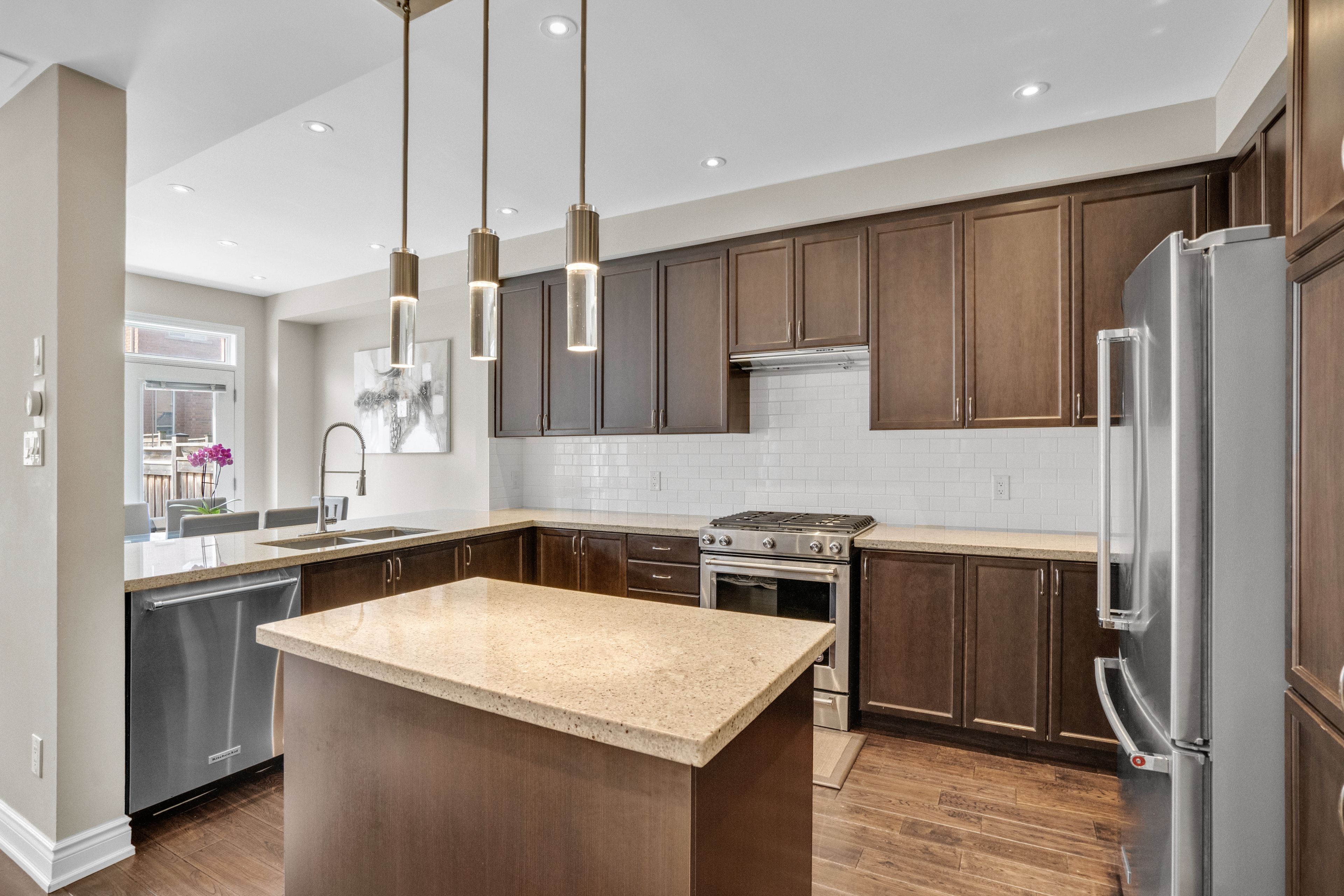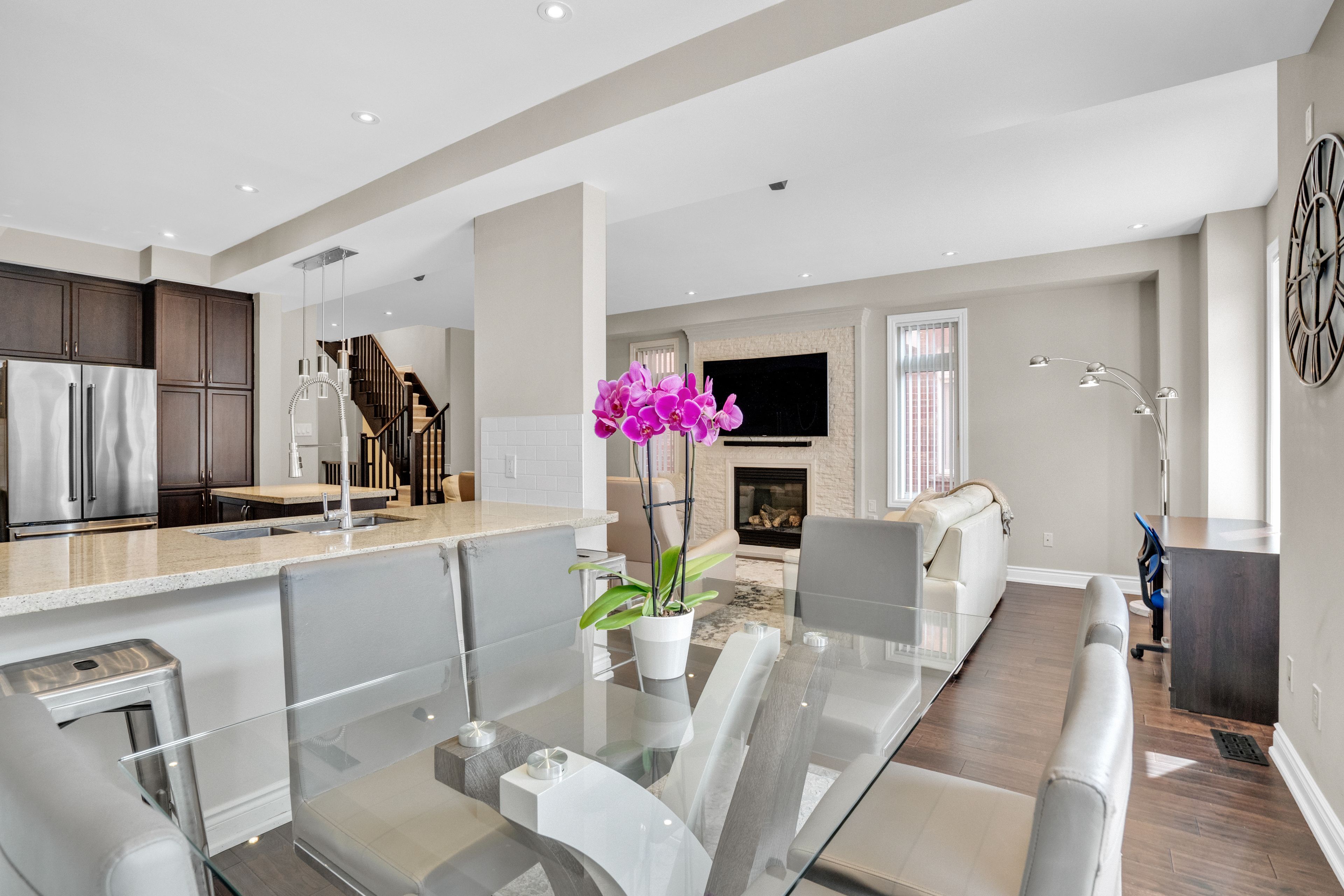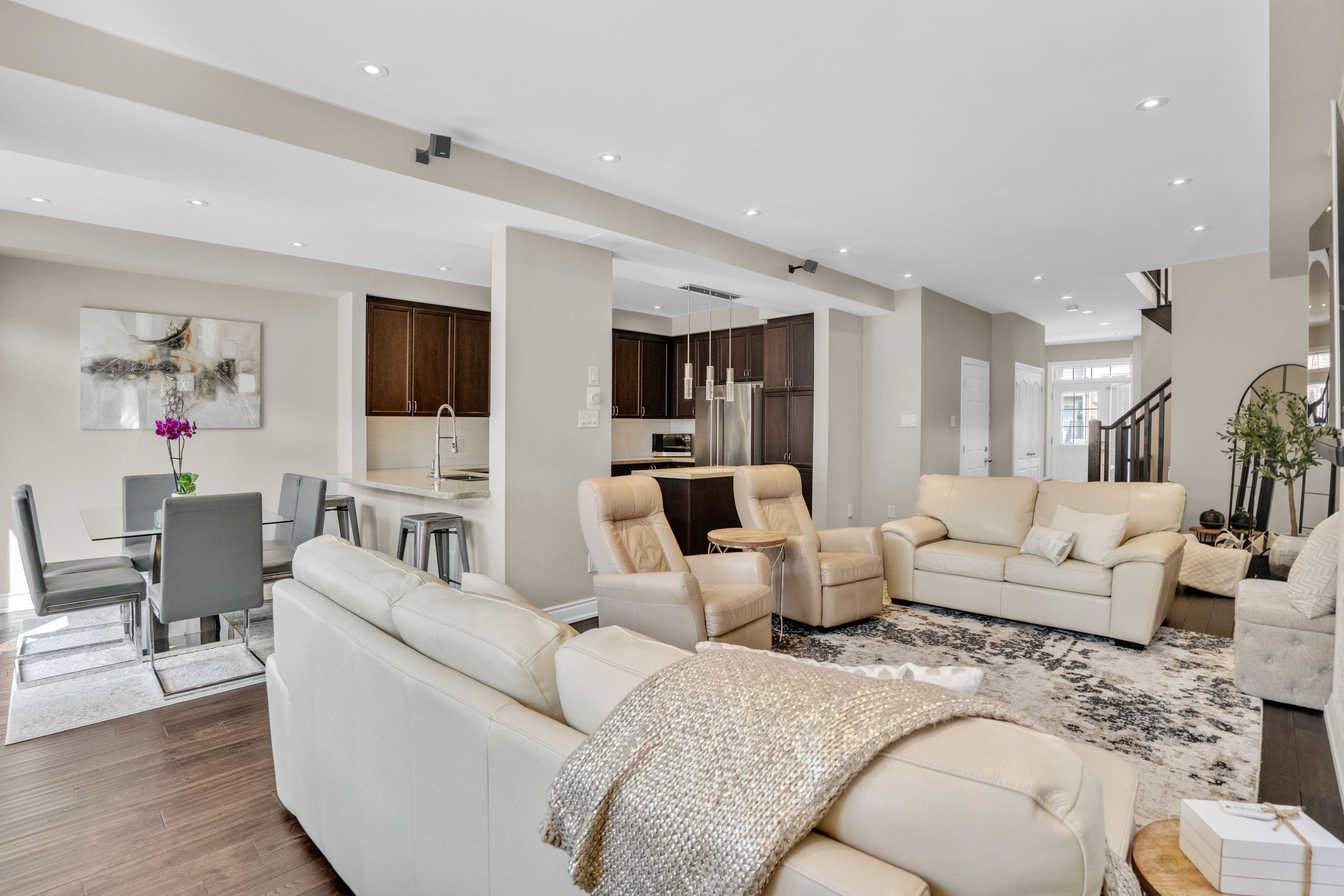歡迎來到奧羅拉最受歡迎的社區之一!164 Lewis Honey Drive坐落於頂尖學校、公園和各類便利設施僅幾步之遙的位置,這棟經過精美升級的三臥四衛半獨立屋完美融合了舒適感、現代奢華與家庭實用性。溫馨宜人的室內空間鋪設全屋硬木地板,9英尺平滑天花板,陽光充盈的開放式布局,以及配備花崗岩台面、不鏽鋼電器並直通定製石砌露台與私密後院的廚師級廚房。二樓,寬敞的主臥套房是您的靜謐天地——全新裝修配備口袋門、台下雙槽洗手盆、升級瓷磚與新梳妝台。次臥配有超大步入式衣櫥,第三臥室采用雙門衣櫃設計,同層還設有罕見的超大門廳亞麻壁櫥(即便在大戶型中也屬難得)。地下室全精裝並配有現代三件套浴室及步入式淋浴間,二樓升級瓷磚打造的洗衣房額外提供置物架與操作台面。配備二級電動汽車充電器、180安培電表箱及四車位停車空間,真正滿足現代生活需求。這棟精心維護與定製化的住宅,將帶給您夢寐以求的安心感與業主自豪感。切勿錯過在Lewis Honey開啟品質生活的機會——立即預約您的私人看房吧!