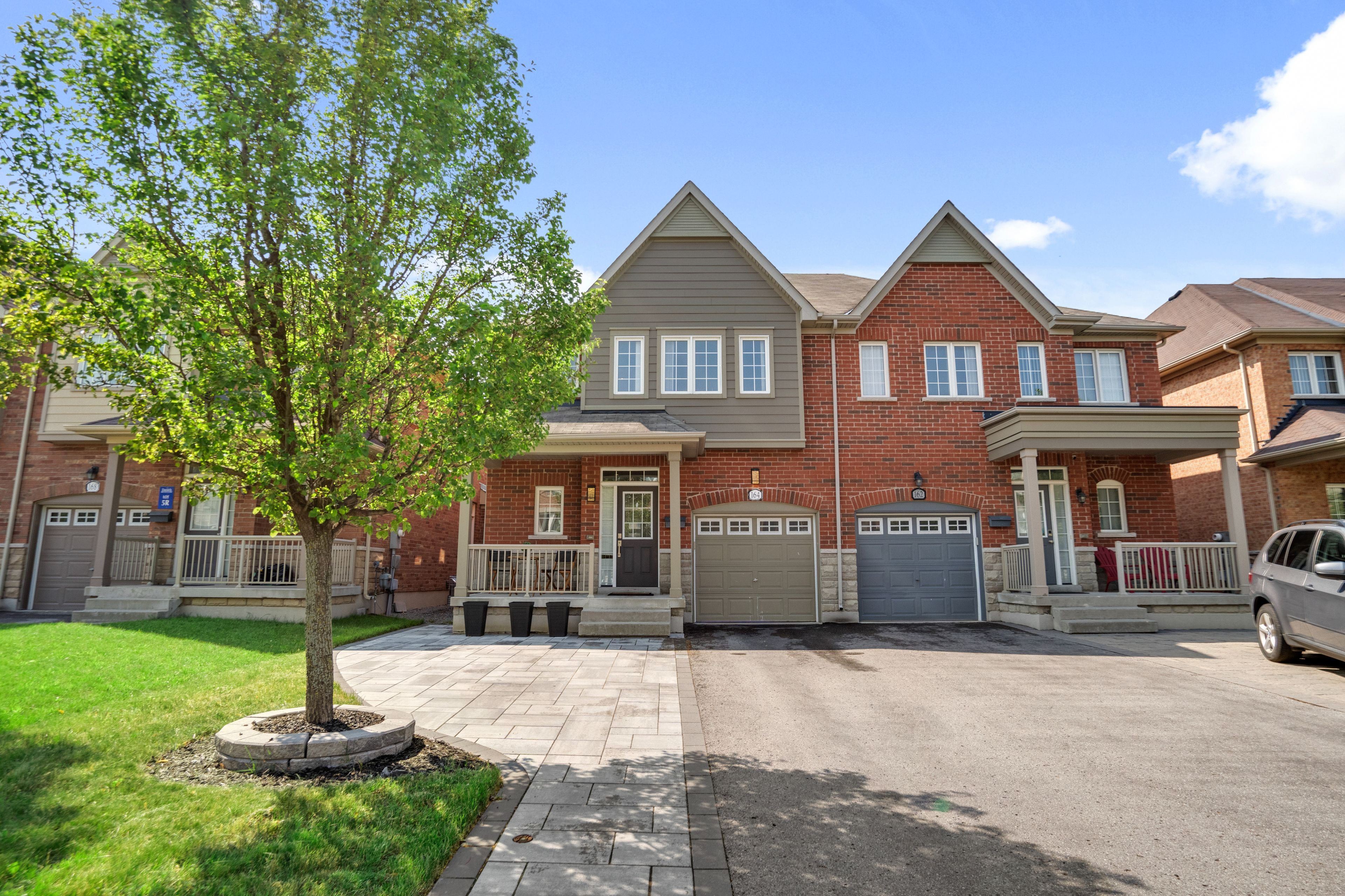 Welcome to one of Auroras most sought-after communities! Nestled just steps from top-rated schools, parks, and every major convenience, 164 Lewis Honey Drive is a beautifully upgraded 3-bedroom, 4-bath semi-detached home that blends comfort, modern luxury, and family functionality. This warm and welcoming home features hardwood floors throughout, 9-ft smooth ceilings, a sun-filled open concept layout, and a chef-inspired kitchen with granite countertops, stainless steel appliances, and a walkout to your custom stone patio and private backyard. Upstairs, the spacious primary suite is your sanctuary fully renovated with a pocket door, double under-mount sinks, upgraded tile, and a new vanity. The second bedroom offers a large walk-in closet, the third includes a double-door closet, and the level features an oversized hallway linen closet a rare bonus even in larger homes. Enjoy the convenience of a fully finished basement with a modern 3-piece bath and walk-in shower, plus a large 2nd floor laundry room with upgraded tile, shelving, and countertop space. With a Level 2 EV charger, 180 AMP electrical panel, and 4-car parking, this home truly meets todays modern needs. Meticulously maintained and customized with care, this home offers the peace of mind and pride of ownership you've been waiting for. Dont miss the chance to experience the elevated lifestyle that awaits you at Lewis Honey book your private tour today!