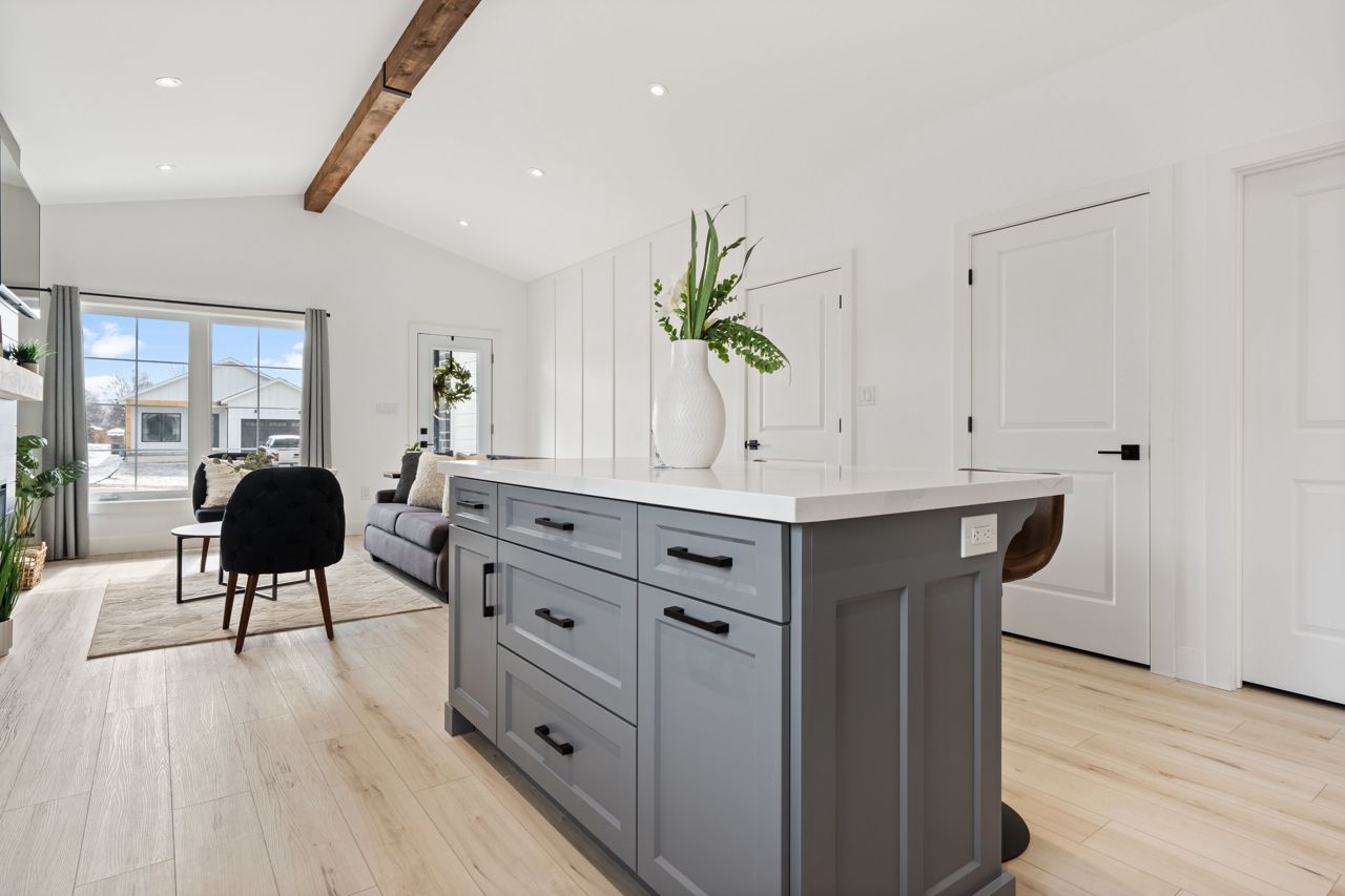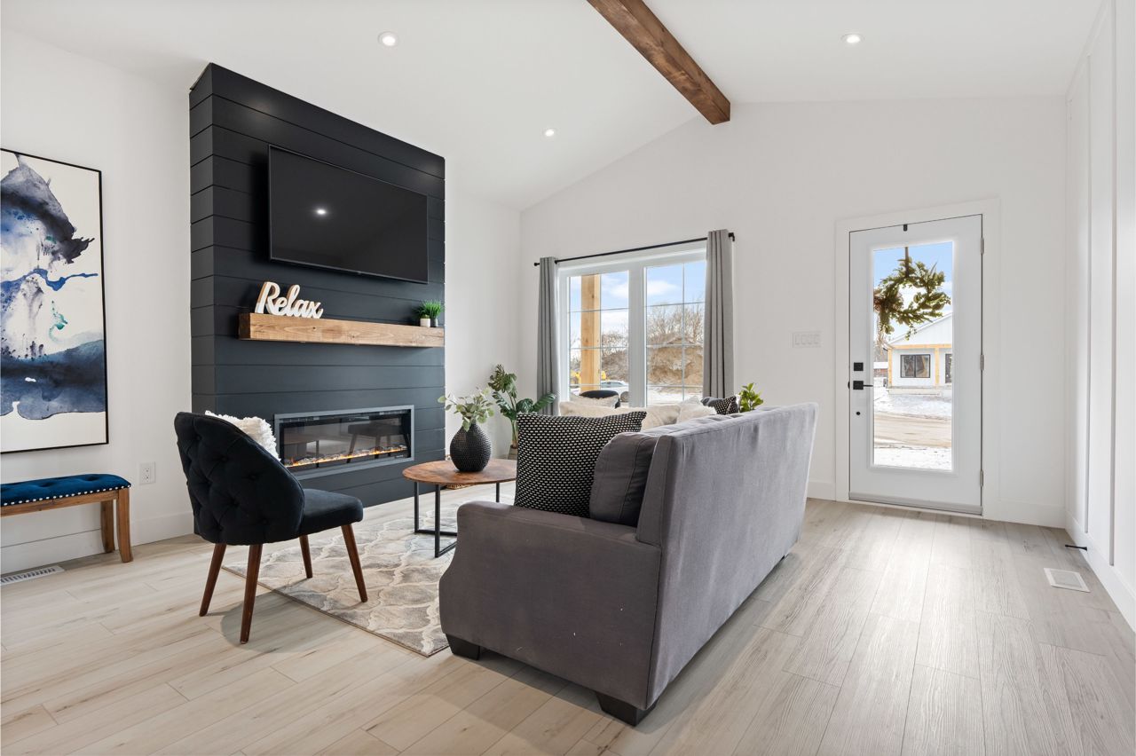 Welcome home to 7 MacNeil Court, a white board and batten hardy board home with an accenting stone facade featuring black, and blonde oak accents that carry from the exterior to the interior. This 3 Bedroom, two-full bathroom home hosts an open concept living room that is elevated by the custom accent walls to bring life and character into this barrier free space. The living room spills into the kitchen as vaulted ceilings raise overhead as the iron shiplap fireplace and live edge mantle pair perfectly with the expansive exposed beam that runs the breadth of this home. Stainless steel appliances, matte black finishes and a matching shiplap accent complete the space with cohesive precision. Three generous bedrooms flank the rear of the house including the primary suite complete with ensuite and impressive walk-in closet. Located just minutes from Port Burwell's Summer hub, a short walk to beautiful vistas, and a quick trip to Tillsonburg.