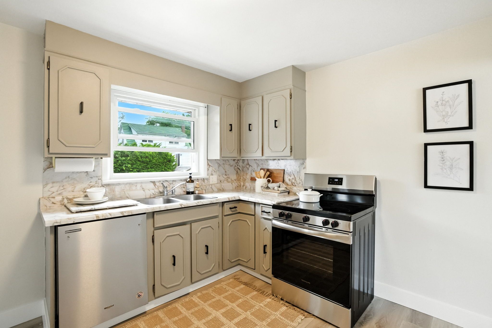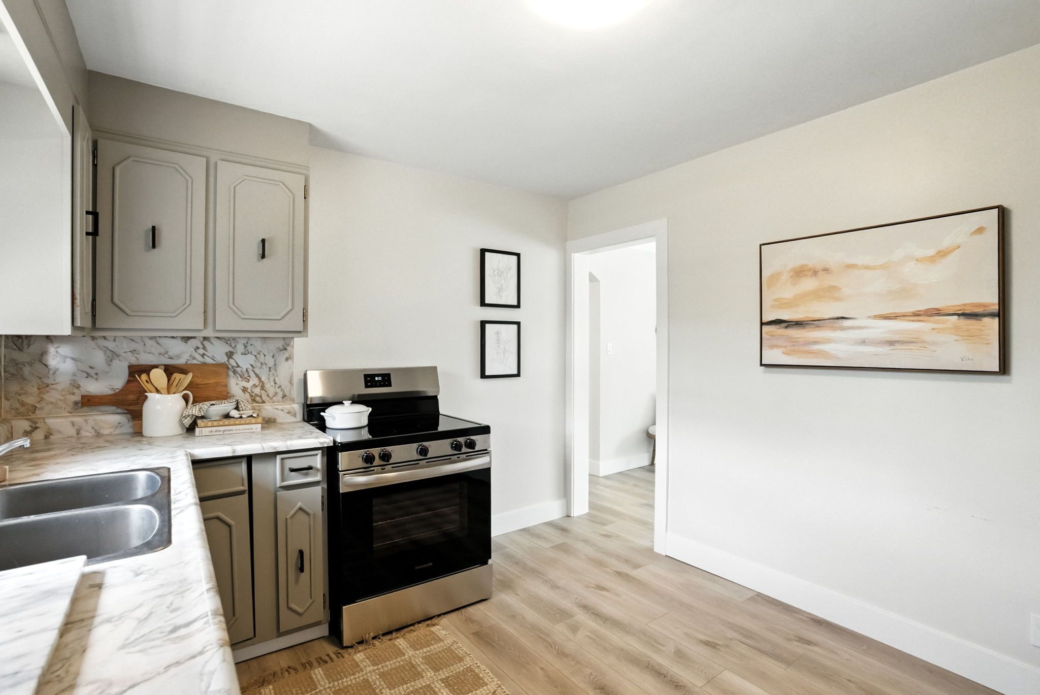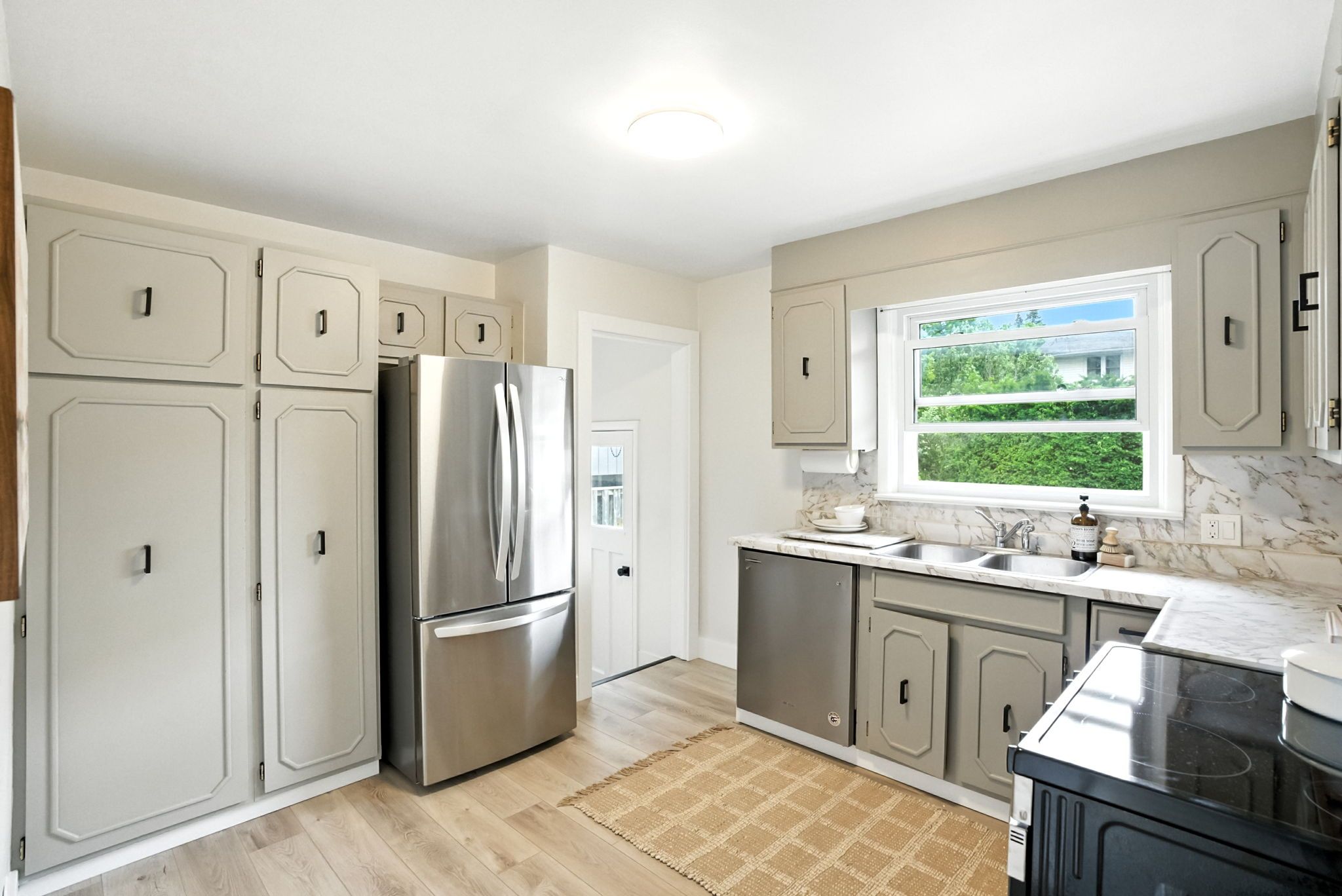 【拎包入住主層】全屋乙烯基地板(2025年新鋪),暖調中性色牆面(2025年新漆),全新踢腳線及裝飾線條(2025年),三間寬敞臥室配新衣櫃門(2025年),三件套浴室。廚房配備充足櫥櫃儲物空間,較新不鏽鋼電器組——全新烤箱(2025年)、冰箱(2024年)、洗碗機,並直通私密後院。