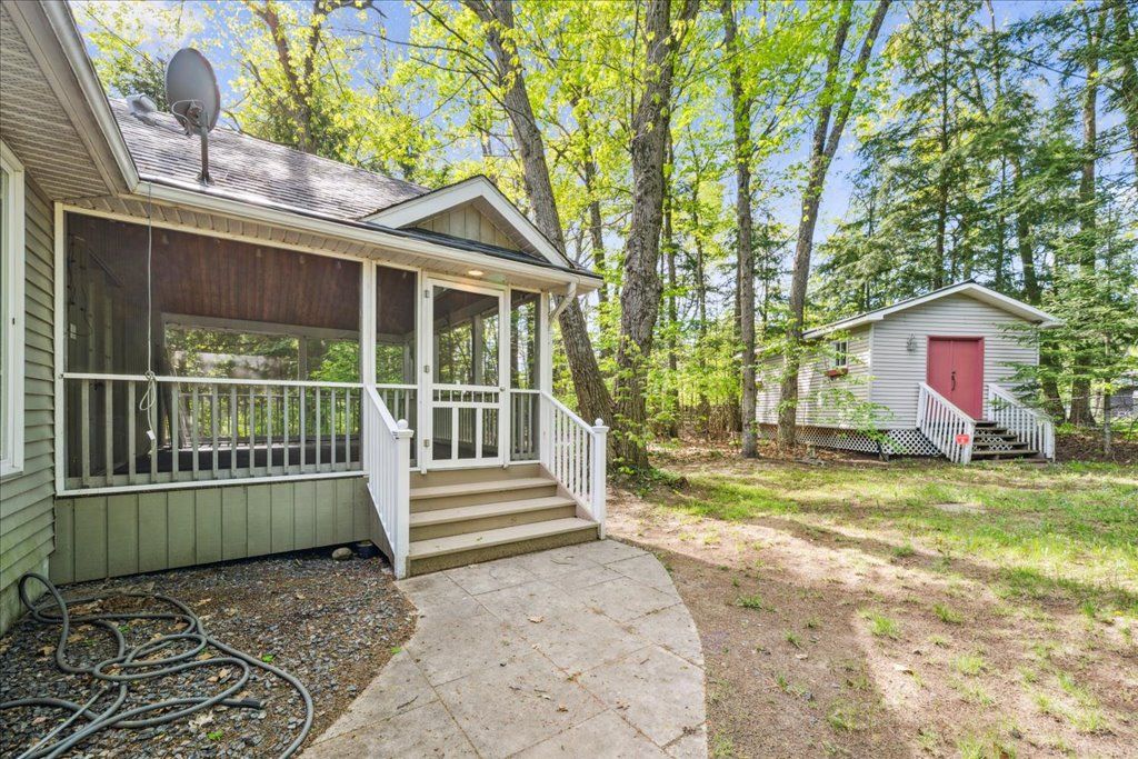 One-Level Living! Experience the charm of this custom-designed true bungalow, boasting over 1,871 square feet and perfectly nestled on a beautiful, treed lot in a highly sought-after neighbourhood of Bracebridge, Muskoka.The property is well set-back from the road and boasts striking curb appeal with its attractive Board and Batten exterior, complemented by an interlocking stone driveway and a practical double car garage with convenient interior access. Additionally, there's a separate detached workshop perfect for your creative tinkering or extra storage space.This delightful home features an eat-in kitchen and a spacious open-concept living area with a gas fireplace, making it ideal for a retiring couple or a small family. One of the standout features of this home is the recently refinished wide-plank cherry hardwood flooring found throughout. Freshly painted, this home is move-in ready! The primary bedroom enjoys an ensuite, a walk-in closet, and the two other bedrooms have access a second bathroom. This home is perfectly designed for one-level living, with a convenient main floor laundry room. There is space to unwind in the expansive three-season Muskoka room or retreat to your tranquil, tree-lined backyard, your personal oasis. This home is ideally located in an established area of larger lots, near the Sportsplex, indoor pool, Rene Caisse Theatre, schools, and historic downtown Bracebridge which includes the South Muskoka Memorial Hospital. Embrace an outdoor lifestyle with easy access to an extensive network of ravine walking trails surrounding the area. We invite you to view this property soon - contact us today to explore further!