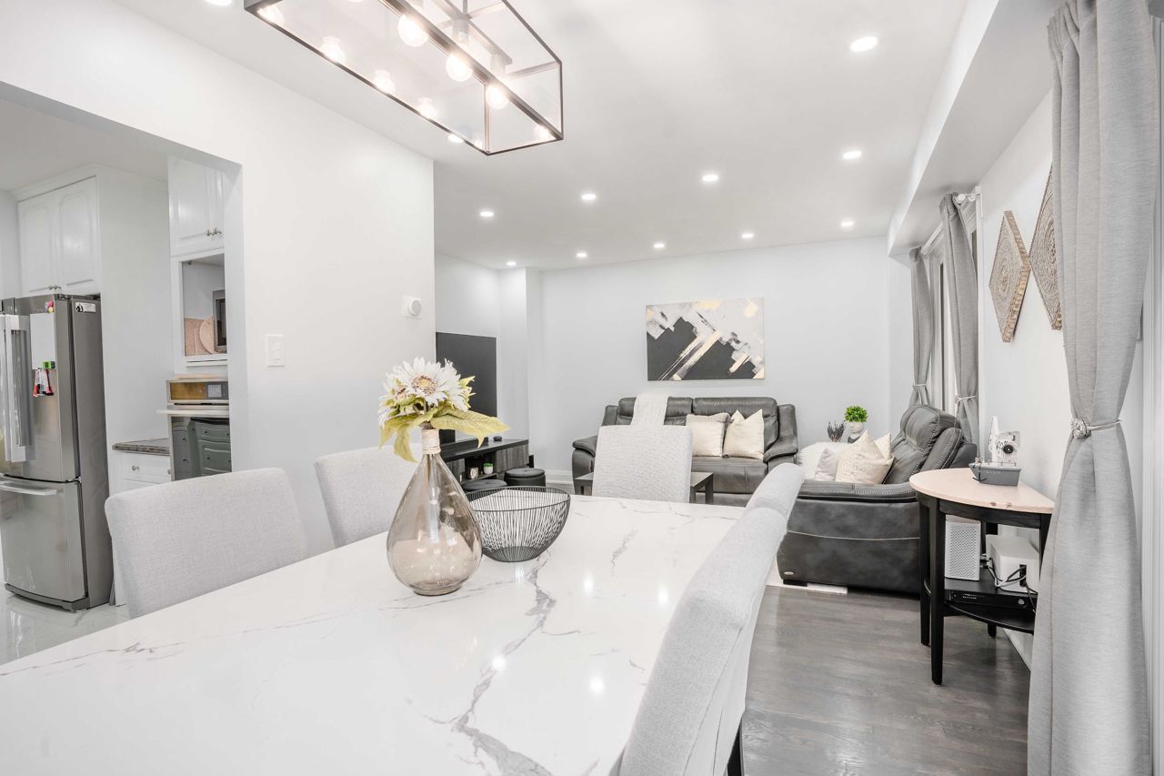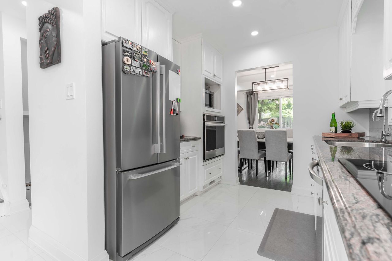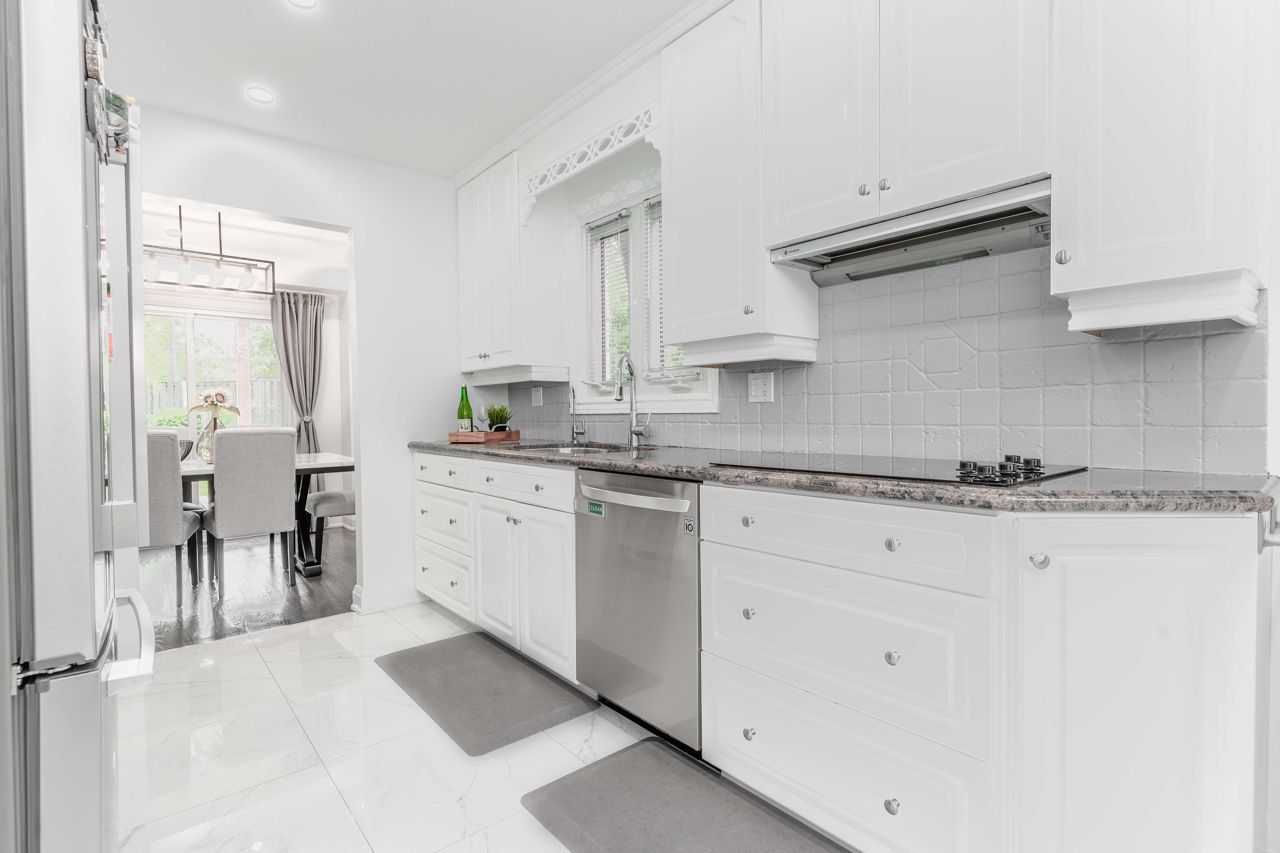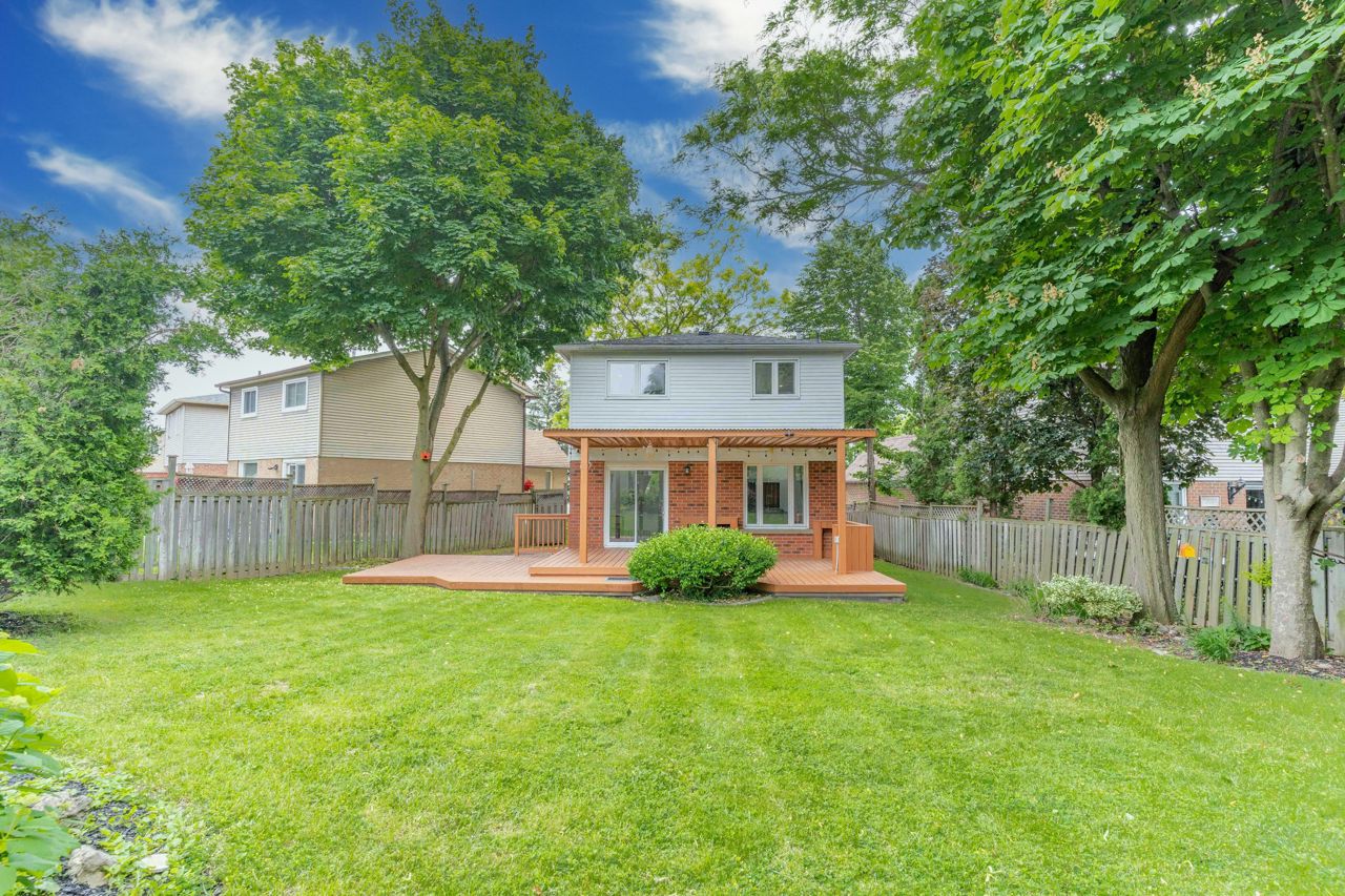 Stunning, highly upgraded home on a quiet court with a huge pool-sized backyard (161' Deep Lot). An impressively renovated modern kitchen comes with quartz counters, built-in appliances and modern flooring. Loads of pot lights and modern decor complement this astonishing kitchen. Renovated powder room, bathroom, floors, stairs, and recent paint throughout. Three (3) good sized bedrooms on 2nd floor. Huge covered 2-tier deck in the backyard. The huge and perfectly manicured backyard with a loads of possibilities. Mature trees and Perennials! Fin Bsmt W/Rec Rm & Lovely 4Pc Bath With a Jacuzzi Tub.Cul-de-sac street. Park multiple cars on your own driveway! Excellent location in Heart Lake East. Next to Hwy 410. Easy commute.
