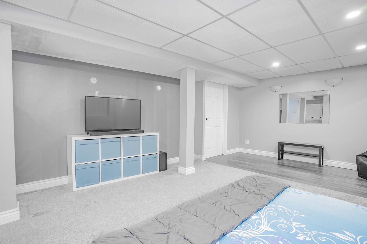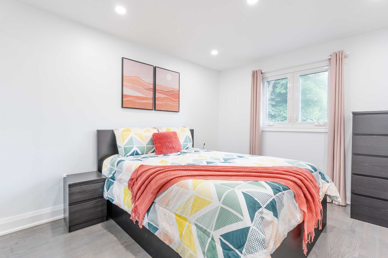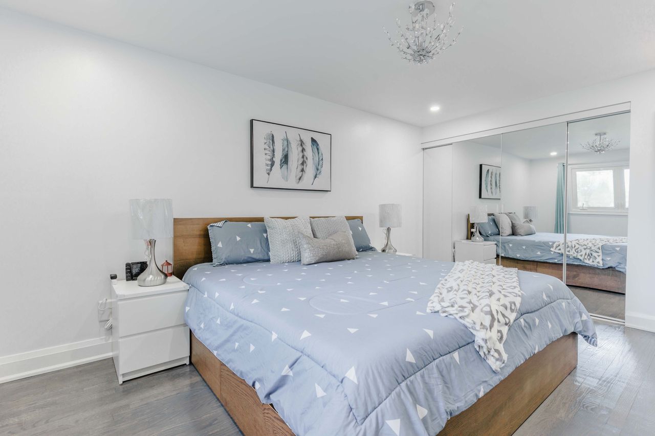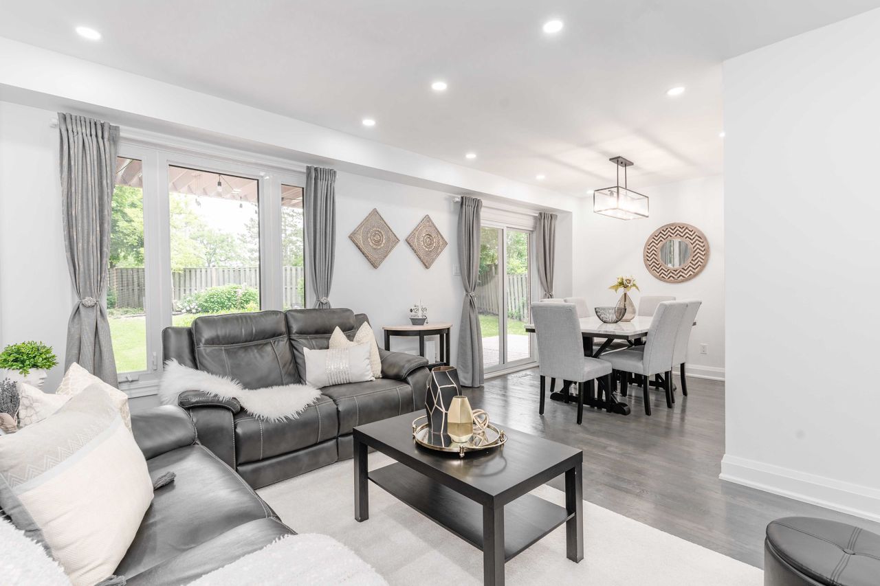 Stunning, highly upgraded home on a quiet court with a huge pool-sized backyard (161' Deep Lot). An impressively renovated modern kitchen comes with quartz counters, built-in appliances and modern flooring. Loads of pot lights and modern decor complement this astonishing kitchen. Renovated powder room, bathroom, floors, stairs, and recent paint throughout. Three (3) good sized bedrooms on 2nd floor. Huge covered 2-tier deck in the backyard. The huge and perfectly manicured backyard with a loads of possibilities. Mature trees and Perennials! Fin Bsmt W/Rec Rm & Lovely 4Pc Bath With a Jacuzzi Tub.Cul-de-sac street. Park multiple cars on your own driveway! Excellent location in Heart Lake East. Next to Hwy 410. Easy commute.