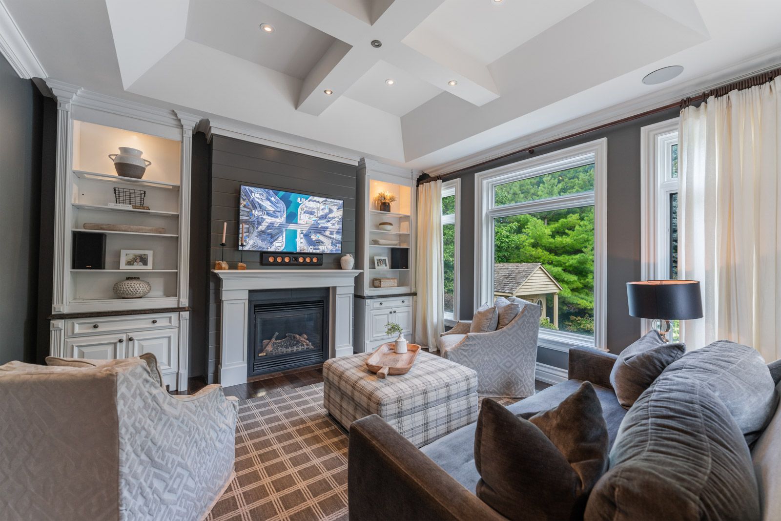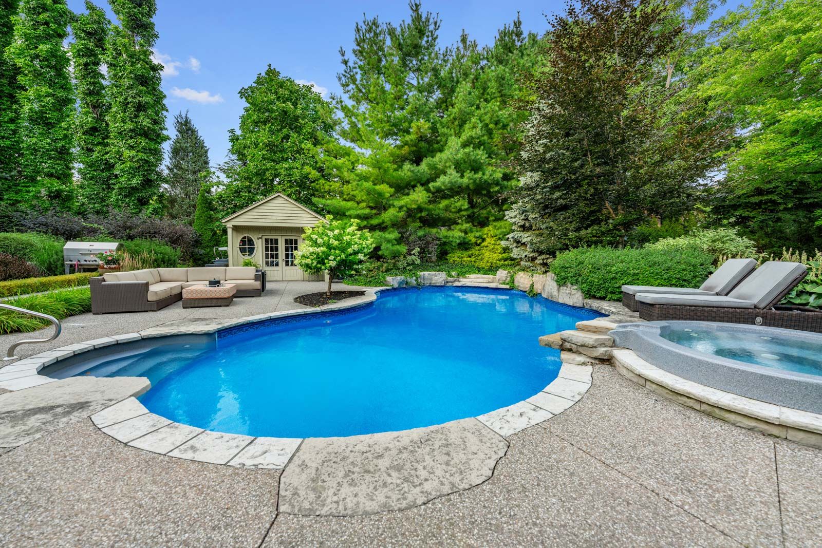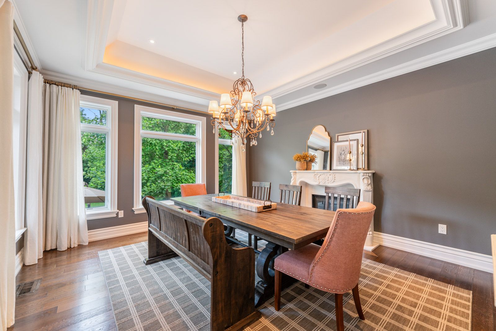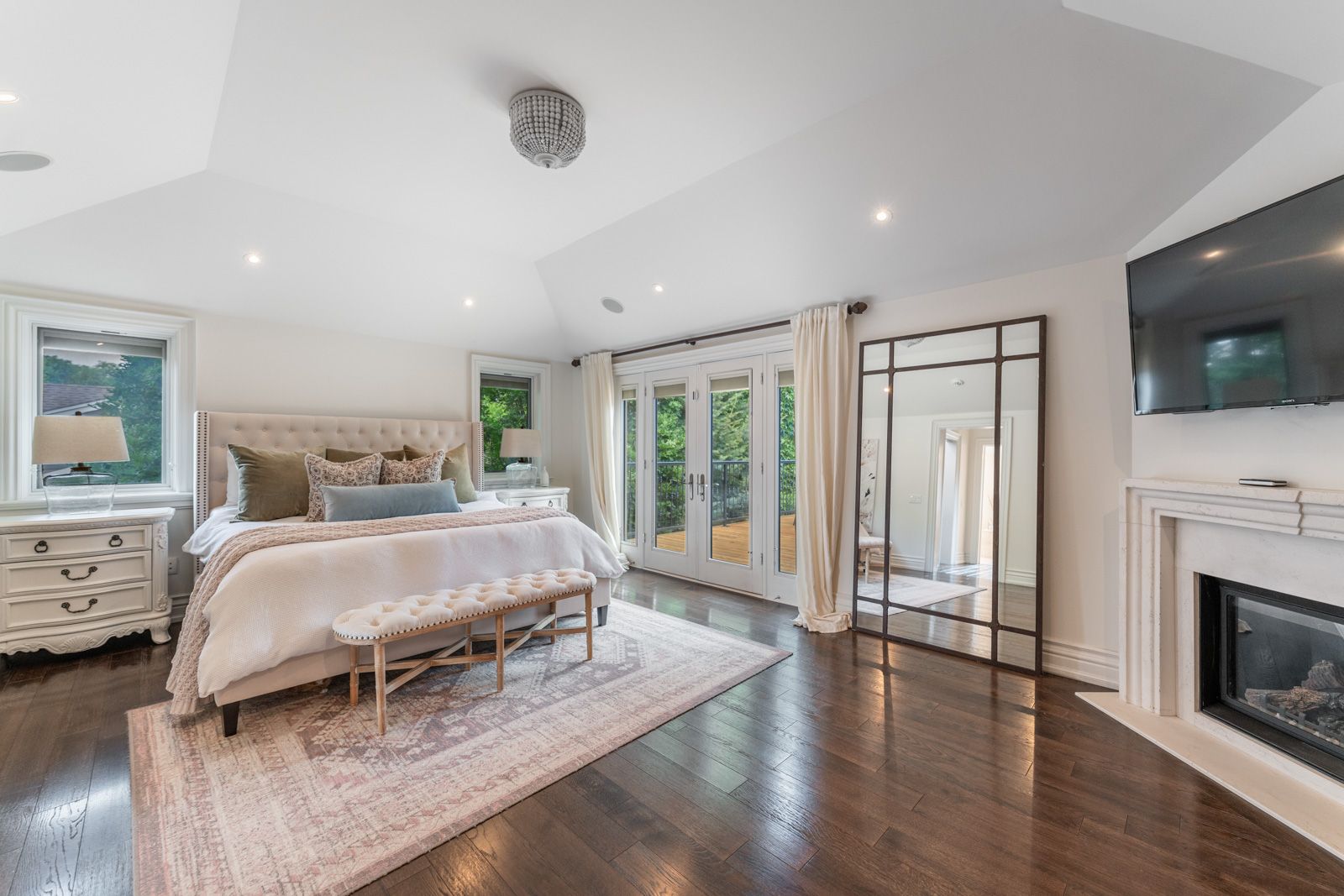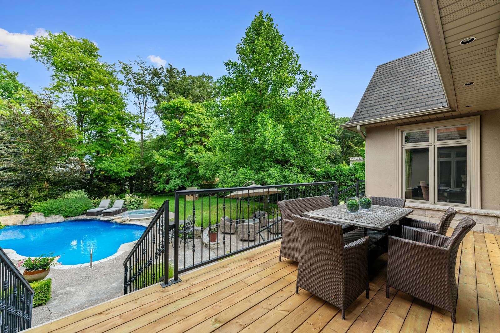 This spectacular custom lofted bungalow is nestled on a quiet, family-friendly street in the highly coveted Roseland neighbourhood. Offering 4 beds, 5 baths and approximately 5,755 sq ft of tastefully designed living space. The main floor boasts a stunning rotunda that houses an office or library with floor to ceiling bookcases and incredible custom ceiling details. The kitchen features chef-grade appliances, an oversized island, a walk-in pantry, and a gorgeous breakfast area overlooking the picturesque, Muskoka-like backyard. Adjacent to the kitchen, you'll find a cozy family room and an impressive dining room, both with fireplaces and views of the backyard. Two main floor bedrooms offer ensuite privileges to a well-appointed 5-piece bath. Up a few small steps, the primary retreat awaits, featuring a large, welcoming space with two separate walk-in closets, a 6-piece ensuite, and a tranquil sun-drenched balcony. The lower level includes a fourth bedroom with a 3-piece ensuite, a theatre, a wine cellar, an exercise room, and a large recreation room with a wet bar and full walk-out access to the backyard. The incredible yard is an oasis of total privacy, offering an inground saltwater pool, hot tub, extensive professional landscaping and stonework, and a cabana. Exceptional craftsmanship and pride of ownership are evident at every turn in this magnificent home. With a double tandem garage, a well-thought-out floor plan, and a dream backyard, this property is a true masterpiece.