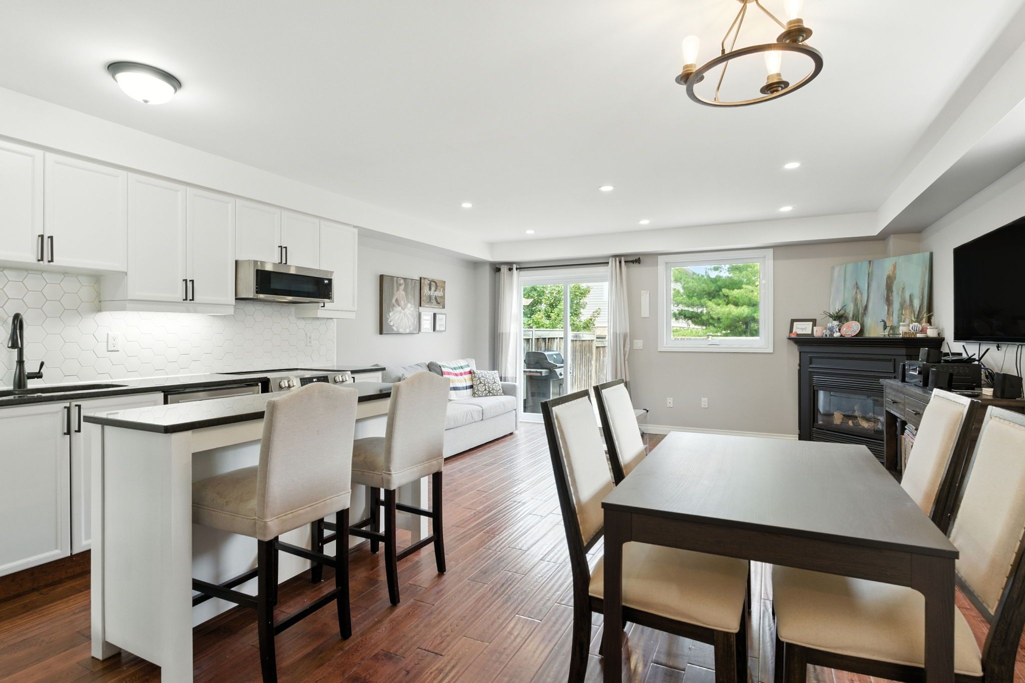 Spacious end-unit townhome located in the desirable Aldershot community. Located within a 30-second walk with views of the lake, and minutes from the Royal Botanical Gardens, this unit offers 3 bedrooms, 2.5 bath, hardwood floors throughout the main level, oak staircase, finished basement, and tons of natural light. Boasting numerous updates including: updated kitchen renovation with quartz counters (2023), all new appliances (2023-24), fully renovated ensuite bathroom (2022), all new windows and patio door (2022), furnace and A/C unit (2018/19), installation of pot lights and updated lighting fixtures throughout (2022-25), and new eavesdrops and downspouts (2025); making this townhome move-in ready! Condo fees $220/month and includes road and roof maintenance, snow removal, landscaping, exterior window cleaning and more!