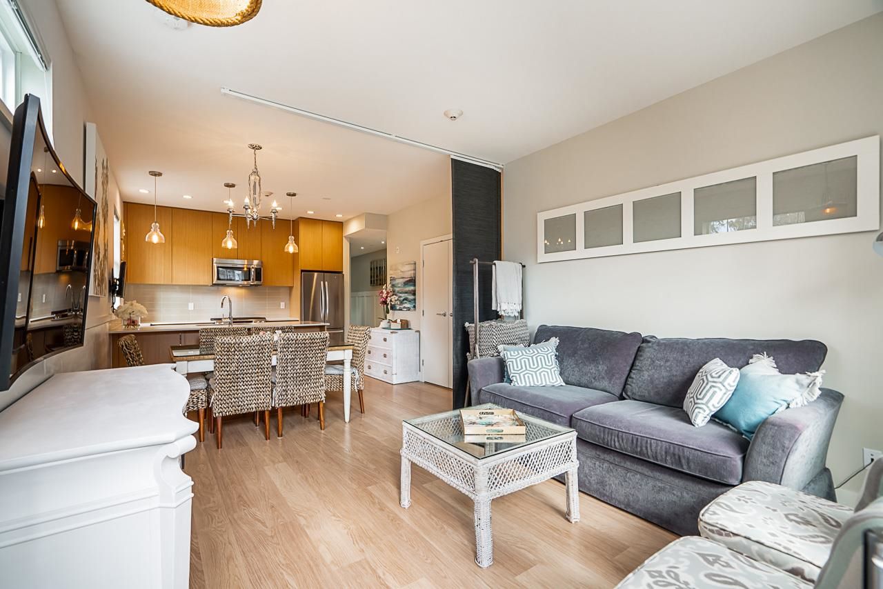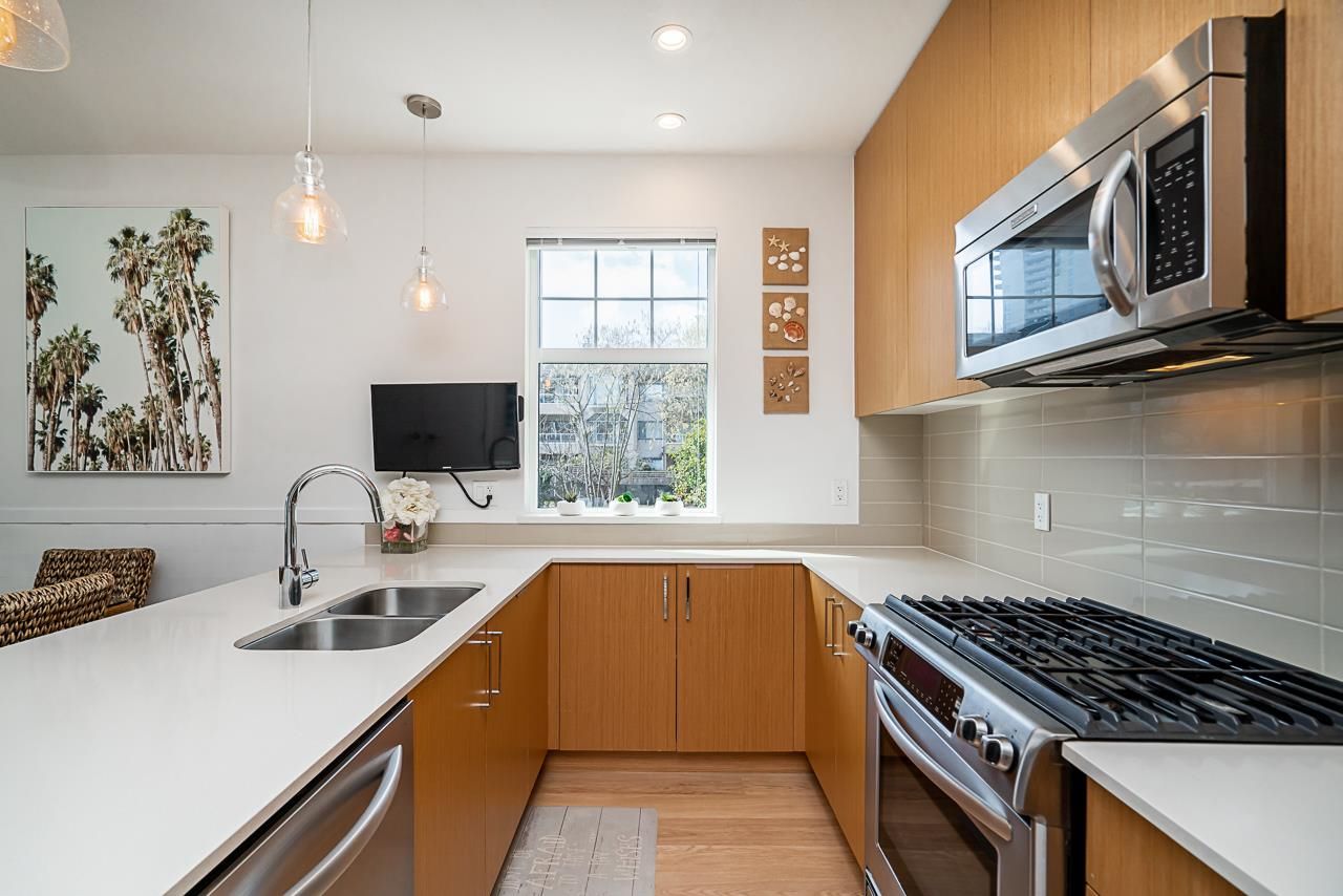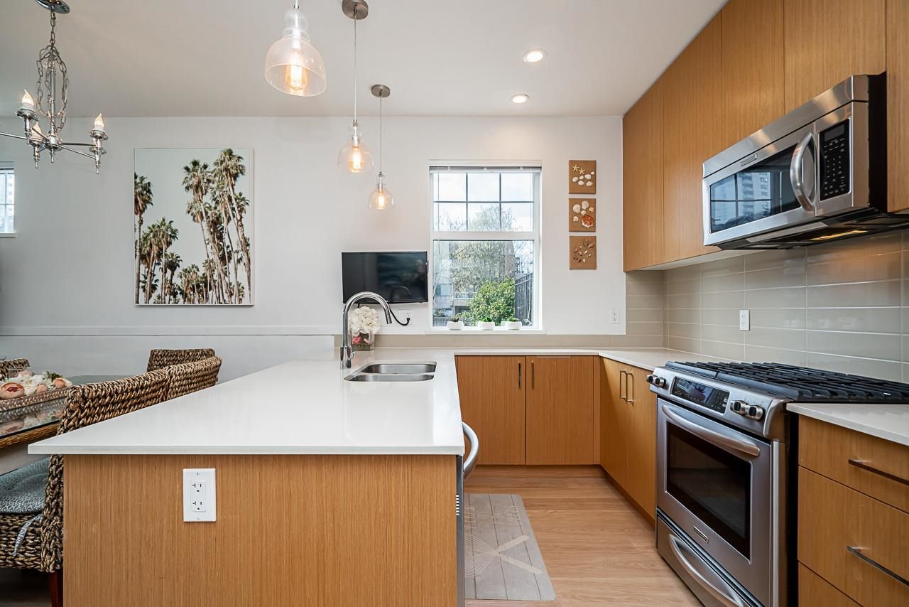 MOVE IN READY!! Perfect for First-time home buyers, Downsizing, or Investors! Located on the quiet side of Paddington Mews, this BEAUTIFUL Corner Unit features 1 Bedroom, 1 Bathroom, Insuite Laundry, Ample Storage space. 1 Storage Locker, 1 easy access Parking stall and plenty of guest parking. The OPEN concept layout offers spacious living, dining and kitchen space featuring Gas cooktop, KitchenAid appliances, Quartz countertop in kitchen & bathroom, 9 ft ceiling and quality laminate flooring throughout. The back entry opens to a large private patio 14'4 x 11'2 with lots of green for your enjoyment. Low strata fee, rental allowed, great Investment potential. Prime location: Metrotown area, close to Skytrain Patterson Station, Central Park, Crystal Mall, Library. Pet friendly.