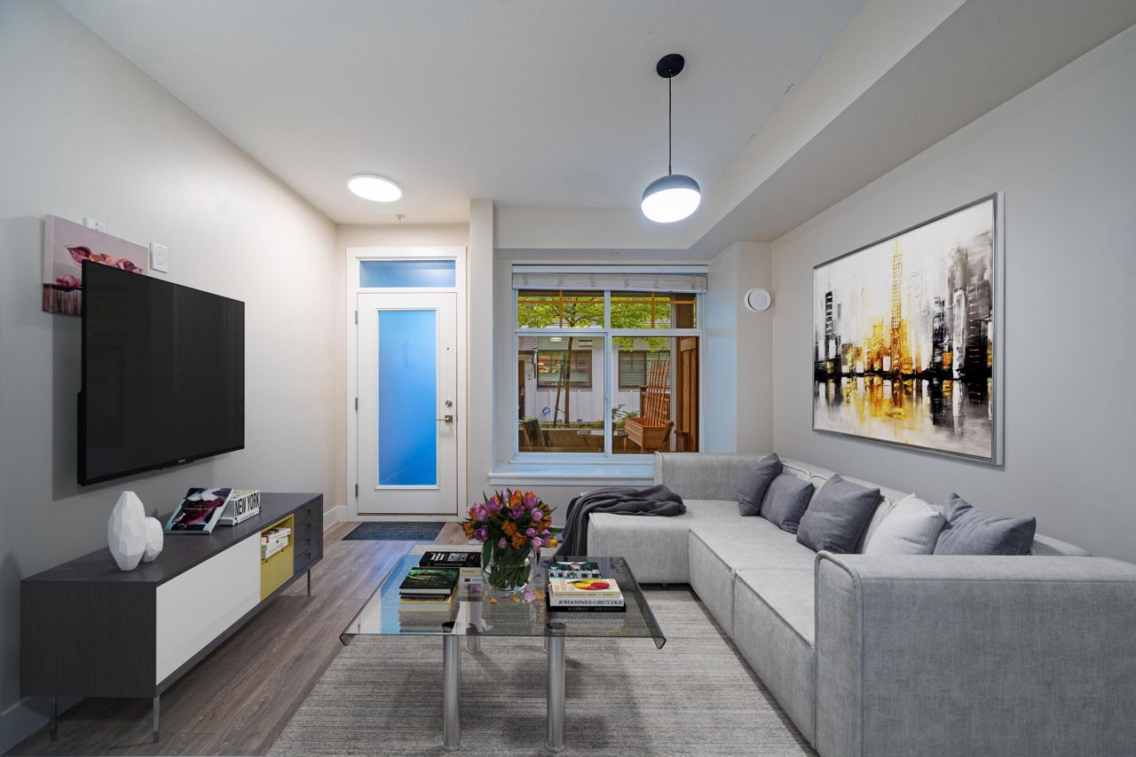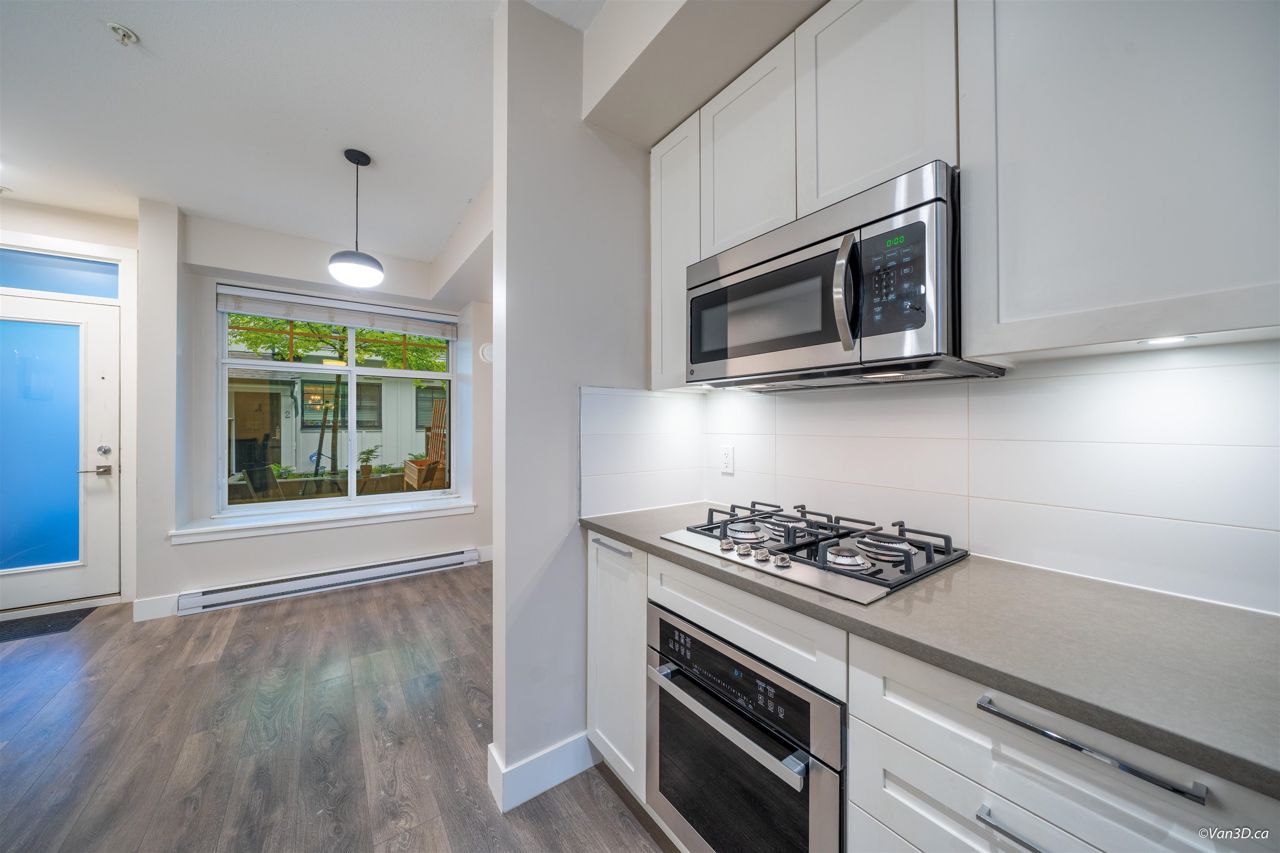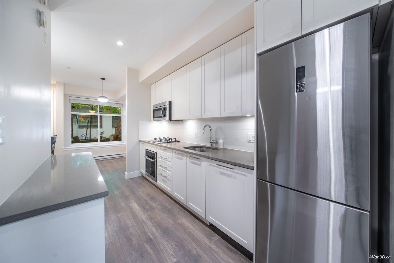 Introducing this Junior One Bedroom Townhouse with a tranquil patio at Savile Row! This adorable 5 year old home in a wonderful community offers modern design, a thoughtful open floor plan, 9' ceilings, a 200+ sq ft patio, a kitchen featuring quartz countertops, modern cabinetry and stainless steel appliances including a gas stove. Boasts a large fenced patio with natural gas hookup. Amenities include club house & gym. Located steps to Deer Lake Park, Shadbolt Centre, scenic trails and the upcoming Burnaby Lake Overpass. A short drive to Metrotown, Amazing Brentwood, BCIT, easy access to buses & Hwy #1. Comes with 1 secure parking stall & 1 storage locker. Two pets welcome (dogs or cats). Great starter home or investment!