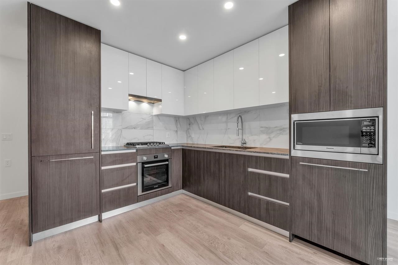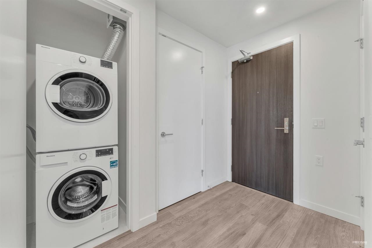 "Experience Elevated Living in the Heart of Brentwood Town Center. This northeast-facing luxury apartment offers 1 bedroom, 1 bathroom, and a den, embodying refined living. Upon entry, the 9-foot ceilings and floor-to-ceiling windows bathe the space in natural light. An open-concept layout features premium Bosch appliances and a gas range, with central A/C and heating for year-round comfort. The building enhances your lifestyle with a modern fitness center, elegant lounges, a 50-foot outdoor pool, a soothing hot tub, steam rooms, an outdoor BBQ area, and a dedicated children's play space. Conveniently near Holdom and Brentwood Skytrain stations, the location is unbeatable. Don't miss the chance to make this your new home. Call for your private showing Saturday and Sunday