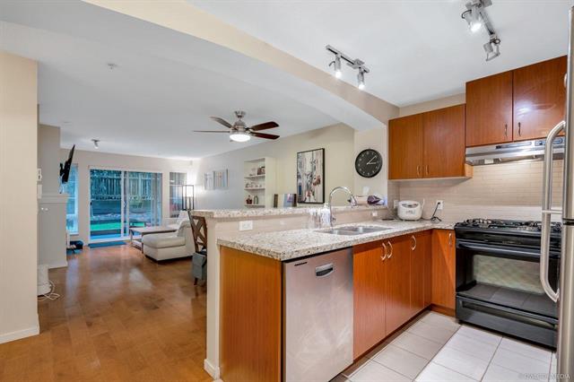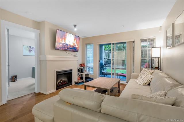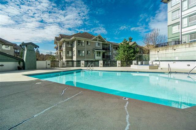 Two Parking stalls 13 & 74 and HUGE locker #7. Don't miss this great 2 bed, 2 full bath, ground floor home in Polygon's rain screen designed 'Sandlewood'. Updated kitchen features granite countertops, gas stove, s/s appliances and eating bar. Living room, with electric fireplace and hardwood floors, opens to the patio on the cool, quiet side of the building to enjoy summer bbq's with friends and your own grass yard. The spacious master offers plenty of room with a walk-in closet and reading area. Includes in-suite laundry and security system. Resort style amenities include outdoor pool, hot tub, sauna, fitness room, indoor mini-golf and kitchen/party room with pool table. Near Skytrain, Lougheed Mall, restaurants, schools. "open house" Nov 8 2-4 PM by appointment