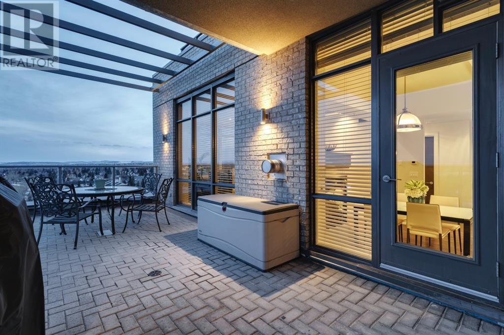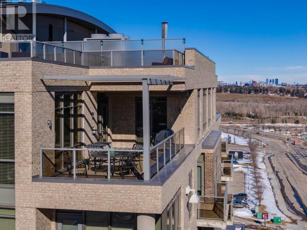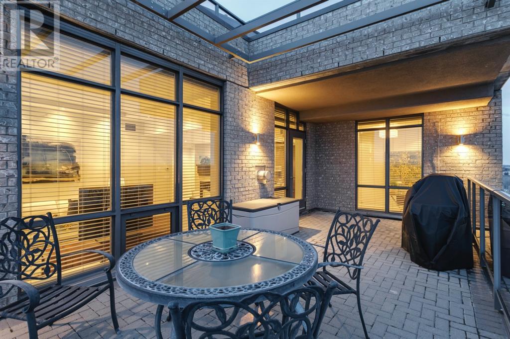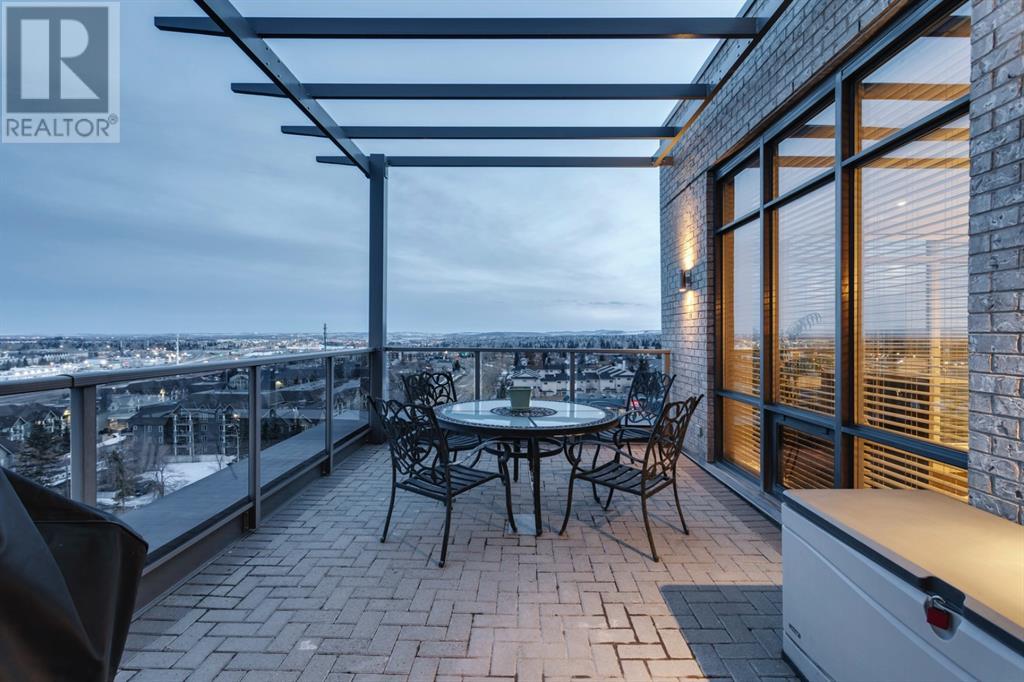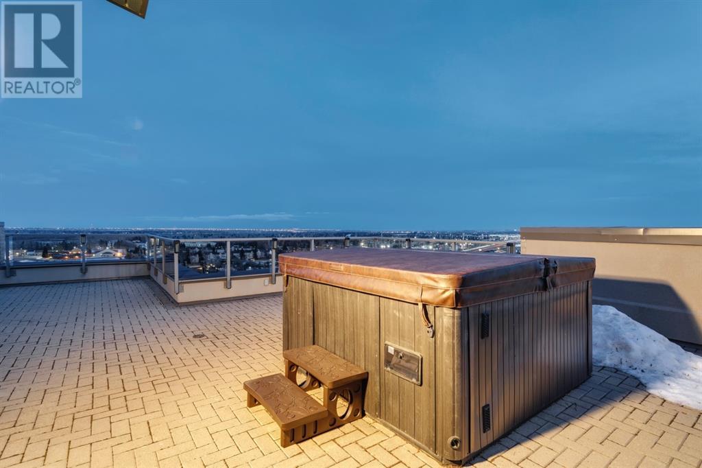 This exclusive penthouse in south Calgary is an extremely rare opportunity you don’t want to miss. With classic elegance and unique features not found in typical listings, this unit is a place you will want to call home. Floor to ceiling windows and a south-east exposure means there is no shortage of natural light in this unit. Beautiful rich hardwood floors complement the modern, bright layout throughout the main living areas including the 2 bedrooms and private office.With a stunning gourmet kitchen and dining area, this condo is an entertainer’s dream. Elegant design details and premium light fixtures are paired with high-end Wolf/Sub Zero stainless steel appliances, creating a gorgeous and highly functional space. Dine inside by the light of the three sided fireplace or on the two large and private outdoor terraces with breathtaking mountain views. Or simply enjoy a quiet coffee from your built-in Miele espresso machine at the breakfast bar.This home has everything you need to relax and unwind at the end of the day. Enjoy a book by the fireplace in the cozy living room or take in the views from the large hot tub on your private rooftop patio. The spacious master bedroom also offers a tranquil spa-style ensuite bath with a multi-head shower, steam bath and marble floors.For when those overnight guests come to visit, you’ll be prepared with a comfortable second bedroom and stylish full guest bathroom to make them feel at home. Two titled underground parking stalls are also included with a seperate premium storage unit. This home is perfect for the discriminating buyer who wants a low-maintenance lifestyle without compromising style and comfort. Located just steps from the LRT, and with quick and easy access to natural amenities like scenic Fish Creek park as well as shopping and restaurants, this location has everything needed to bring convenience and luxury to everyday living. (id:22211)