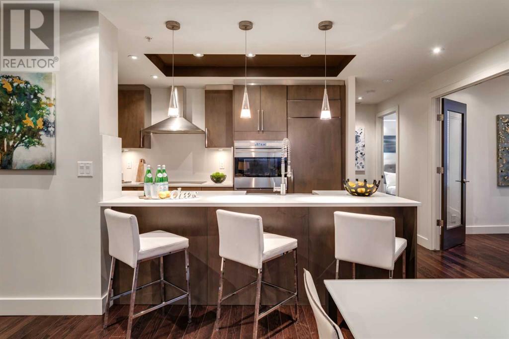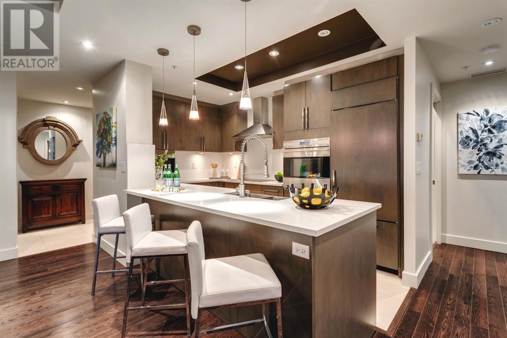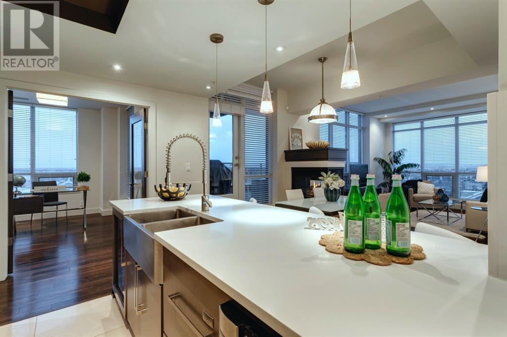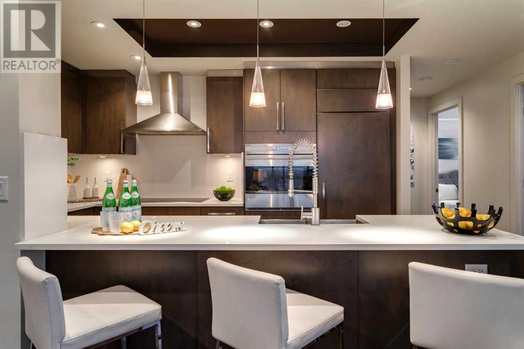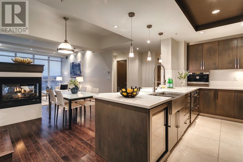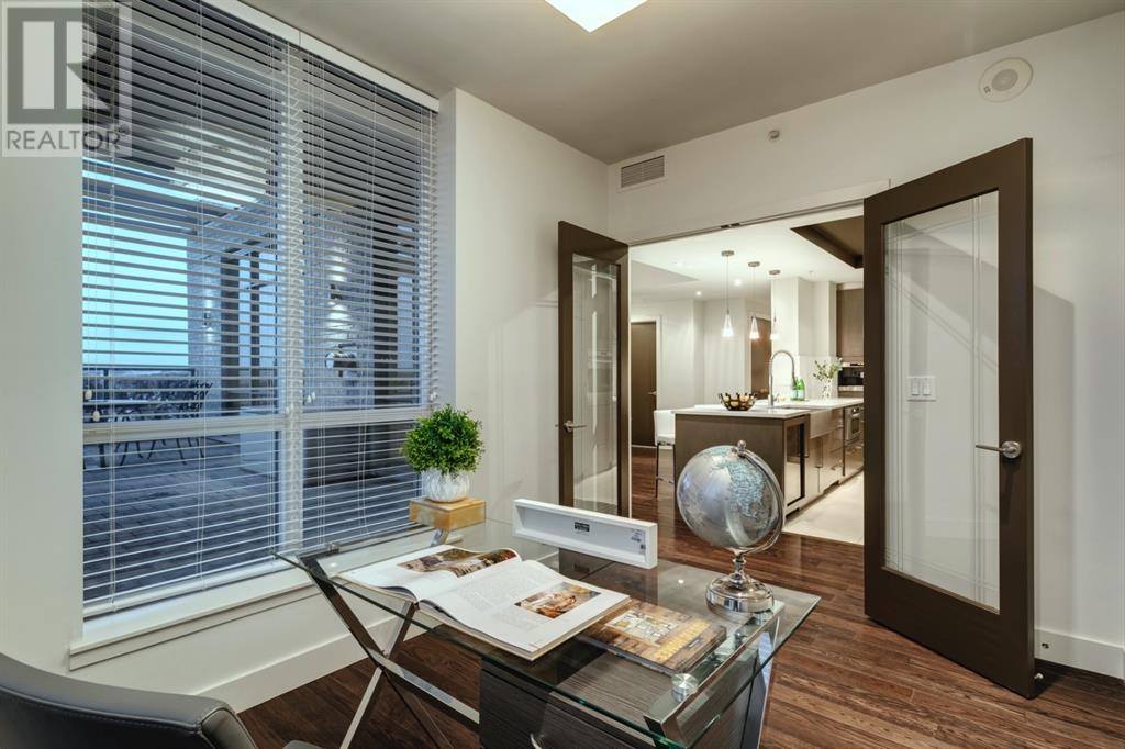 This exclusive penthouse in south Calgary is an extremely rare opportunity you don’t want to miss. With classic elegance and unique features not found in typical listings, this unit is a place you will want to call home. Floor to ceiling windows and a south-east exposure means there is no shortage of natural light in this unit. Beautiful rich hardwood floors complement the modern, bright layout throughout the main living areas including the 2 bedrooms and private office.With a stunning gourmet kitchen and dining area, this condo is an entertainer’s dream. Elegant design details and premium light fixtures are paired with high-end Wolf/Sub Zero stainless steel appliances, creating a gorgeous and highly functional space. Dine inside by the light of the three sided fireplace or on the two large and private outdoor terraces with breathtaking mountain views. Or simply enjoy a quiet coffee from your built-in Miele espresso machine at the breakfast bar.This home has everything you need to relax and unwind at the end of the day. Enjoy a book by the fireplace in the cozy living room or take in the views from the large hot tub on your private rooftop patio. The spacious master bedroom also offers a tranquil spa-style ensuite bath with a multi-head shower, steam bath and marble floors.For when those overnight guests come to visit, you’ll be prepared with a comfortable second bedroom and stylish full guest bathroom to make them feel at home. Two titled underground parking stalls are also included with a seperate premium storage unit. This home is perfect for the discriminating buyer who wants a low-maintenance lifestyle without compromising style and comfort. Located just steps from the LRT, and with quick and easy access to natural amenities like scenic Fish Creek park as well as shopping and restaurants, this location has everything needed to bring convenience and luxury to everyday living. (id:22211)