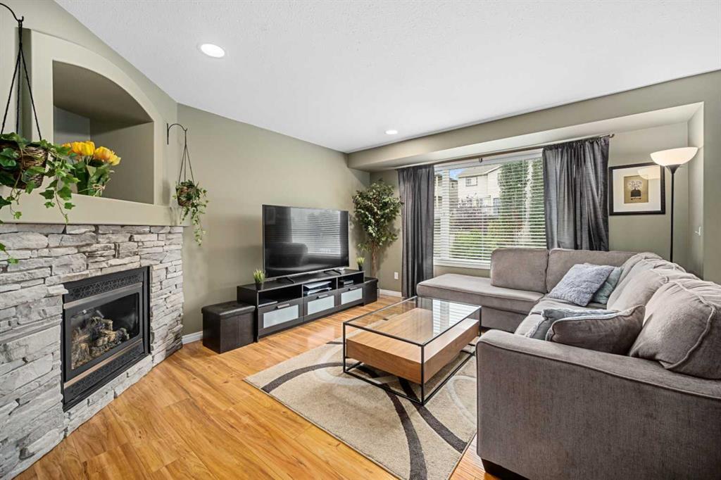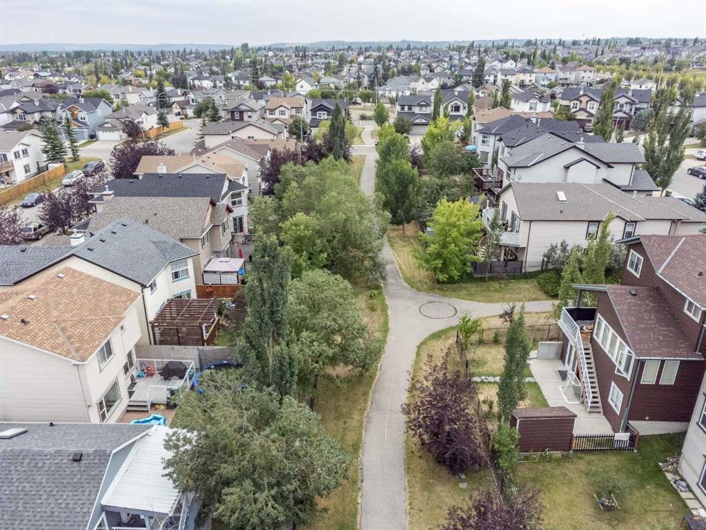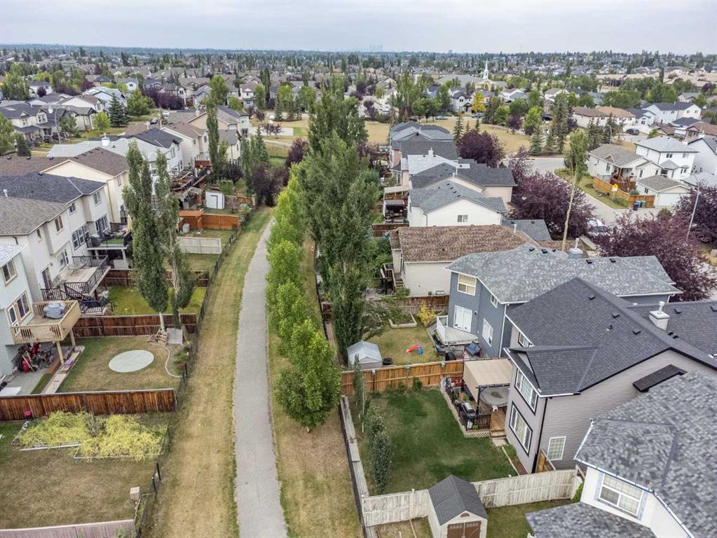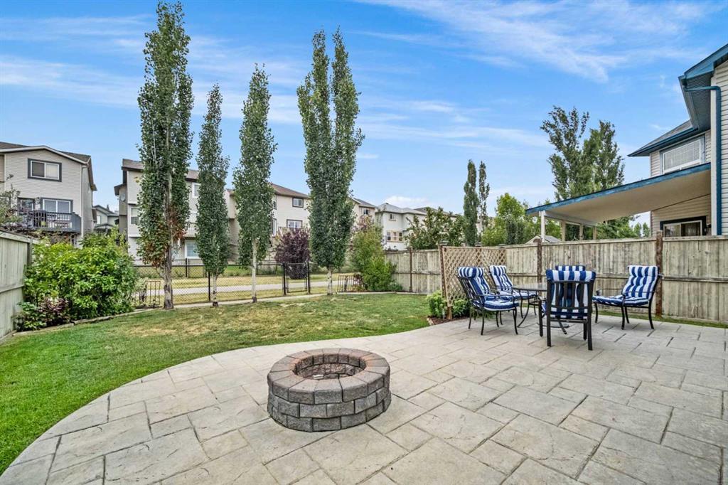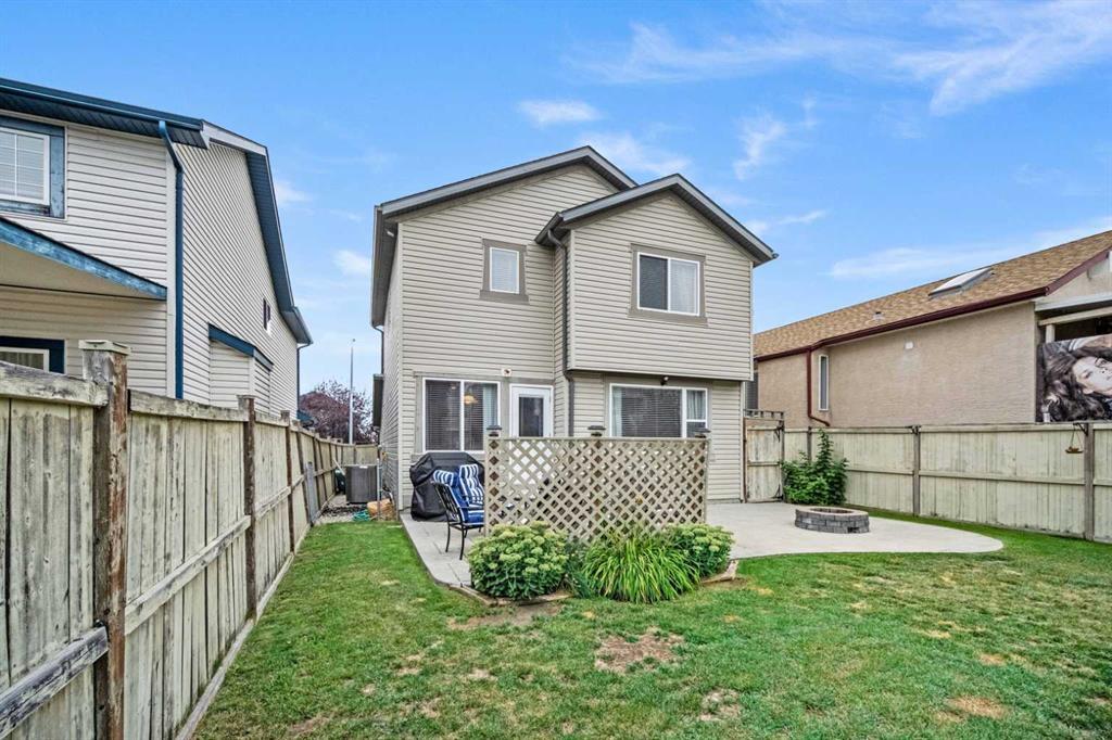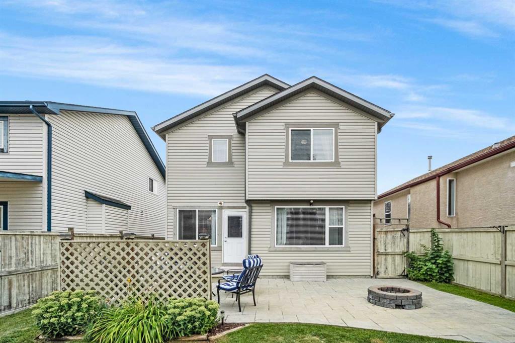 Welcome to 100 Everstone way! Featuring new shingles, new siding, new blinds and Ice Cold AC , this well kept home in Evergreen is just waiting for your family to move in. On this quiet street with a sunny West back yard backing on to a walking/biking path which leads to a community park, you can relax on your stamped concrete patio or cozy up around the fire pit. Also included is a built in gas line for summer bbq convenience. Inside is a bright and open main level featuring a kitchen with an island, dining area and an intimate sitting room with a cozy gas fireplace. Leave your screen open to connect the indoor living space with the patio and the wonderful backyard that opens to the green space and walking path beyond. Three nicely sized bedrooms and two full baths are located in the upper level. The master suite offers a walk in closet and a full ensuite. Framing in the lower level suggests one possible option for gaining more living space or can be re-configured to suit your own preferences. Beat the summer heat in comfort with central air conditioning. Excellent access to C-train. Need a dog run? There is one here that's over 40' long. This home offers something for everyone. This house will go fast, so act now! (id:22211)