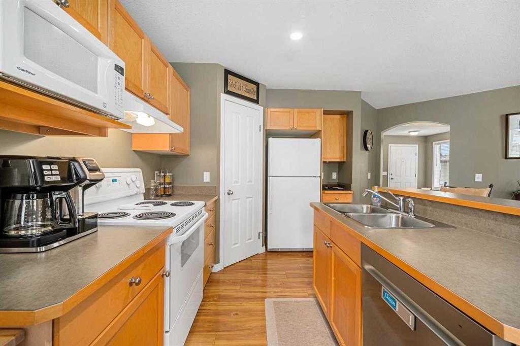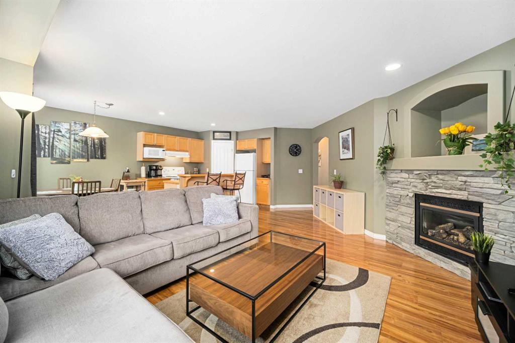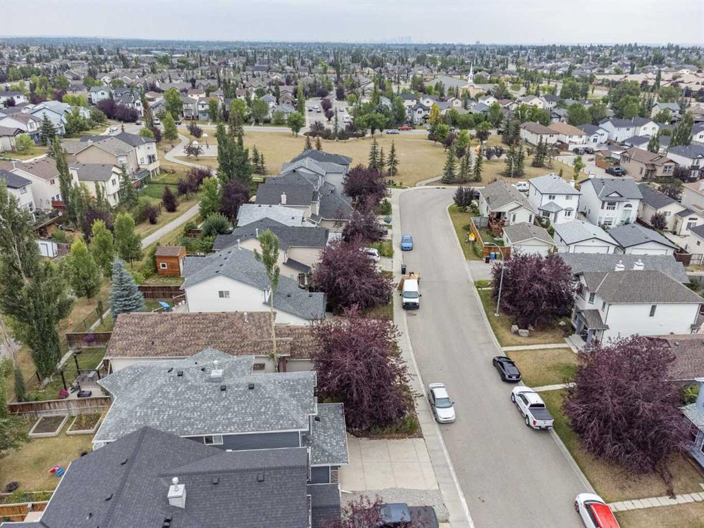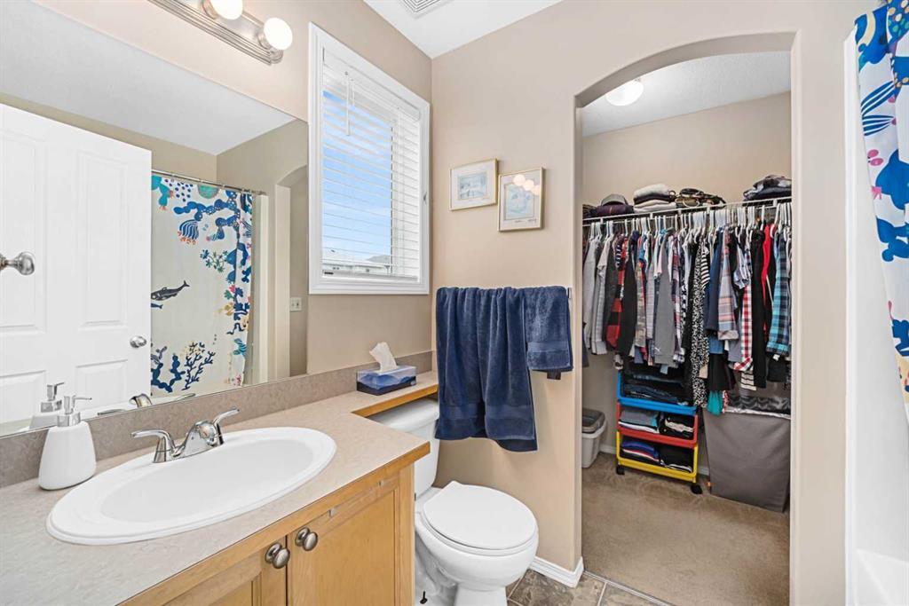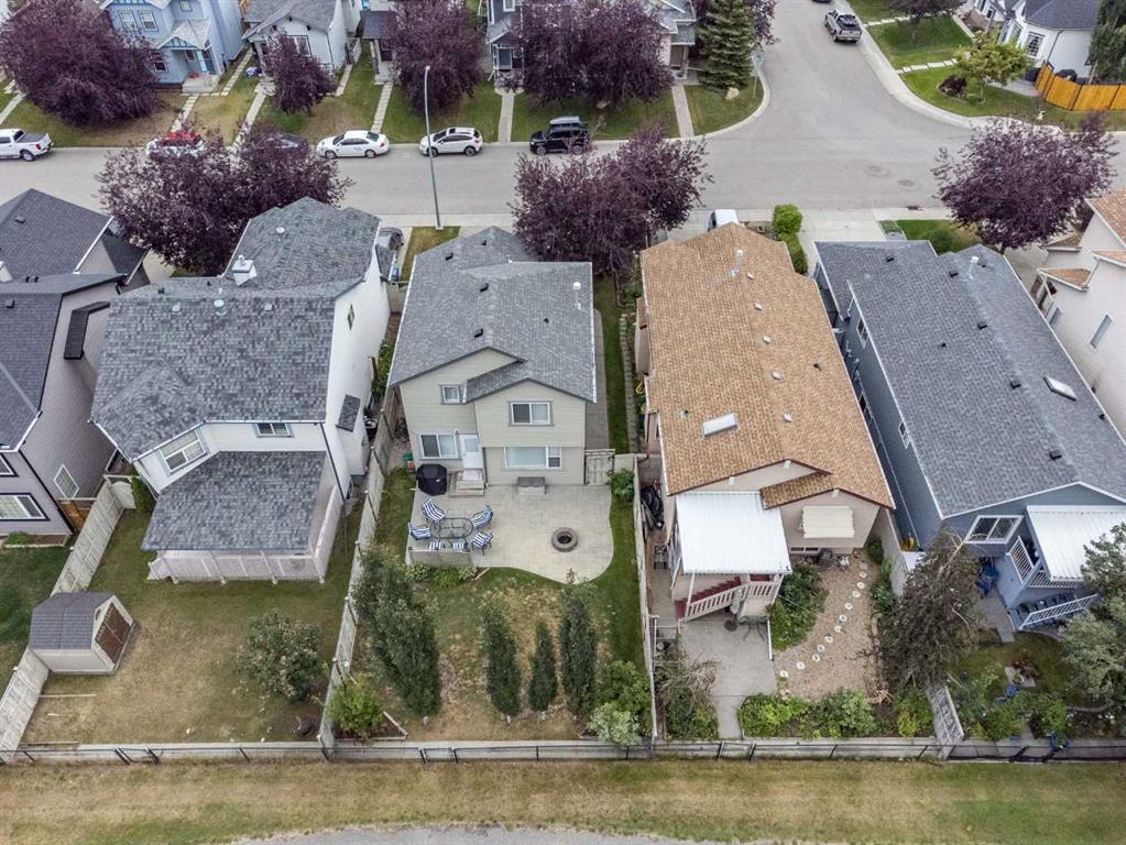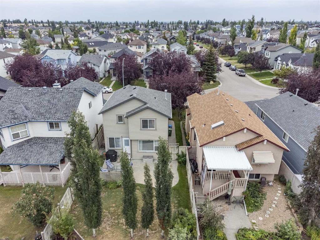 Welcome to 100 Everstone way! Featuring new shingles, new siding, new blinds and Ice Cold AC , this well kept home in Evergreen is just waiting for your family to move in. On this quiet street with a sunny West back yard backing on to a walking/biking path which leads to a community park, you can relax on your stamped concrete patio or cozy up around the fire pit. Also included is a built in gas line for summer bbq convenience. Inside is a bright and open main level featuring a kitchen with an island, dining area and an intimate sitting room with a cozy gas fireplace. Leave your screen open to connect the indoor living space with the patio and the wonderful backyard that opens to the green space and walking path beyond. Three nicely sized bedrooms and two full baths are located in the upper level. The master suite offers a walk in closet and a full ensuite. Framing in the lower level suggests one possible option for gaining more living space or can be re-configured to suit your own preferences. Beat the summer heat in comfort with central air conditioning. Excellent access to C-train. Need a dog run? There is one here that's over 40' long. This home offers something for everyone. This house will go fast, so act now! (id:22211)