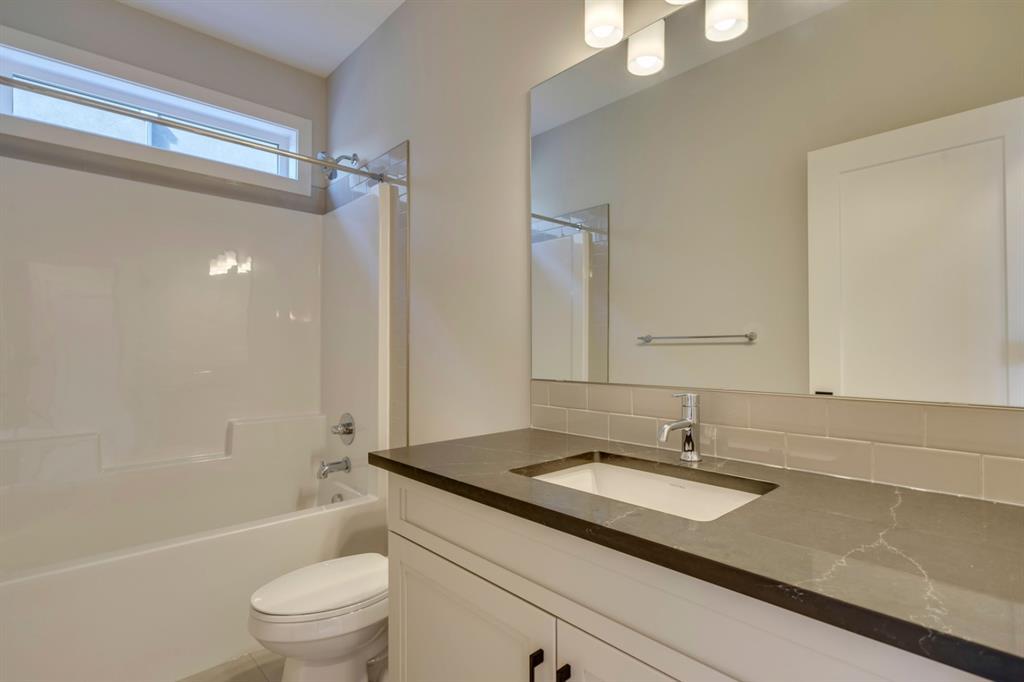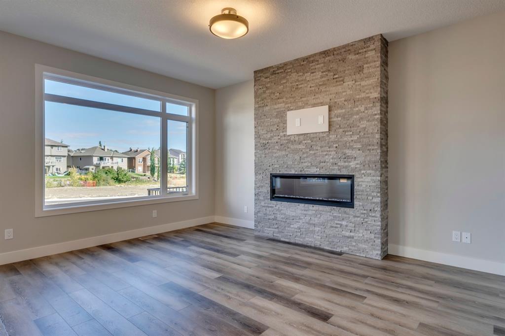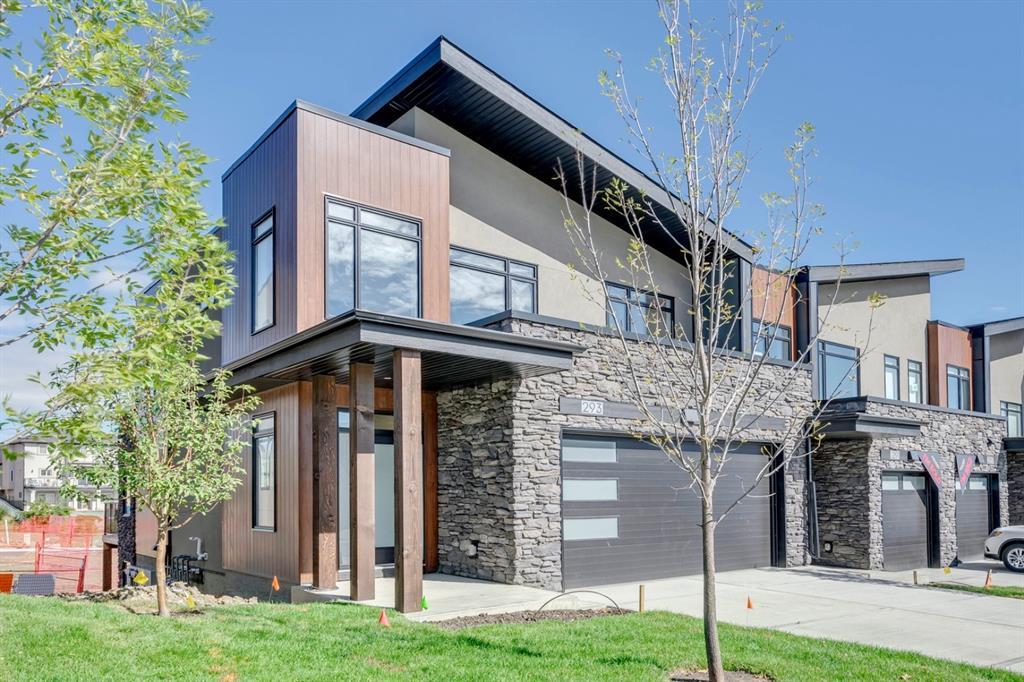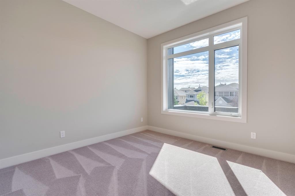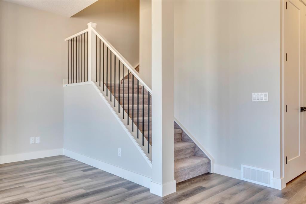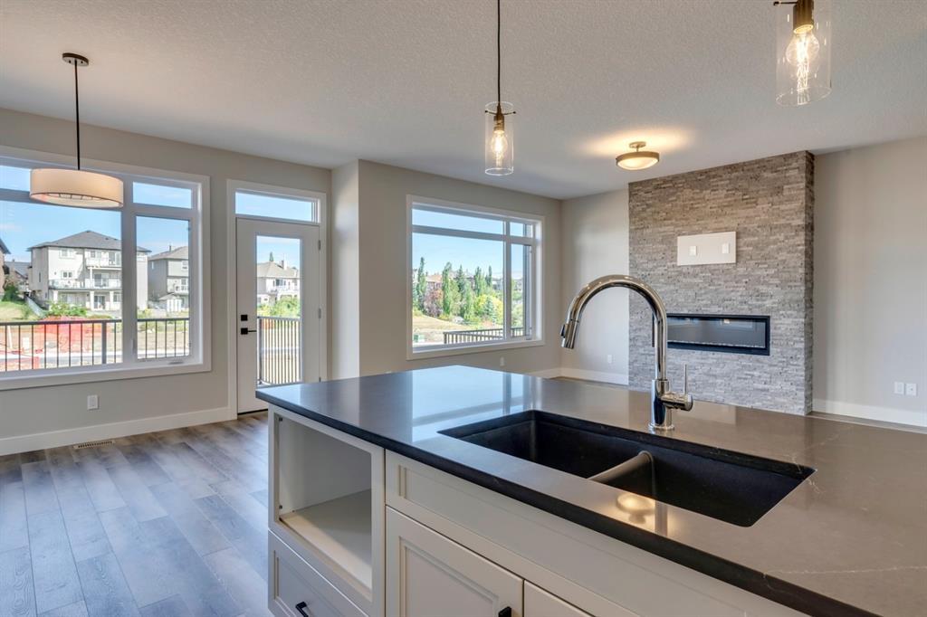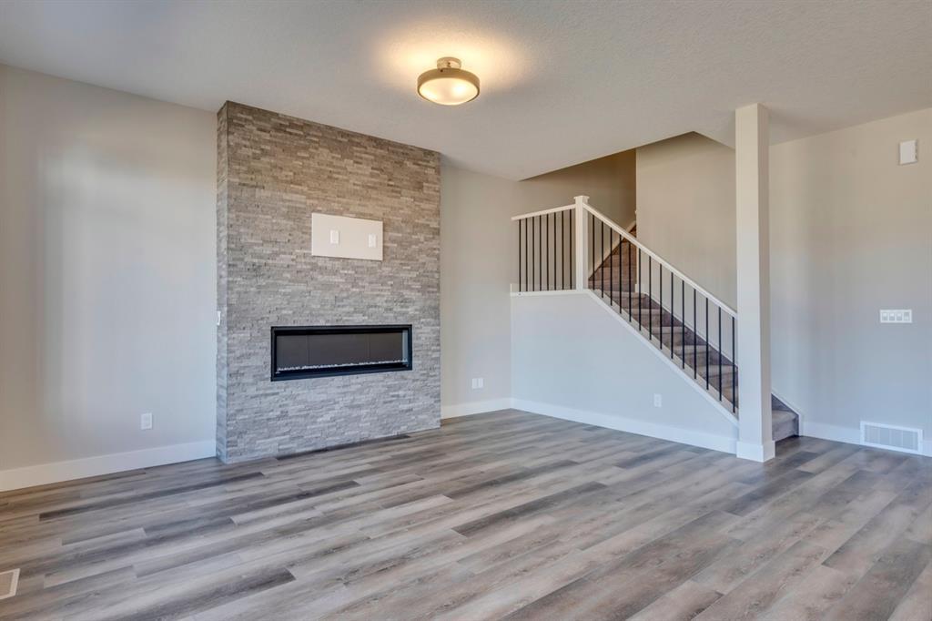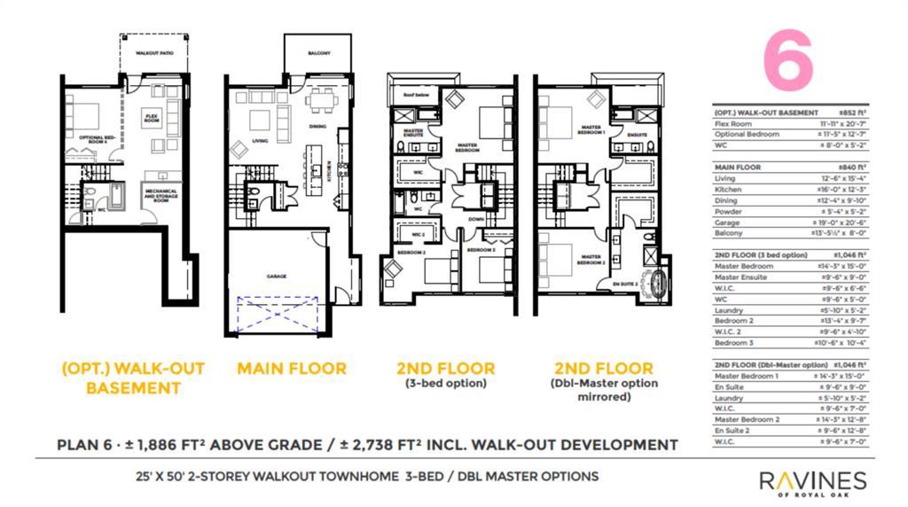 PANORAMIC RAVINE VIEWS | DEVELOPED WALK-OUT BASEMENT | Ravines of Royal Oak by Janssen Homes offers unmatched quality & design, located on the most scenic & tranquil of sites in the mature NW community of Royal Oak. This 3BR, 2.5 bath with over 2,700sf of developed living space (1,751RMS) 2-storey, townhouse with fully developed walkout basement & double attached garage boasts superior finishings. Main floor open-concept-plan features grand kitchen with full-height cabinets, soft close doors/drawers & full extension glides, quartz counters, undermount Silgranit sink, plus S/S appliances including gas range with decorative back-splash & hood-fan opening onto both dining area with access to rear balcony with panoramic ravine views & spacious living room with chic linear fireplace. Upper level includes roomy master retreat, luxurious 5-pce ensuite with heated tile floor, soaker tub, separate walk-in tiled shower, dual sinks, walk-in closet & extra built-in storage, full-size laundry room with sink & quartz folding table, an additional 4-pce bath, & two more bedrooms; one with spacious walk-in closet. Fully-finished walk-out basement adds an additional 850sf of developed living space with roomy rec space, 4th bedroom, 4-pce bath, and private back patio with lovely greenspace access. Double garage with additional full-length driveway for extra parking completes the package. Ravines of Royal Oak goes far beyond typical townhome offerings; special attention has been paid to utilizing high quality, maintenance free, materials to ensure long-term, worry-free living. Acrylic stucco with underlying 'Rainscreen' protection, stone, & Sagiwall vertical planks (ultra-premium European siding) ensure not only that the project will be one of the most beautiful in the city, but that it will stand the test of time with low maintenance costs. Other premium features include triple-pane, argon filled low-e, aluminum clad windows, premium grade cabinetry with quartz countertops throughout, 9' wall height on all levels, premium Torlys LV Plank flooring, 80-gal hot water tank, a fully insulated & drywalled attached garage that includes a hose bib & smart WiFi door opener, among other features. Condo fees include building insurance, exterior building maintenance & long-term reserve/replacement fund, road & driveway maint., landscaping maint., driveway & sidewalk snow removal, landscaping irrigation, street & pathway lighting, garbage/recycling/organics service. Bordered by ponds, natural ravine park, walking paths & only minutes to LRT station, K-9 schools, YMCA & 4 major shopping centres. A solid investment - visit today! Note - photos from a similar unit. RMS measurements taken from plan as home is under construction. This unit is under construction with possession TBD. (id:22211)