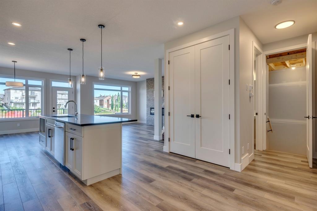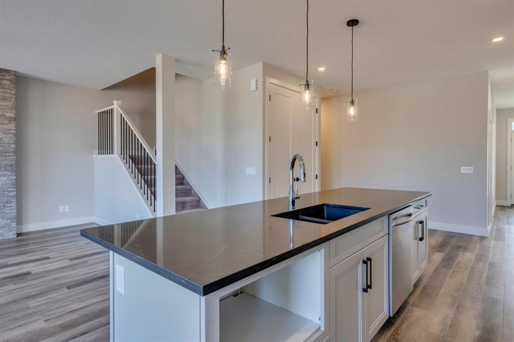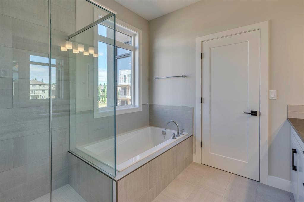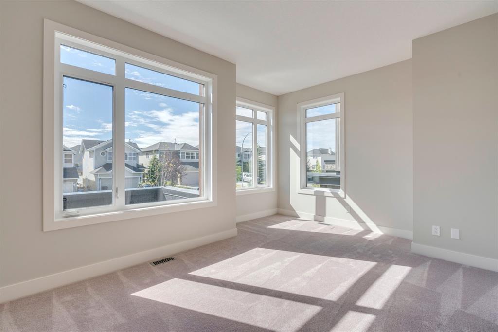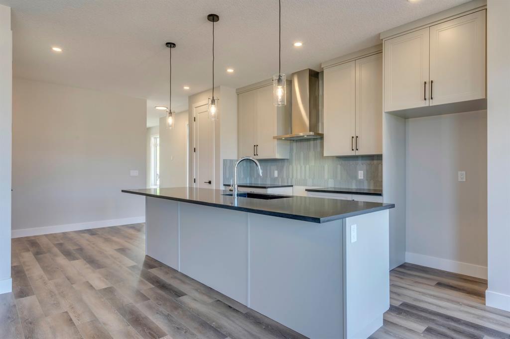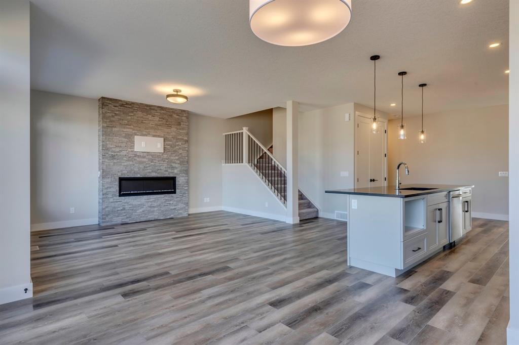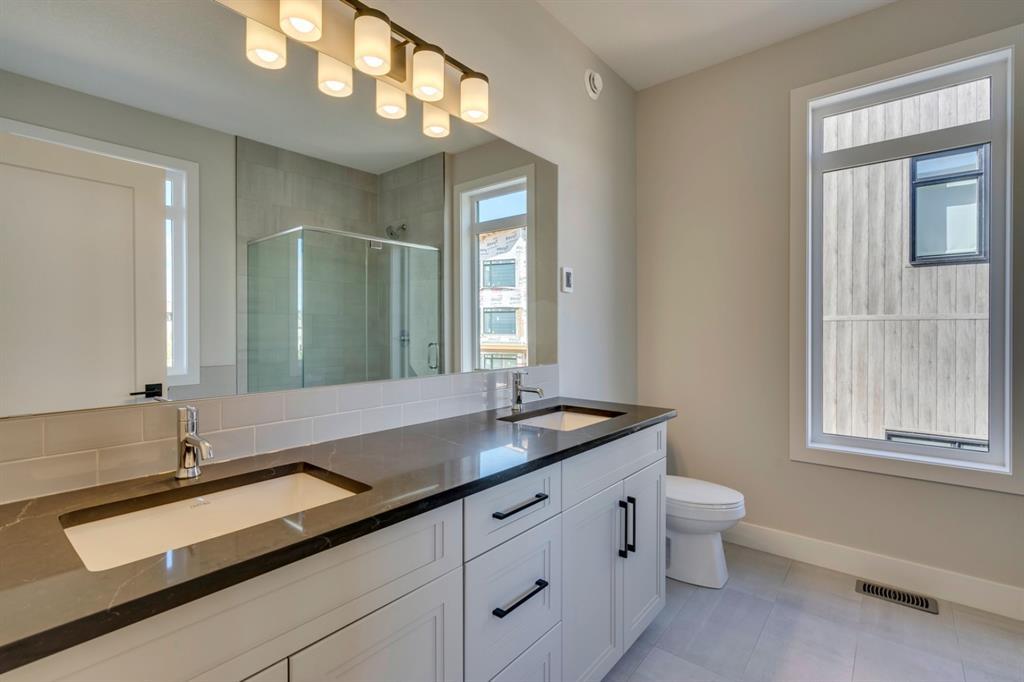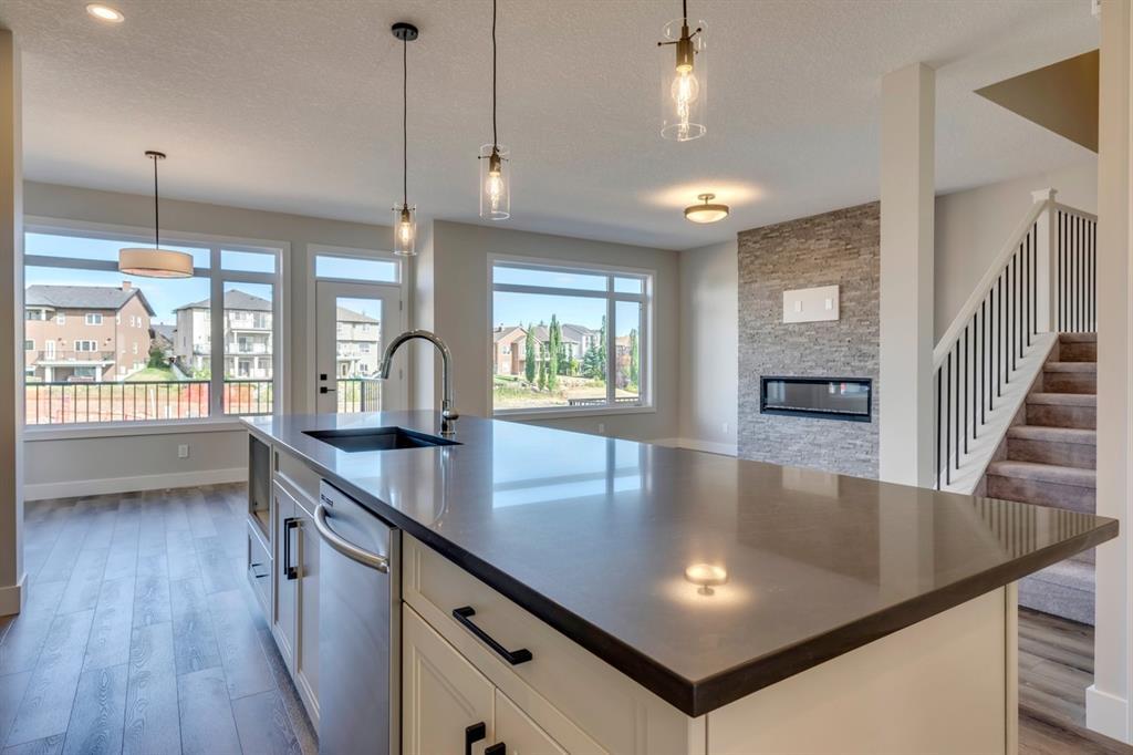 PANORAMIC RAVINE VIEWS | DEVELOPED WALK-OUT BASEMENT | Ravines of Royal Oak by Janssen Homes offers unmatched quality & design, located on the most scenic & tranquil of sites in the mature NW community of Royal Oak. This 3BR, 2.5 bath with over 2,700sf of developed living space (1,751RMS) 2-storey, townhouse with fully developed walkout basement & double attached garage boasts superior finishings. Main floor open-concept-plan features grand kitchen with full-height cabinets, soft close doors/drawers & full extension glides, quartz counters, undermount Silgranit sink, plus S/S appliances including gas range with decorative back-splash & hood-fan opening onto both dining area with access to rear balcony with panoramic ravine views & spacious living room with chic linear fireplace. Upper level includes roomy master retreat, luxurious 5-pce ensuite with heated tile floor, soaker tub, separate walk-in tiled shower, dual sinks, walk-in closet & extra built-in storage, full-size laundry room with sink & quartz folding table, an additional 4-pce bath, & two more bedrooms; one with spacious walk-in closet. Fully-finished walk-out basement adds an additional 850sf of developed living space with roomy rec space, 4th bedroom, 4-pce bath, and private back patio with lovely greenspace access. Double garage with additional full-length driveway for extra parking completes the package. Ravines of Royal Oak goes far beyond typical townhome offerings; special attention has been paid to utilizing high quality, maintenance free, materials to ensure long-term, worry-free living. Acrylic stucco with underlying 'Rainscreen' protection, stone, & Sagiwall vertical planks (ultra-premium European siding) ensure not only that the project will be one of the most beautiful in the city, but that it will stand the test of time with low maintenance costs. Other premium features include triple-pane, argon filled low-e, aluminum clad windows, premium grade cabinetry with quartz countertops throughout, 9' wall height on all levels, premium Torlys LV Plank flooring, 80-gal hot water tank, a fully insulated & drywalled attached garage that includes a hose bib & smart WiFi door opener, among other features. Condo fees include building insurance, exterior building maintenance & long-term reserve/replacement fund, road & driveway maint., landscaping maint., driveway & sidewalk snow removal, landscaping irrigation, street & pathway lighting, garbage/recycling/organics service. Bordered by ponds, natural ravine park, walking paths & only minutes to LRT station, K-9 schools, YMCA & 4 major shopping centres. A solid investment - visit today! Note - photos from a similar unit. RMS measurements taken from plan as home is under construction. This unit is under construction with possession TBD. (id:22211)
