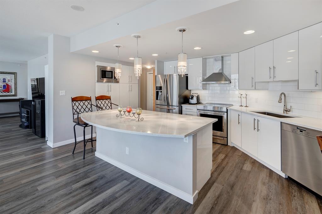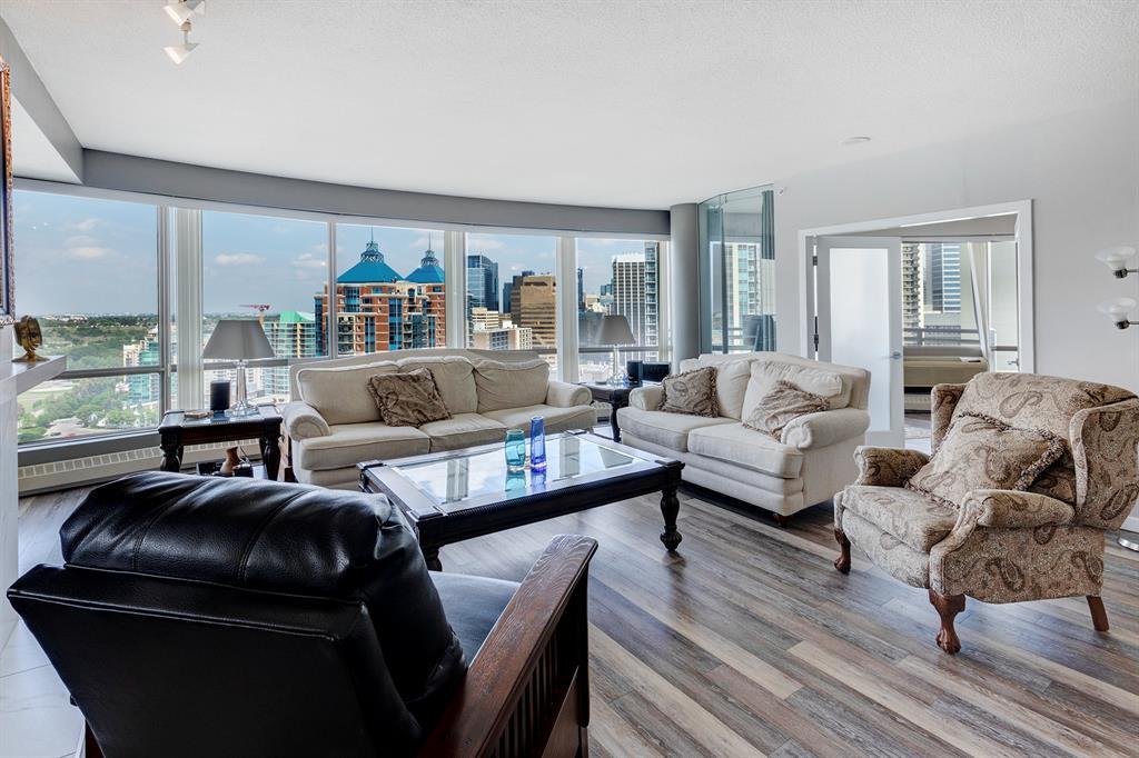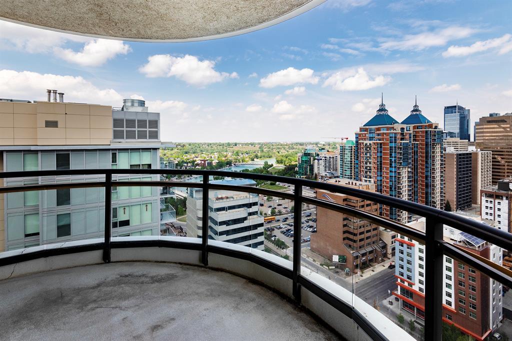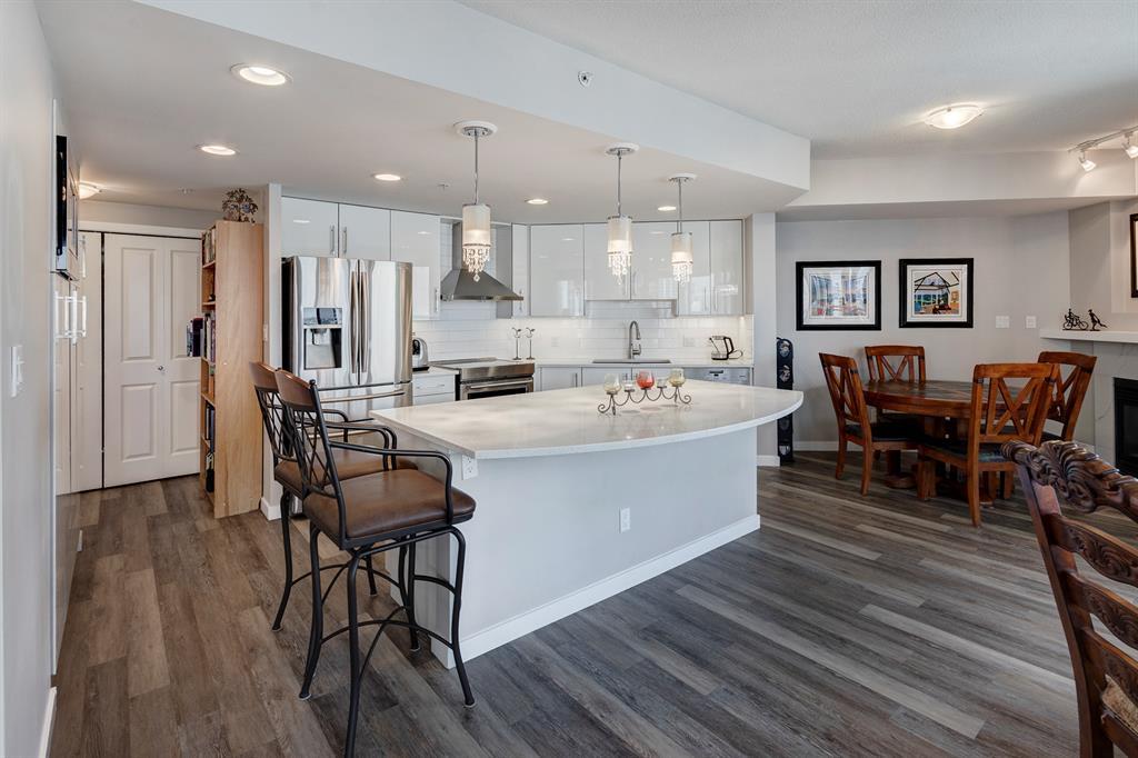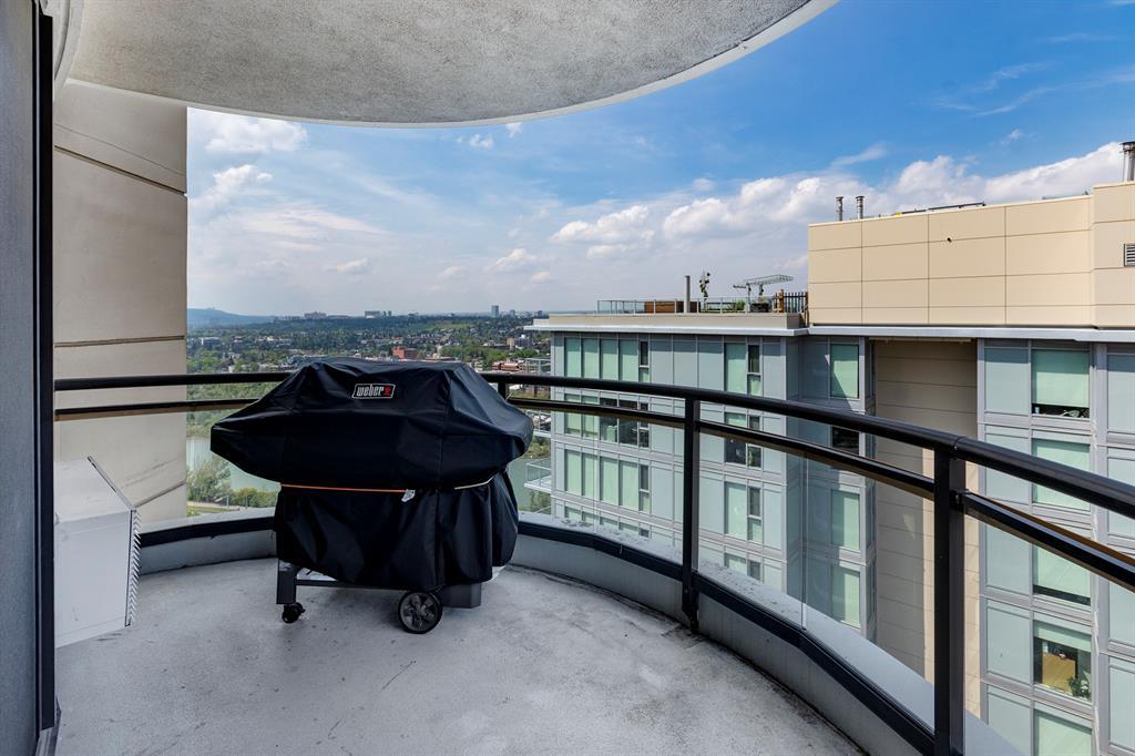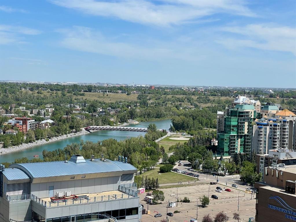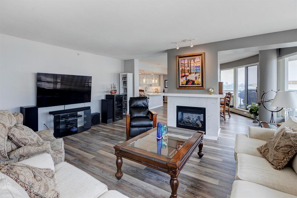 Fully Renovated Executive Suite with Stunning Views! This sensational condominium features 2 bedrooms + den/3 bedroom , 2.5 bathrooms with 2 parking stalls, 2 gas fireplaces, 3 balconies & almost 2,000 square feet of living space on one spacious level! Located in the popular West-end district of Calgary's downtown and steps away from the Bow River Pathway system. The modern fully renovated kitchen is open to the living & dining area - making the perfect space for entertaining. Luxury vinyl plank flooring flows throughout the entire condo with the exception of the tile floor in the bathrooms. The expansive living space has a flex area, full living room & a large private den (easily be converted to a third bedroom) - all with full height windows allowing for natural light to flow through the day. Master bedroom is at the East end of the condo & complete with a full 5 pc en-suite, custom closets & a private balcony that captures morning sun. The second bedroom is complete with it's own full en-suite & there is a powder room for guests. The building is completed with a concierge service that assists with package deliveries and dry cleaning - adding safety and convenience to your daily living. The McLeod also features 'concrete envelope construction', with concrete walls between adjoining suites for sound insulation and fire safety. Swimming pool, fully equipped exercise room, party room with kitchen and pool table. Easy access to the LRT, walking distance to Kensington, Eau Claire and Prince's Island. One block from the river path. Don't miss out on this great opportunity to own a luxurious executive condo in the very secure, very popular McLeod at Riverwest! (id:22211)