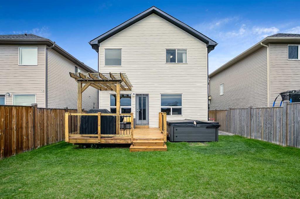 Welcome to this stunning 4+1 bedroom, 3.5 bathroom Jager Built home located in the highly sought-after and family-friendly community of Evergreen. Step inside and be captivated by the spacious entranceway, setting the stage for the grandeur that awaits. The bright open concept main floor boasts 9" ceilings, gleaming hardwood and tile floors, and abundant amounts of natural light flowing in from the west facing windows, all creating a comfortable and inviting atmosphere throughout. The heart of the home is the well-appointed kitchen, featuring ample counter space, granite countertops, stainless steel appliances, and a convenient corner pantry. Entertain with ease in the generously sized living room, which offers versatile options for furniture arrangements and showcases a charming corner gas fireplace. The main floor is completed with a powder room for added convenience and direct access to the insulated double attached garage. Ascending to the upper level, you'll discover three generously sized bedrooms, perfect for a growing family or hosting guests. The master bedroom is a true retreat, large enough to accommodate king sized furniture. Enjoy the serenity of the master ensuite, featuring granite countertops, a large corner soaker tub, and a separate glass door shower. The west facing backyard is the perfect place to spend those warm summer nights. Relax and entertain on the large wooden deck, complemented by a charming pergola, not to mention that all electrical is done and ready for you to hook up your own hot tub. The home's location is a selling point alone, situated for easy access to both McLeod Trail and the new Stoney Trail ring road, your commute and travel are made seamless. Additionally, you'll find convenience in the 12-minute drive to Mount Royal University, proximity to multiple schools, playgrounds, public transportation, and various shopping options. In summary, this home exudes luxury, style, and functionality. Don't miss the opportunity to call thi s home your own! (id:22211)