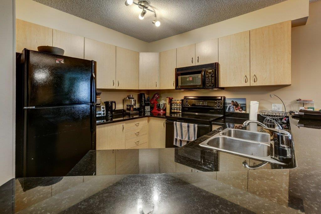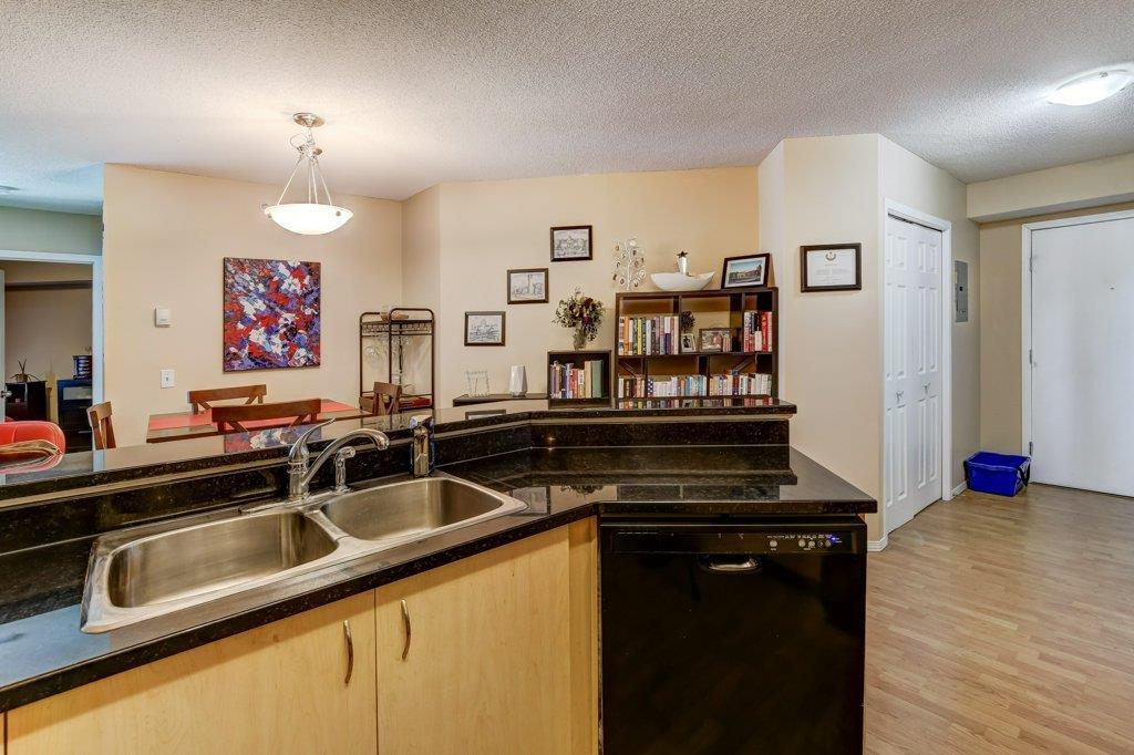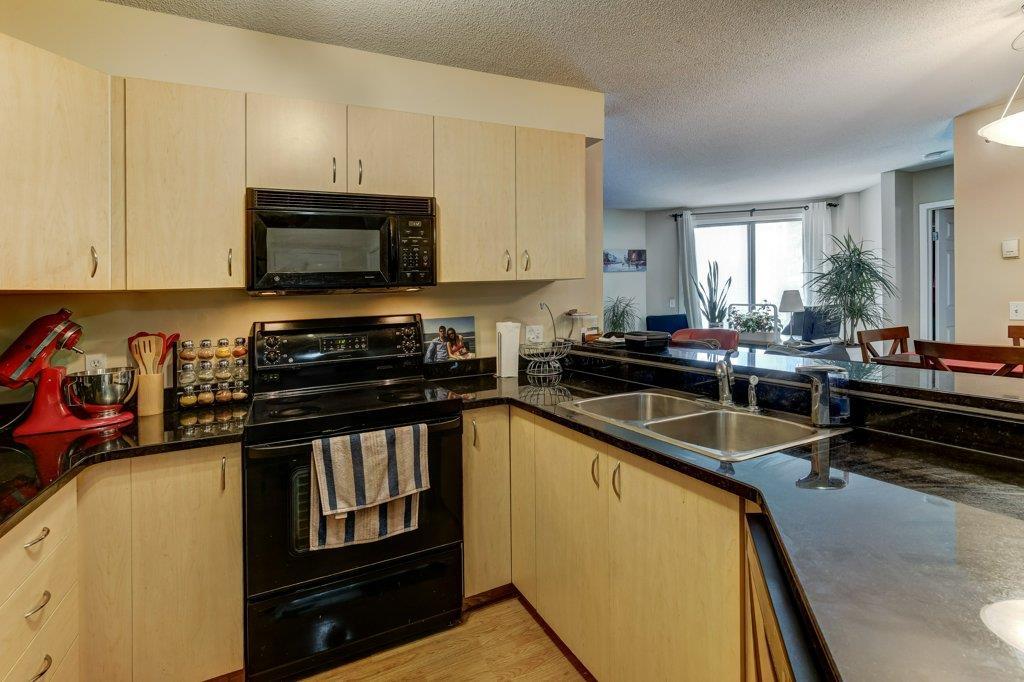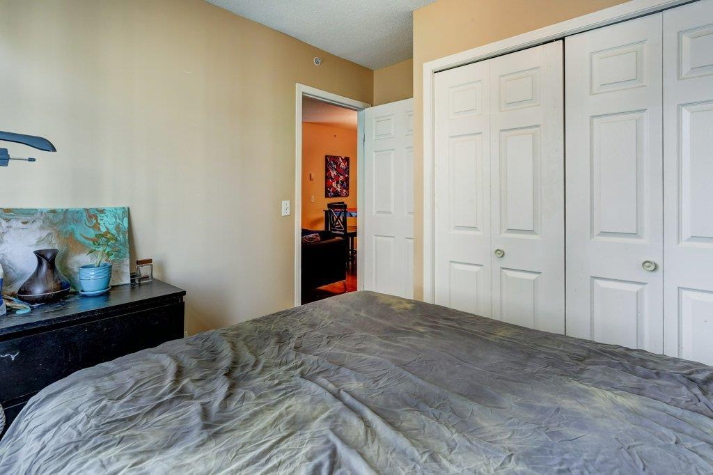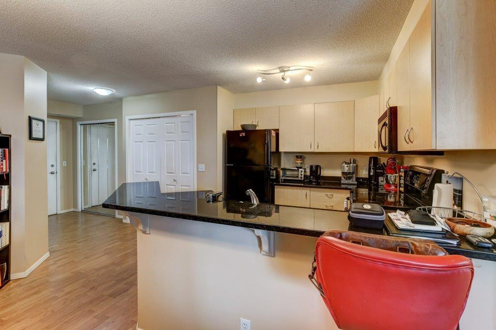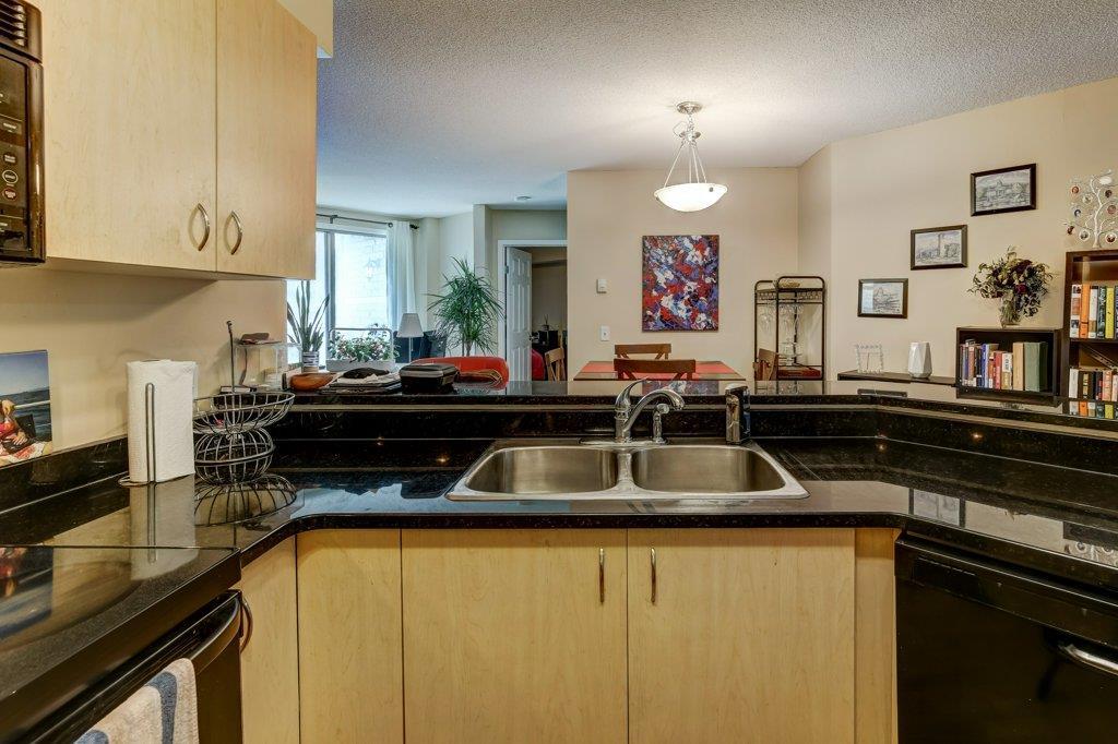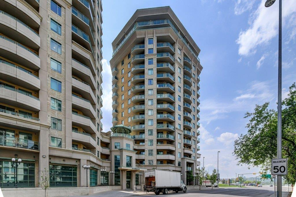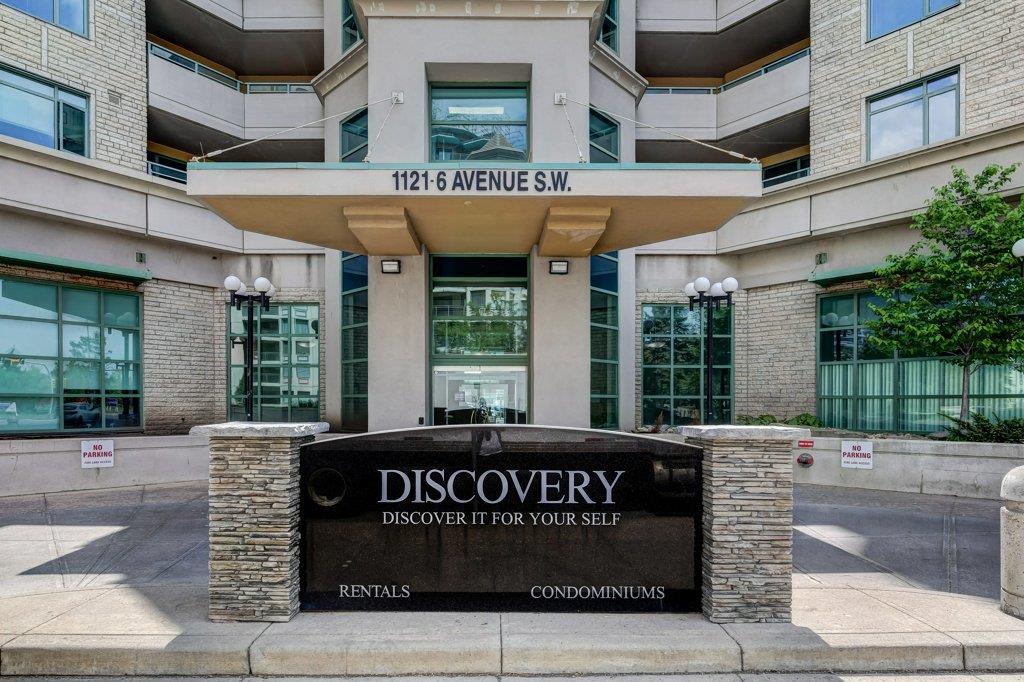 Amazing LOCATION! & VIEW !! Live the Inner City Lifestyle - one block from river pathway system. Bright, spacious 2 bed condo in Discovery Pointe. Granite kitchen/bathroom, bedroom carpeting & professionally painted walls, trim doors. Functional kitchen with plenty of cabinetry & breakfast bar opens to dining & living area -perfect for entertaining. Great floor plan with bedrooms on opposite sides. Master bedroom has walk-in closet - 4 pc bath located conveniently just outside bedroom. Generous balcony with gas line & city views. Laundry & ample in-suite storage. Secure complex boasts impressive foyer, concierge & security service, fitness area, billiards, party,& meeting rooms, roof-top patio with gazebo, bike storage & guest parking. Short walk to downtown, Co-op Market & restaurants, shops & pubs in trendy Kensington. Easy access to LRT free-zone. Concrete building. 1 titled underground secure parking stall. (id:22211)