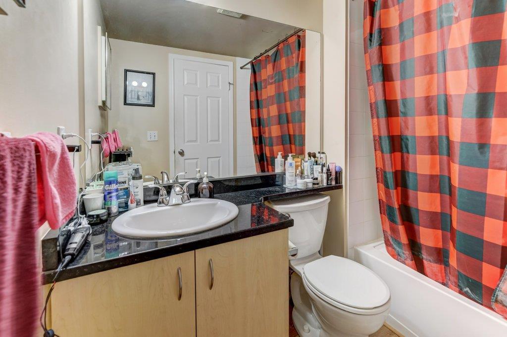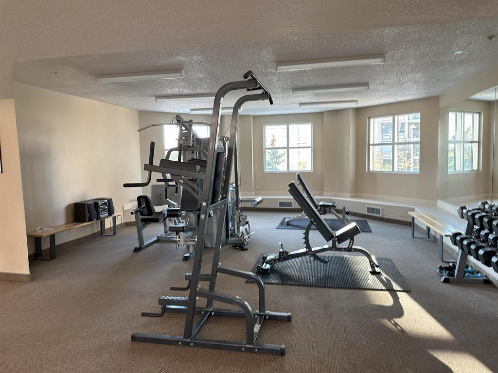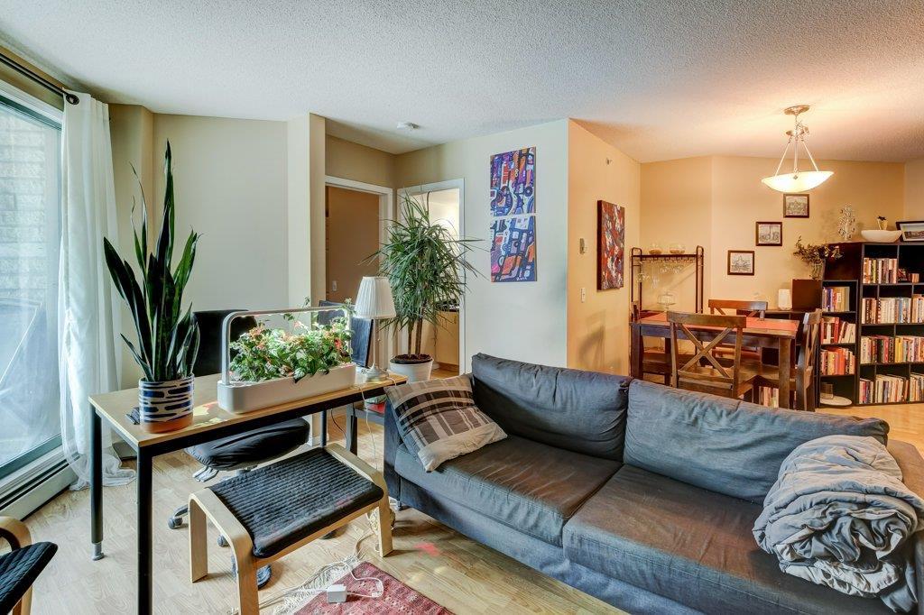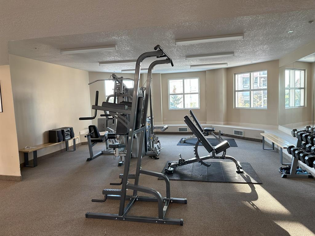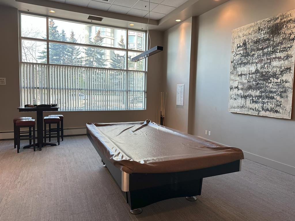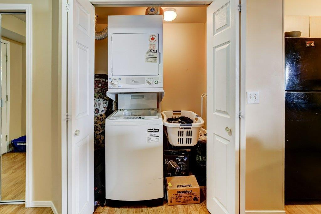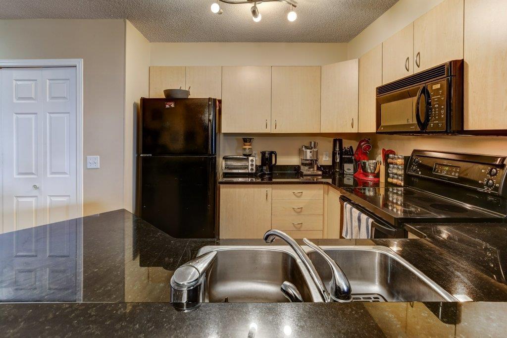 Amazing LOCATION! & VIEW !! Live the Inner City Lifestyle - one block from river pathway system. Bright, spacious 2 bed condo in Discovery Pointe. Granite kitchen/bathroom, bedroom carpeting & professionally painted walls, trim doors. Functional kitchen with plenty of cabinetry & breakfast bar opens to dining & living area -perfect for entertaining. Great floor plan with bedrooms on opposite sides. Master bedroom has walk-in closet - 4 pc bath located conveniently just outside bedroom. Generous balcony with gas line & city views. Laundry & ample in-suite storage. Secure complex boasts impressive foyer, concierge & security service, fitness area, billiards, party,& meeting rooms, roof-top patio with gazebo, bike storage & guest parking. Short walk to downtown, Co-op Market & restaurants, shops & pubs in trendy Kensington. Easy access to LRT free-zone. Concrete building. 1 titled underground secure parking stall. (id:22211)