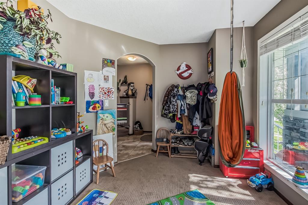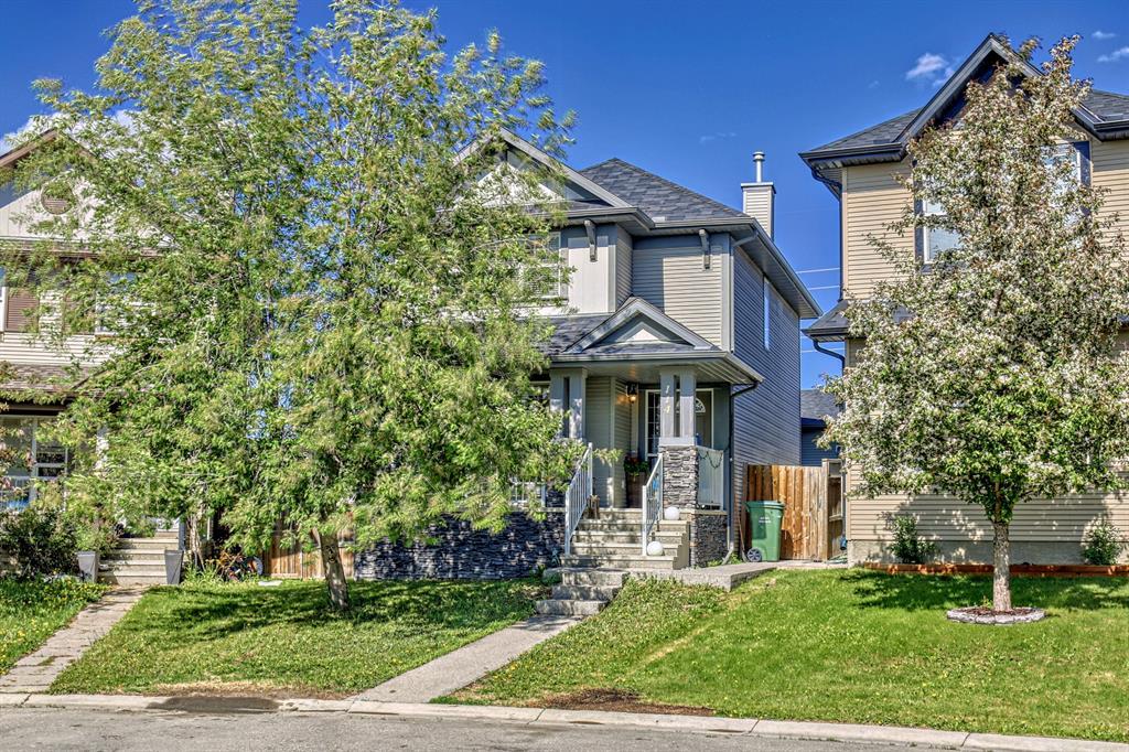 Welcome to 114 Cranberry Pl SE! Wonderful family home on a large pie lot. Upon entering this well maintained home you are greeted with a bright and sunny flex space, great for a home office or kids play area. Your open concept kitchen and living space features gleaming hardwood floors and a gas fireplace framed with windows. Out back you have an OVERSIZED 26 x 22 garage and a huge yard. Retreat upstairs to your primary bedroom with full ensuite, 2 other good sized bedrooms with a jack and jill bathroom complete this level. The basement is fully developed by the builder and boasts a large rec room, bedroom, 3 piece bathroom and laundry. Central air conditioning, a spacious covered front veranda, over $105,000 in upgrades when built with Morrison Homes, walk in pantry, stainless steel appliances and a wrought iron railing are just a few more of the many features of this home. EXPOSED AGGREGATE CONCRETE ON WIDE STEPS & PATHWAYS FRONT & SIDE OF HOME. All located in the wonderful community of Cranston with access to Century Hall offering outdoor rink, splash park, playground, mobile skate park, tennis and basketball courts and many more other features. Call today for your private viewing! (id:22211)