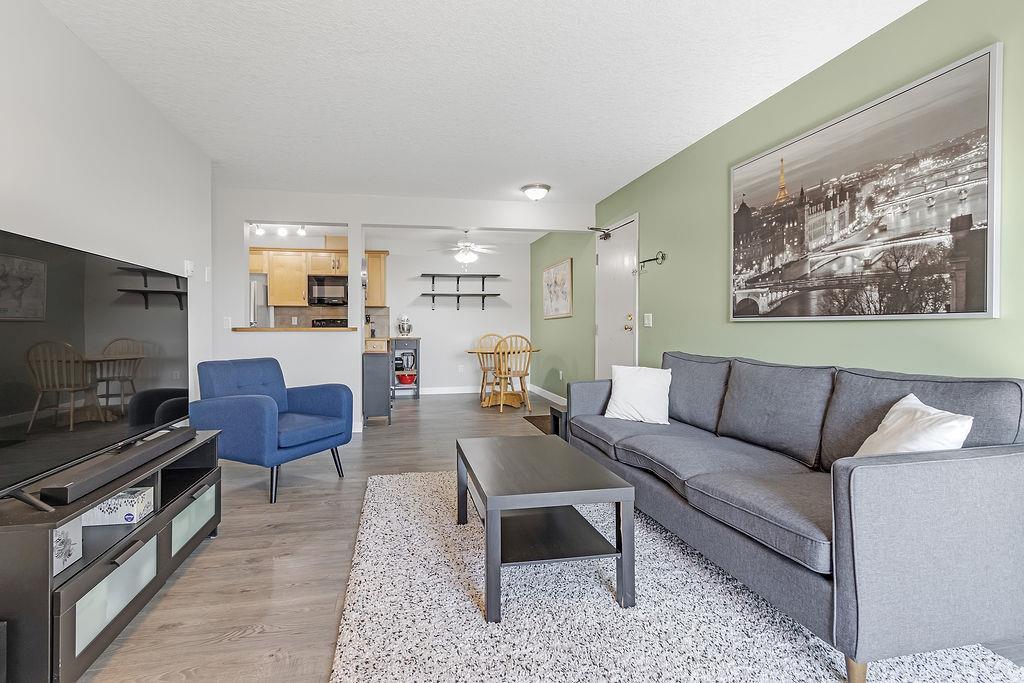Welcome to this fabulous top-floor unit in a prime location! With a spacious balcony that overlooks the serene courtyard, you can enjoy peaceful mornings and relaxing evenings. This condo offers convenience and comfort with fantastic features and recent updates that make it truly special.Inside, you'll find the convenience of in-suite laundry, allowing you to tackle your laundry without leaving the comfort of your home. Say goodbye to searching for parking with your assigned underground parking spot, ensuring your vehicle is safe and secure. Additionally, an assigned storage space provides ample room for all your belongings, keeping your living space clutter-free.The large pantry/laundry/storage area off the kitchen offers plenty of space to store your essentials. The open-concept living/dining room is perfect for entertaining friends and family, and the new laminate flooring with soundproof underlay adds a touch of elegance to the space. Freshly painted in 2022, the main living area and bedrooms exude a modern and welcoming ambiance, complemented by new baseboards that really complete the updated look.When it comes to location, this condo has it all. Just a short walk away, you'll discover the natural beauty of Fish Creek Provincial Park, offering endless opportunities for outdoor activities and relaxation. The nearby Canyon Meadows C-Train Station ensures easy commuting and access to the city's vibrant downtown core. Sports enthusiasts will appreciate the close proximity to the Canyon Meadows Soccer Fields, providing a perfect spot for games and practices.Also within walking distance, you'll find Babbling Brook Park, a charming green space ideal for leisurely strolls and picnics. For those seeking fitness and wellness, the Canyon Meadows Aquatic & Fitness Centre is easily accessible. Nearby, golf lovers can find all levels of golf from the popular City of Calgary Maple Ridge course to the prestigious Canyon Meadows Golf and Country Club.Families will apprecia te the nearby Canyon Meadows School, Robert Warren Jr. High, and Dr. E.P. Scarlett High School; providing excellent educational opportunities for children of all ages. This condo-complex’s on-site amenities, including a fitness centre, sauna, party room, and rec room, offer a wide range of options to stay active and socialize without driving anywhere.If shopping is on your agenda, you're in luck! Southcentre Mall and the shops and services of Macleod Trail are just a short distance away, offering a variety of retail options and dining experiences. And for book lovers, the Fish Creek Library is conveniently located nearby.Don't miss out on this incredible opportunity to own a top-floor unit with fantastic features, convenient amenities, and an unbeatable location. Schedule a viewing today and make this your new home sweet home! (id:22211)