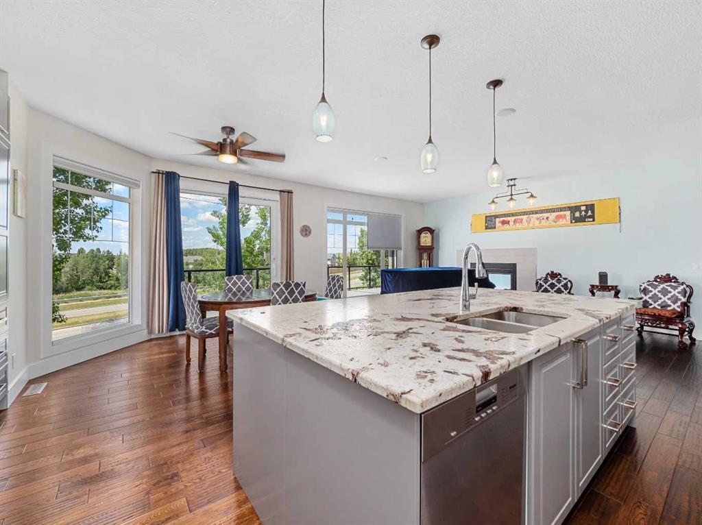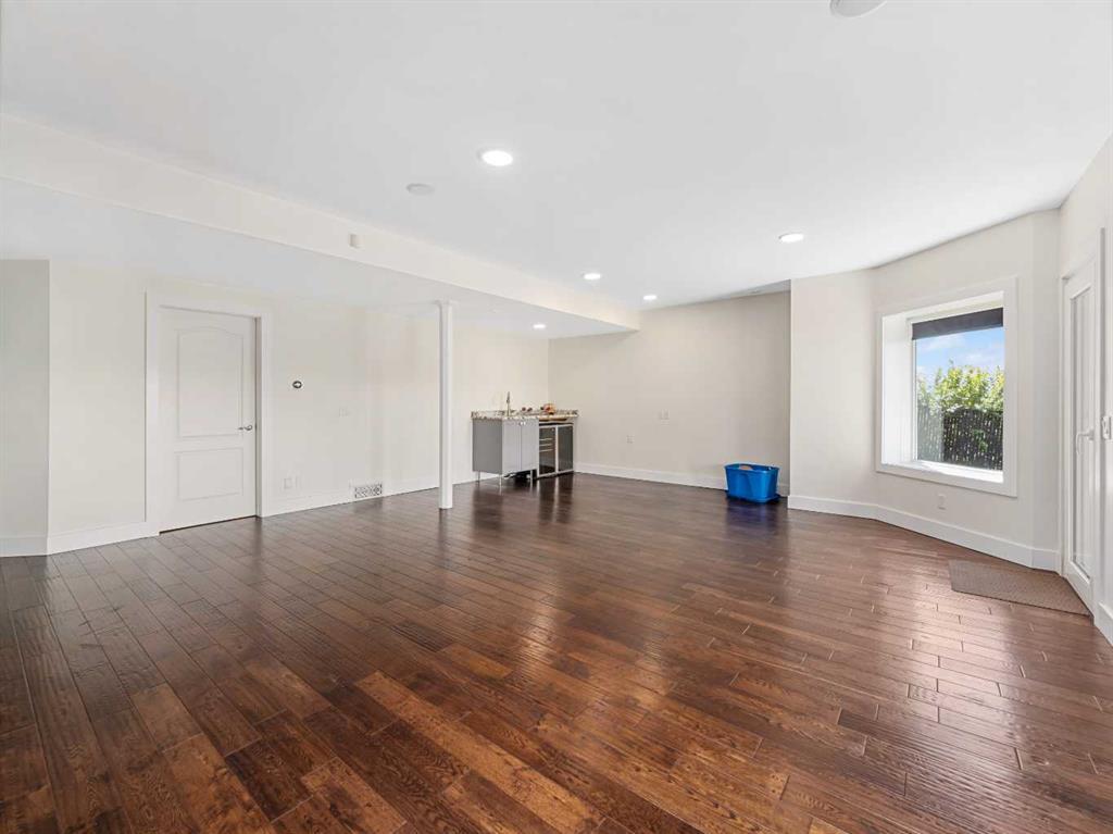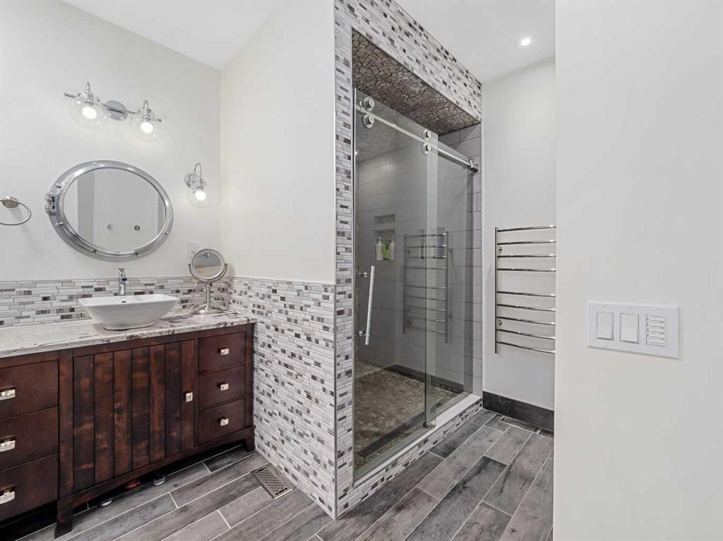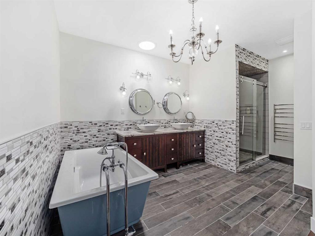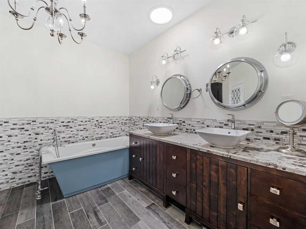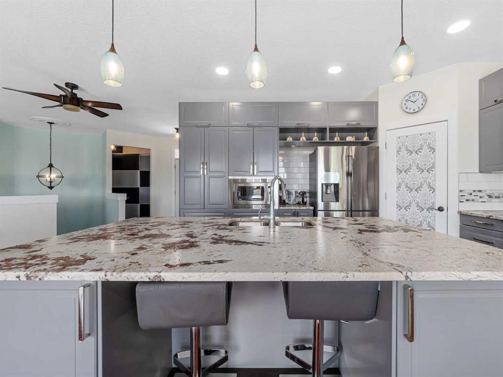 Look No further! Here's your next high-end and cozy dream home you've been searching for! Executive WALKOUT Bungalow with FULLY Finished Basement in the sought-after NW community Royal Oak! The Completely RENOVATED house has WEST Sunny Backyard. The huge pie LOT is professionally landscaped (LOT size: 9030sqft). The remarkable home also boasts Spectacular mountain VIEWS, large open concept spaces and tons of custom finishes and In-floor heated THREE-CAR GARAGE. Large den/office, formal dining room or used as bedroom at the front of the house. Spacious custom kitchen with handpicked, leathered granite countertops, built-in high-end stainless-steel appliances (Miele, Samsung, Kitchenaid), Double-sided fireplace, and many large windows letting in both an abundance of light and the amazing views! The main floor master suite includes a HUGE spa-like ensuite bathroom with a giant, custom shower, a standalone soaker tub, double vanities with granite countertops, a private water closet, HUGE walk-in closet, and additional insulation in the floors and walls (spray foam and Roxul) keeping it both warm and quiet in your private retreat. The rear mud room is just off the garage and offers a private ½ bath, large closets, and custom feature wall. The walkout basement has a large rec space with wet bar area, TWO large bedrooms with walk-in closets, another FULL bath, and a designated laundry area. Another cool feature is a large, fully tiled storage room under the stairs, equipped with its own motion-censored ventilation and lighting system. So many upgrades include Air Conditioning, Central Vacuum system, In-Floor glycol heating throughout basement and garage, custom motored Hunter Douglas blinds, high-end light fixtures, keyless entry and electric doorbell, heated towel rack, irrigation system, alarm system wired, European tilt and turn doors (downstairs exterior x 2, master bedroom, and main room deck doors), newer windows in some areas, and an EXPENSIVE, maintenance free Trex composite second story deck. An energy-efficient Sync water heater, furnace, and heat exchanger were added from Gradient Thermal. The home is truly unique and has been lovingly designed and well maintained. Short walking distance to all the schools, playgrounds, community center and other amenities. Drive 3 minutes or Walk 15 minutes (1.9Km) to LRT station and Shane Homes YMCA at Rocky Ridge. 5 Minutes drive to Royal Oak shopping centre, Walmart etc. ACT NOW before it's gone! (id:22211)