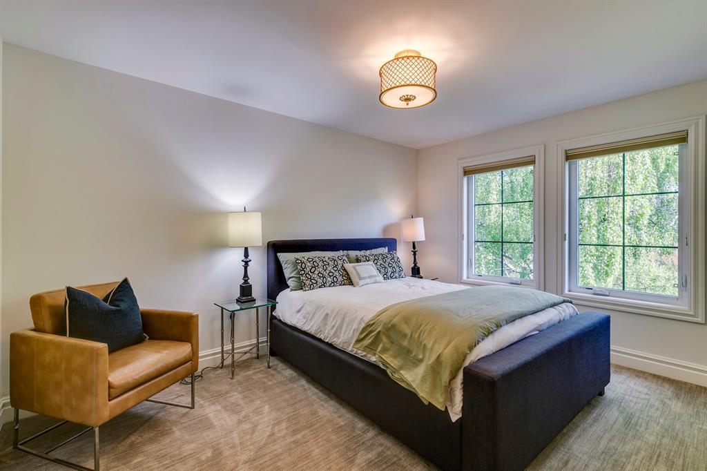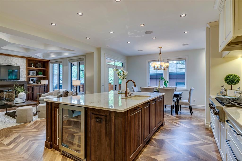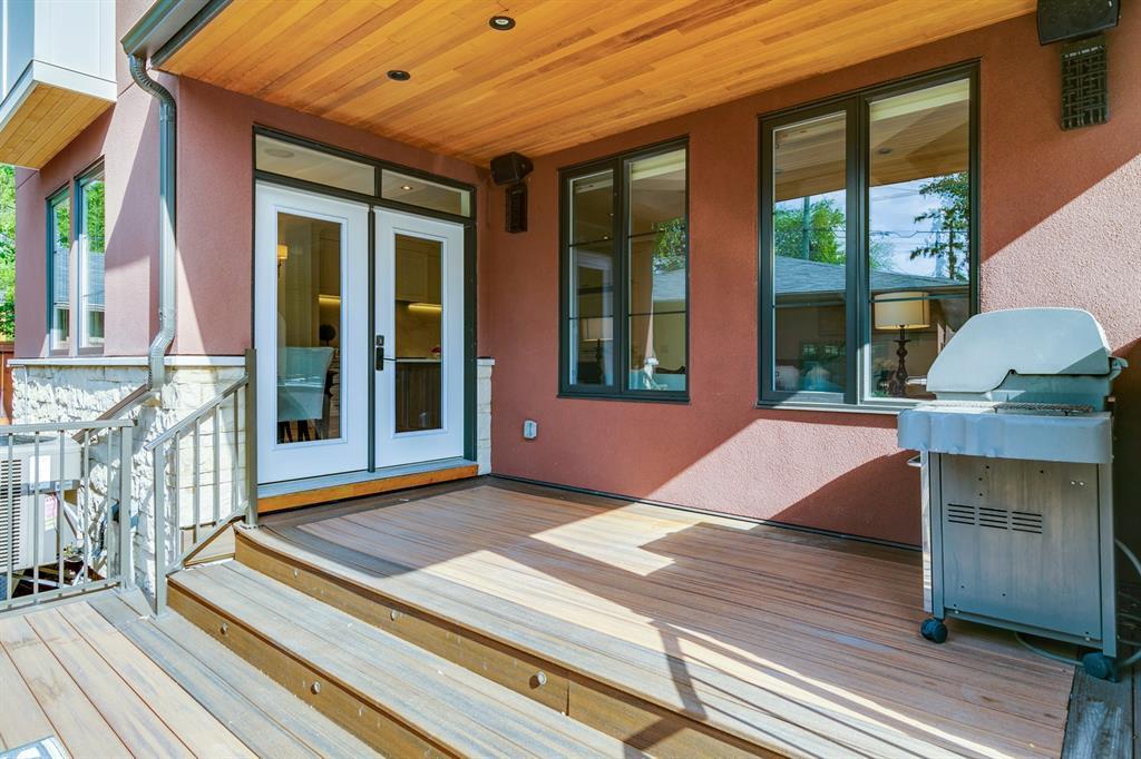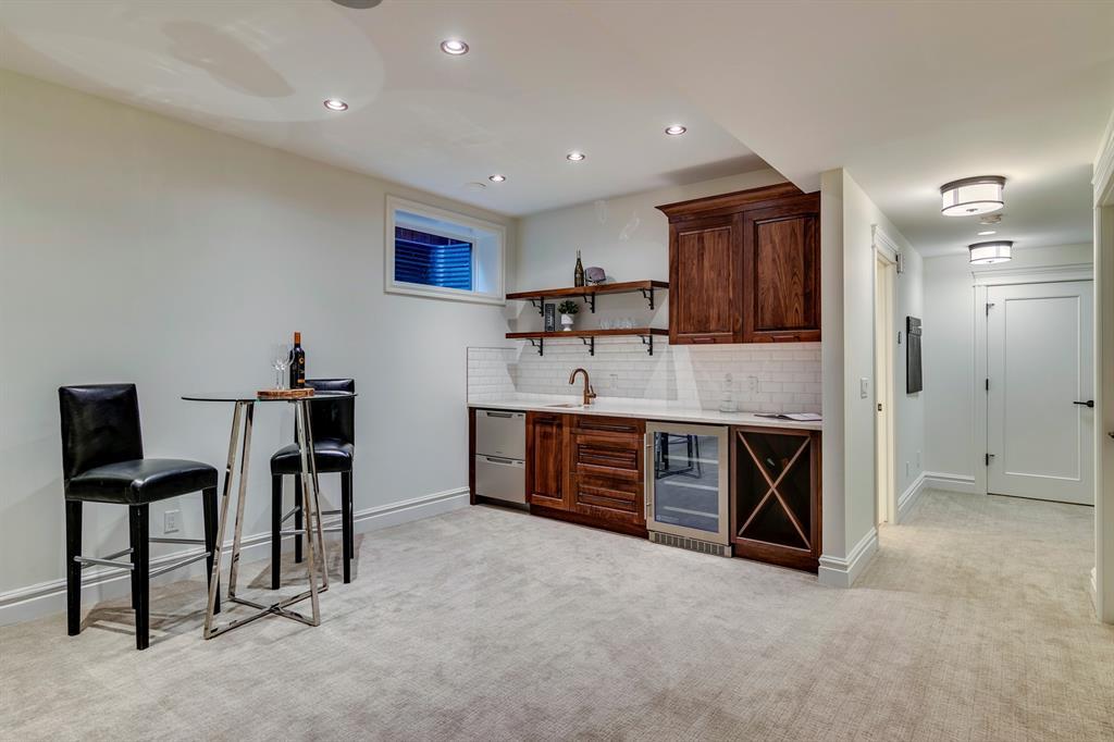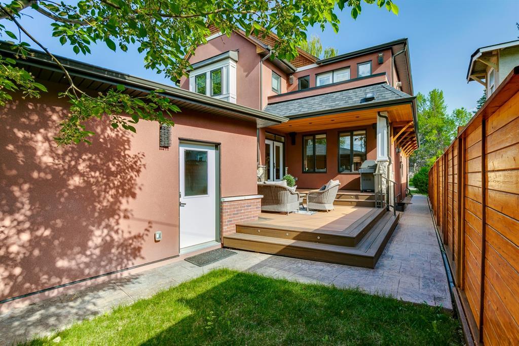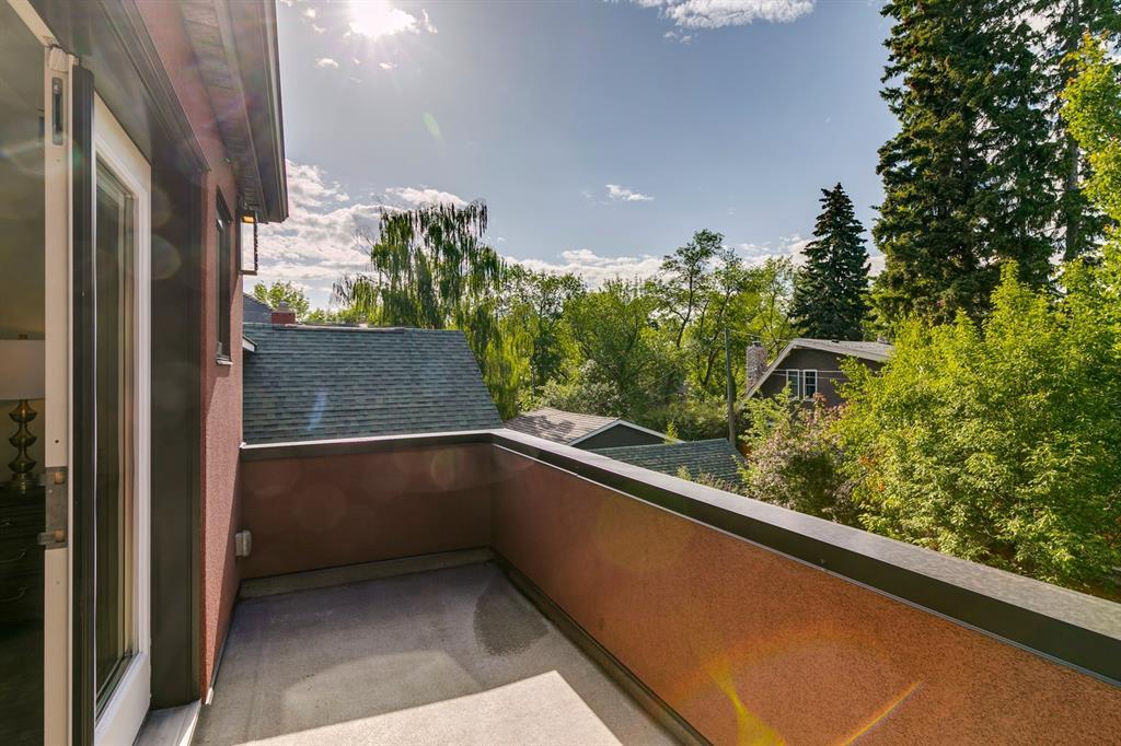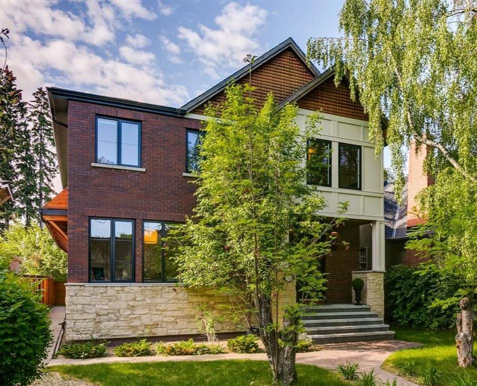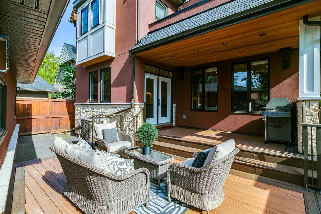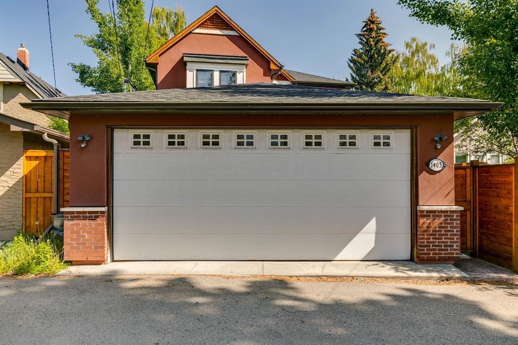 INCREDIBLE VALUE! Welcome to this beautiful custom-built home in historic Upper Mount Royal developed with a keen eye for quality finishings, aesthetics, and functionality to create a modern and luxurious living space. Key elements include a classic brick, stone and stucco Arts and Crafts exterior, architectural ceiling details, stunning walnut hardwood flooring and cabinetry, Sonos sound system throughout, air conditioning, built-in vacuum, designer light fixtures, convenient mudroom with lockers, a heated double detached garage and so much more! This home is perched on the well-known and lovely tree-lined Joliet Avenue. Built in 2014, a solid wood door in a covered entryway welcomes you to a spacious foyer. Double doors lead to an impressive home office which is also set up to be a main floor bedroom with a full bathroom across the way. Intricate chevron Walnut flooring leads the way to the cozy living room with an oversized gas fireplace flanked with built-in walnut shelving, large windows and custom coiffured ceilings. The elegant kitchen features classic light cabinets with a grand center island built in Walnut and topped with gorgeous stone counters. Panelled appliances and plenty of cabinets complete the main kitchen not to mention a chef’s delight – the separate butlers pantry with an additional gas range, pantry storage and freezer. The south facing dining space can accommodate a table for 10 – perfect for entertaining and for large gatherings. The impressive walnut staircase leads the way to the upper level boasting 3 bedrooms all with walk-in closets and a notable walk-in closet on the way up to the 2nd floor. Your primary bedroom is the epitome of relaxation providing a peaceful and tranquil space including a private balcony, a gorgeous 5 pc ensuite, a custom-built walk-in closet with the finishing touch of a skylight, coiffured ceilings and millwork details. The bright & functional laundry room has a sink, storage and plenty of counter space. The lower level features a, massive recreation room with space to close in a bedroom and/or a private media room, a built-in wet bar with double drawer dishwasher and second beverage fridge, a flex room that can be used as a home gym/hobby room/home office/play room or more, an finally a large full bathroom. Enjoy the fenced, low maintenance backyard designed to be a private retreat for entertaining with a partially covered two-tiered deck, gas hook up, step lighting, stamped concrete pathway, mature trees and a 2-car detached garage with a separate furnace. This centrally located home is just minutes to the Glencoe Club, downtown, tennis courts, outdoor pool & rink, walking/bike paths, playgrounds, some of Calgary’s best restaurants and shopping, great schools and only a short drive to your favorite choice of Golf Course! Welcome Home to 1405 Joliet Avenue SW! (id:22211)