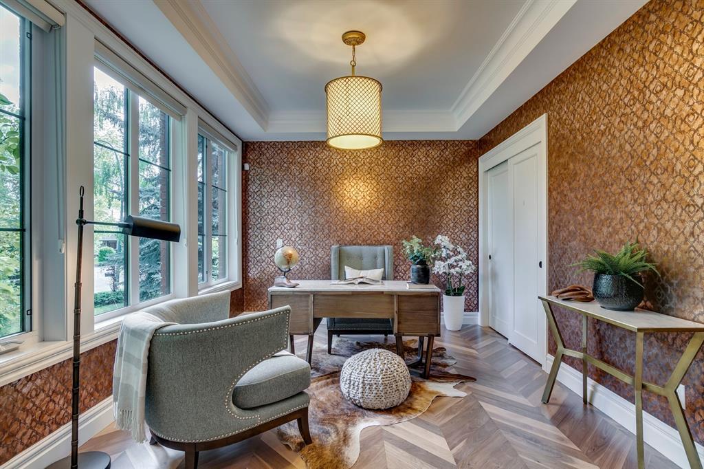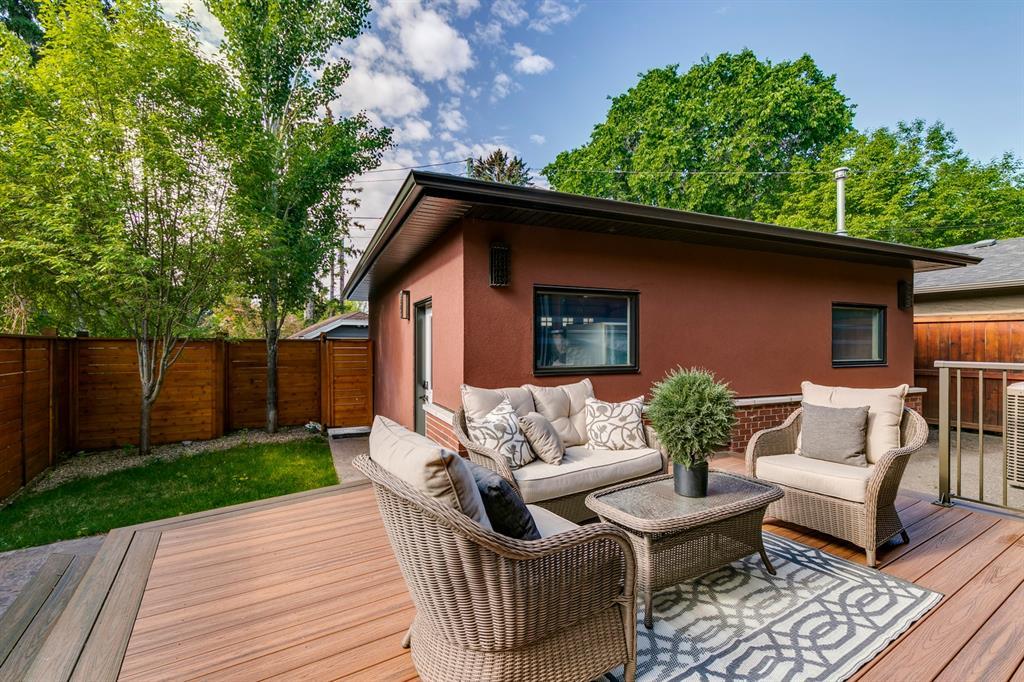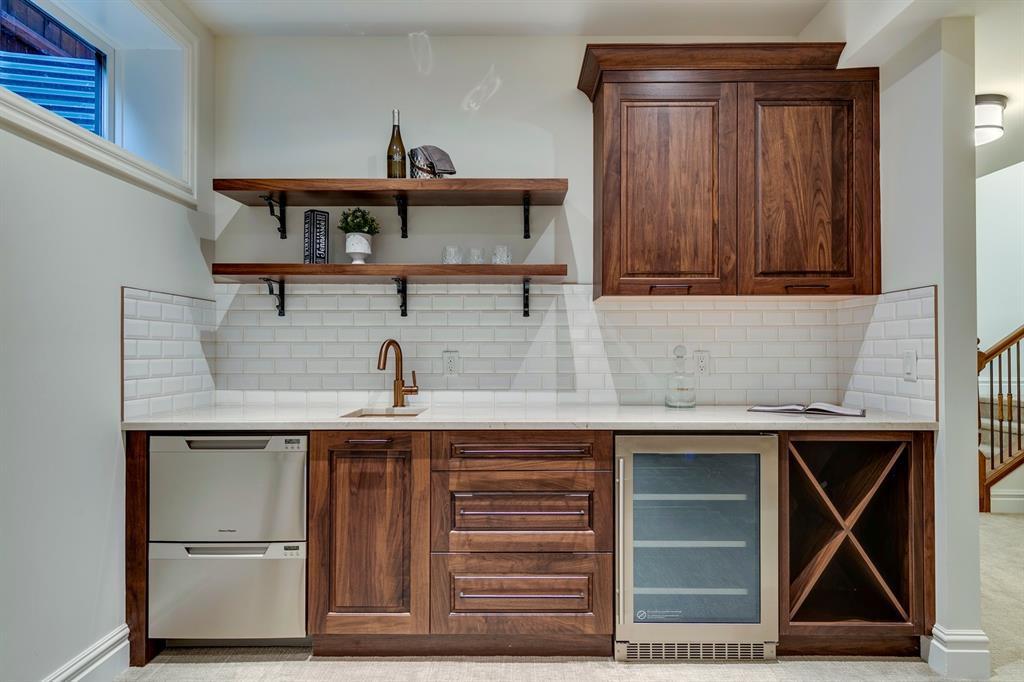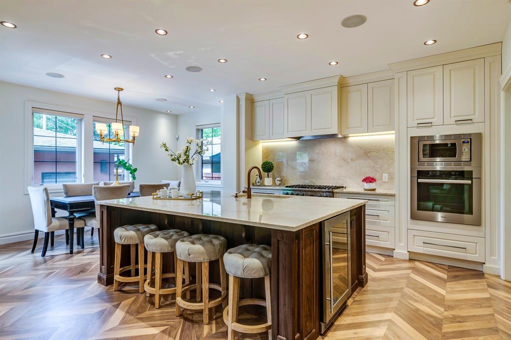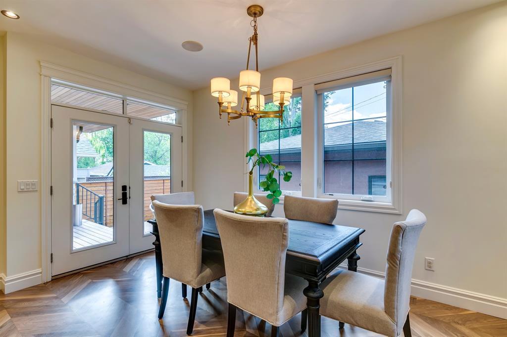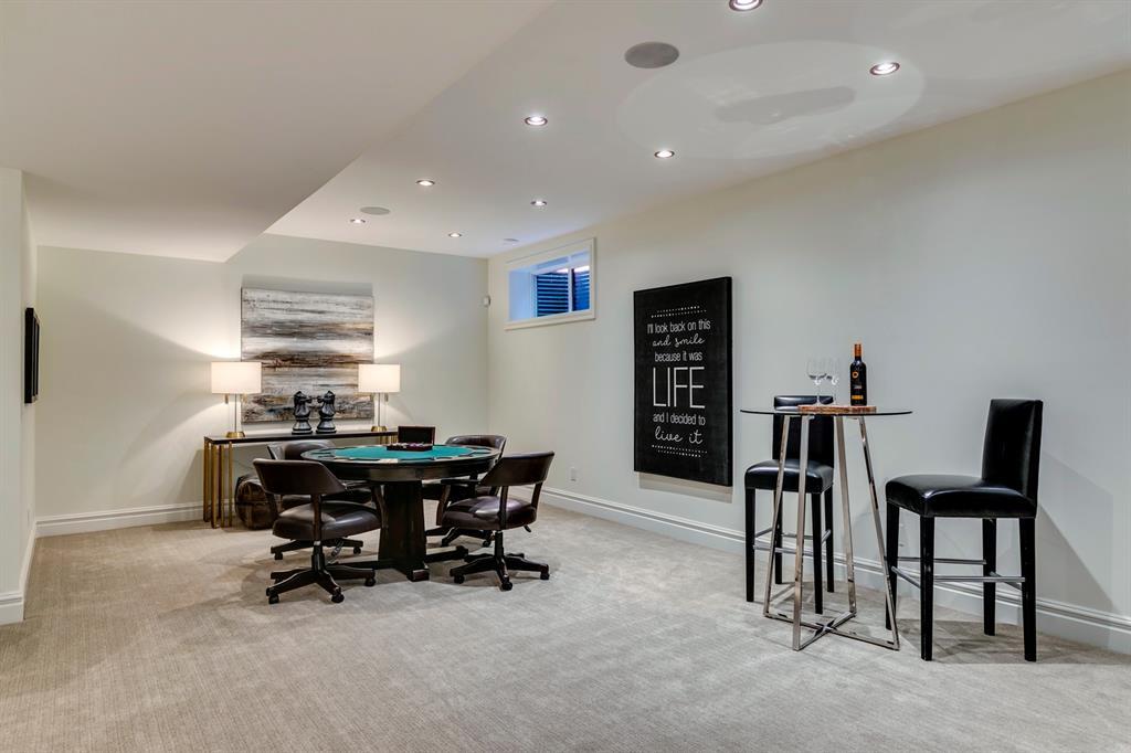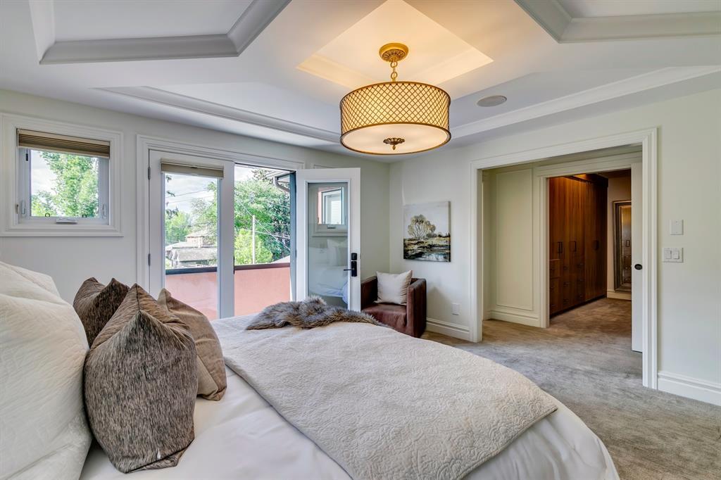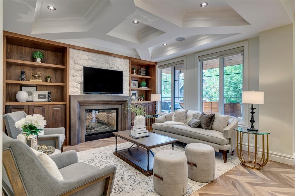 INCREDIBLE VALUE! Welcome to this beautiful custom-built home in historic Upper Mount Royal developed with a keen eye for quality finishings, aesthetics, and functionality to create a modern and luxurious living space. Key elements include a classic brick, stone and stucco Arts and Crafts exterior, architectural ceiling details, stunning walnut hardwood flooring and cabinetry, Sonos sound system throughout, air conditioning, built-in vacuum, designer light fixtures, convenient mudroom with lockers, a heated double detached garage and so much more! This home is perched on the well-known and lovely tree-lined Joliet Avenue. Built in 2014, a solid wood door in a covered entryway welcomes you to a spacious foyer. Double doors lead to an impressive home office which is also set up to be a main floor bedroom with a full bathroom across the way. Intricate chevron Walnut flooring leads the way to the cozy living room with an oversized gas fireplace flanked with built-in walnut shelving, large windows and custom coiffured ceilings. The elegant kitchen features classic light cabinets with a grand center island built in Walnut and topped with gorgeous stone counters. Panelled appliances and plenty of cabinets complete the main kitchen not to mention a chef’s delight – the separate butlers pantry with an additional gas range, pantry storage and freezer. The south facing dining space can accommodate a table for 10 – perfect for entertaining and for large gatherings. The impressive walnut staircase leads the way to the upper level boasting 3 bedrooms all with walk-in closets and a notable walk-in closet on the way up to the 2nd floor. Your primary bedroom is the epitome of relaxation providing a peaceful and tranquil space including a private balcony, a gorgeous 5 pc ensuite, a custom-built walk-in closet with the finishing touch of a skylight, coiffured ceilings and millwork details. The bright & functional laundry room has a sink, storage and plenty of counter space. The lower level features a, massive recreation room with space to close in a bedroom and/or a private media room, a built-in wet bar with double drawer dishwasher and second beverage fridge, a flex room that can be used as a home gym/hobby room/home office/play room or more, an finally a large full bathroom. Enjoy the fenced, low maintenance backyard designed to be a private retreat for entertaining with a partially covered two-tiered deck, gas hook up, step lighting, stamped concrete pathway, mature trees and a 2-car detached garage with a separate furnace. This centrally located home is just minutes to the Glencoe Club, downtown, tennis courts, outdoor pool & rink, walking/bike paths, playgrounds, some of Calgary’s best restaurants and shopping, great schools and only a short drive to your favorite choice of Golf Course! Welcome Home to 1405 Joliet Avenue SW! (id:22211)